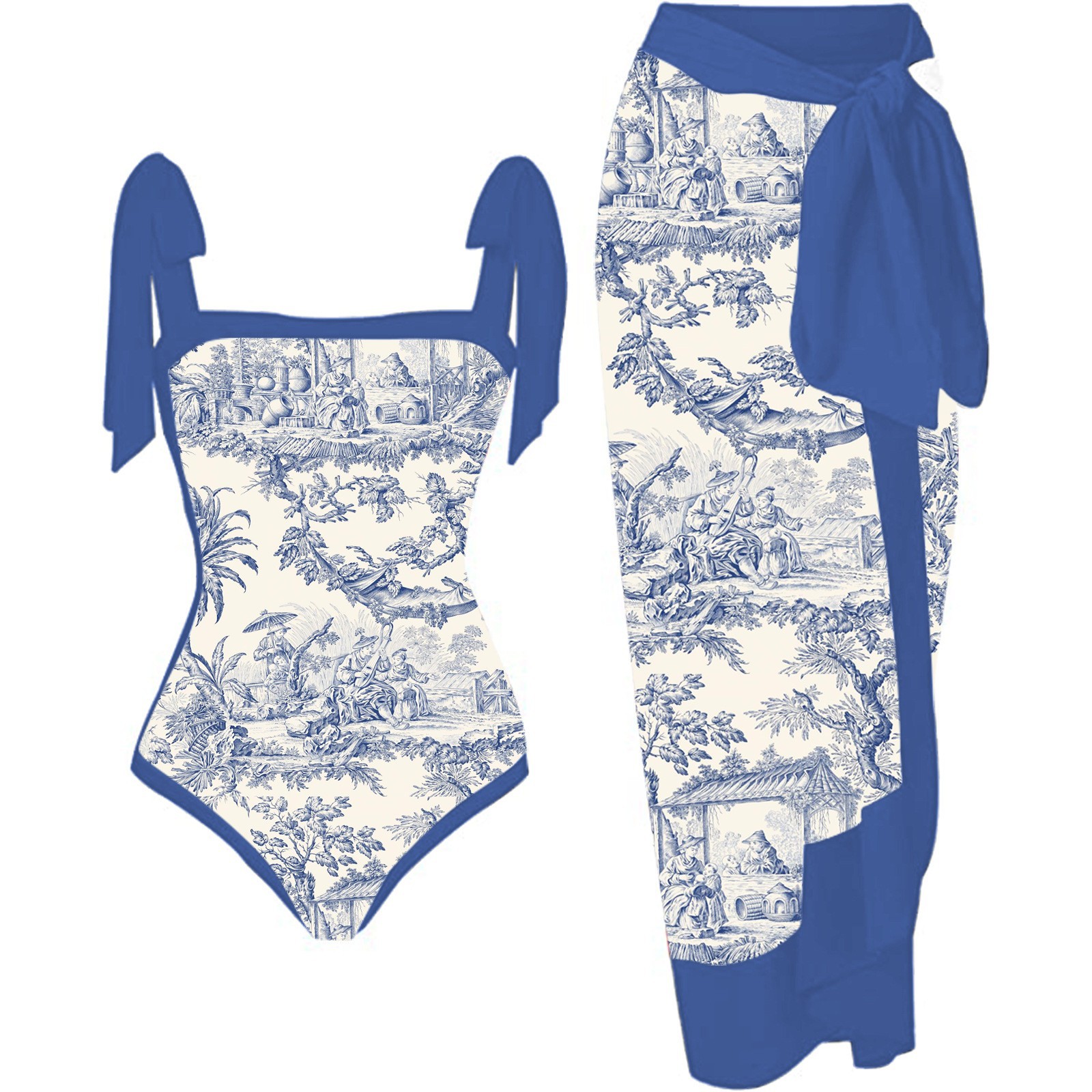2025欧美连体保守遮肚显瘦度假沙滩温泉游泳衣法式复古连体比基尼