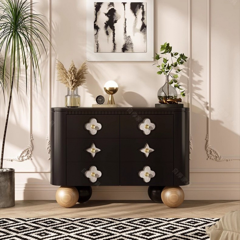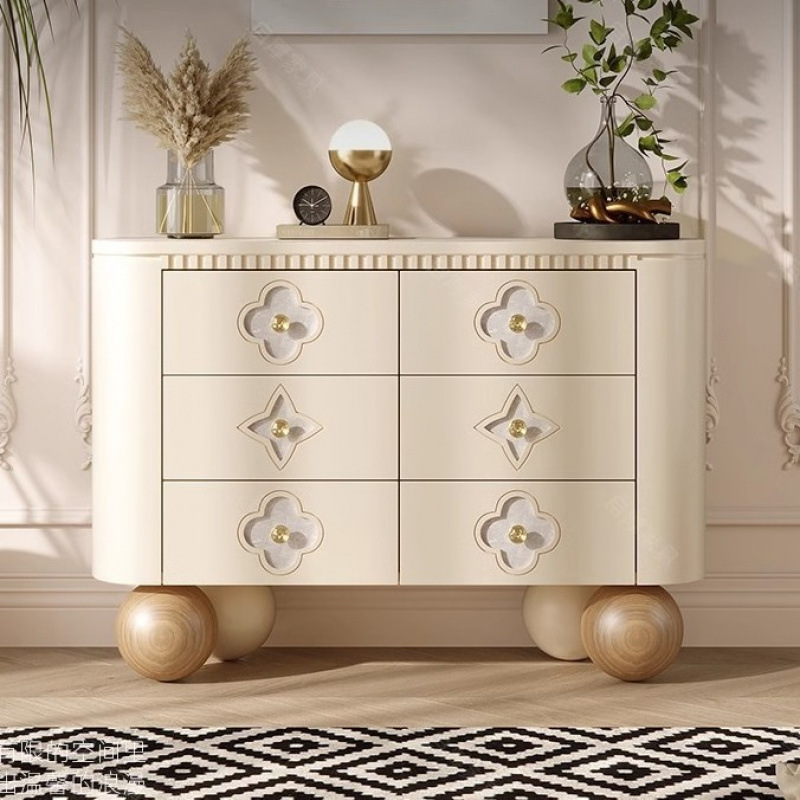 프렌치 크림 스타일 원목 서랍장 소파 사이드 수납 장식장 수납 서랍장 천연 쉘 디자인 현관 캐비닛