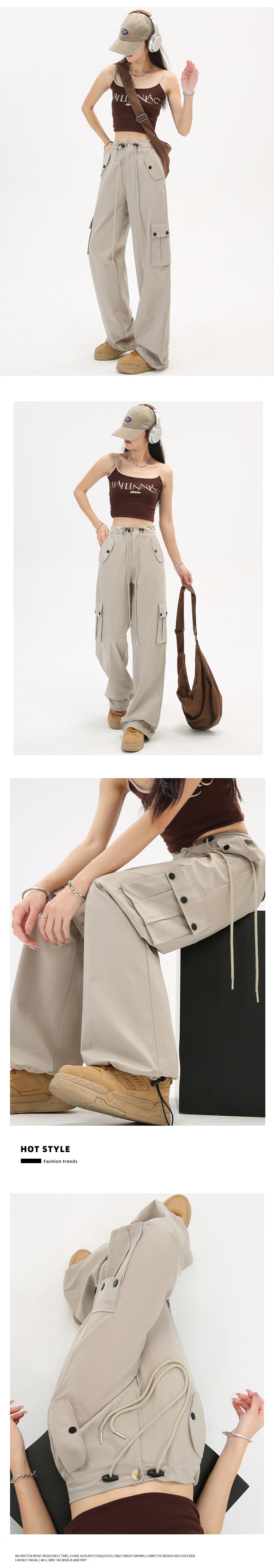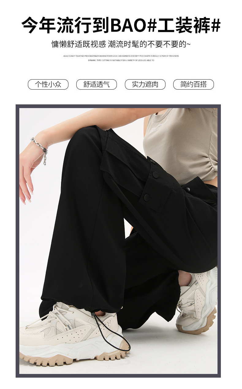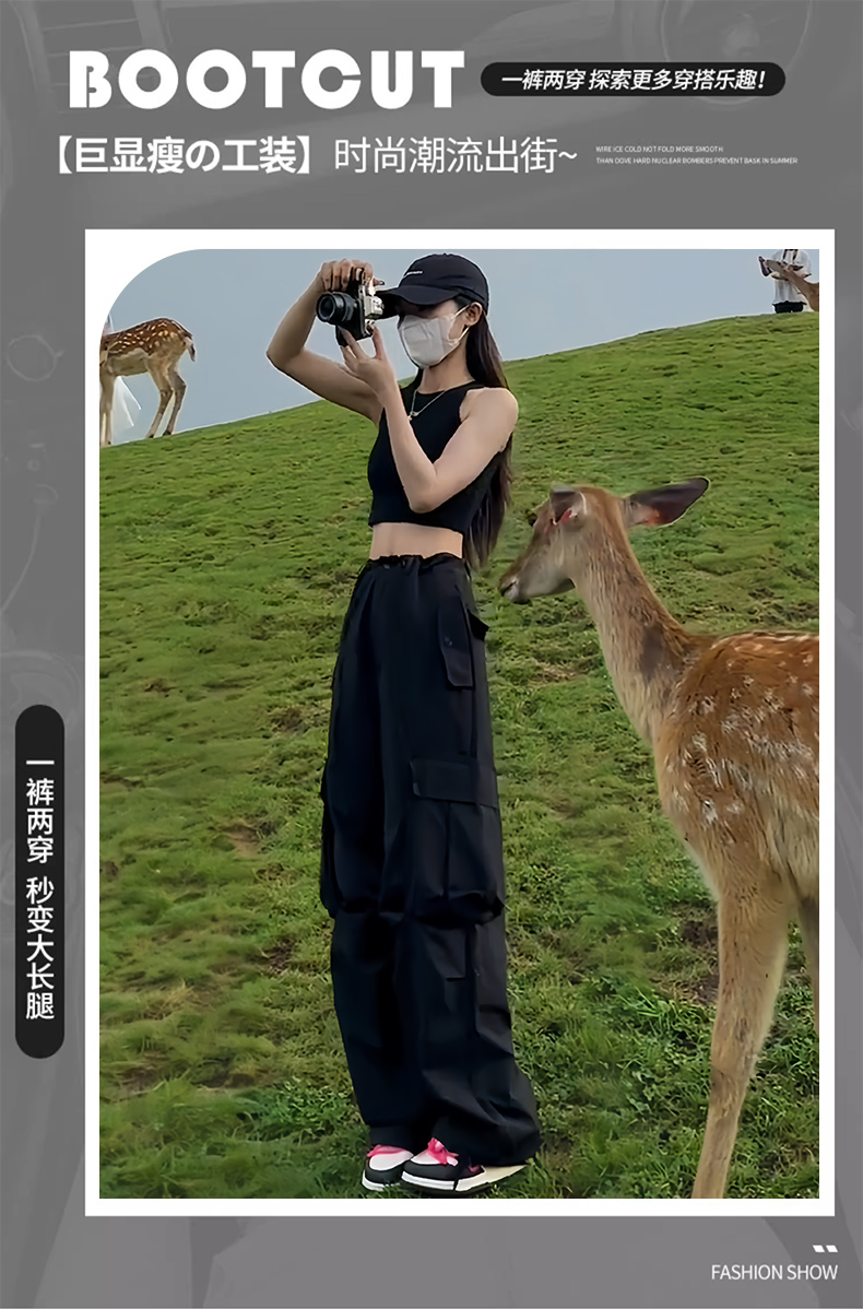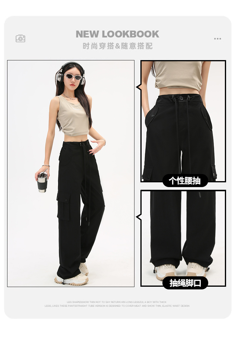 미국식 등산 작업복 여성 봄과 가을 여름 높은 허리 느슨한 넓은 다리 야외 빠른 건조 2025 스포츠 바지