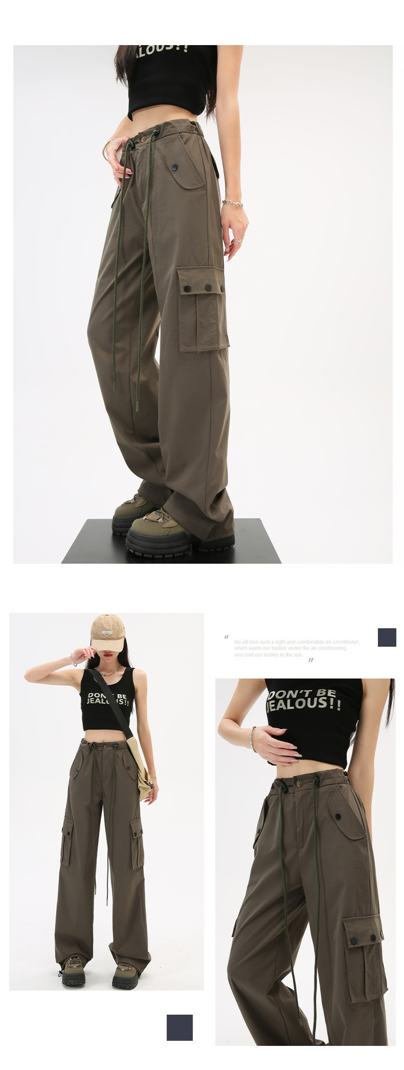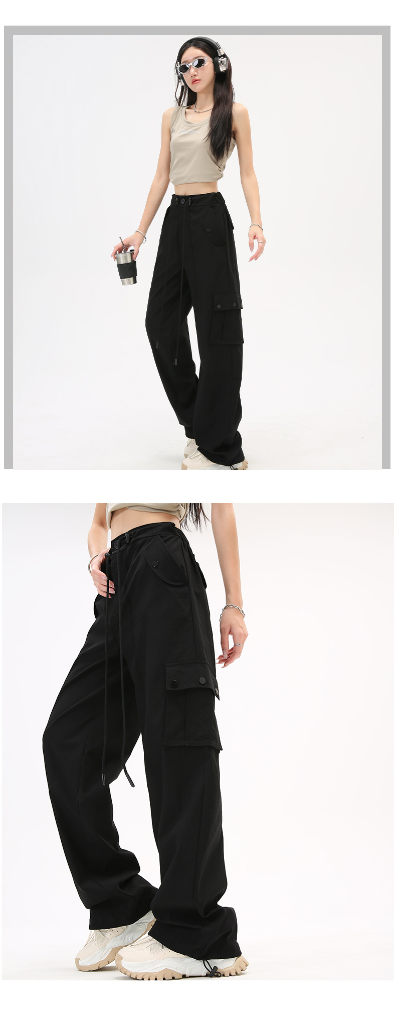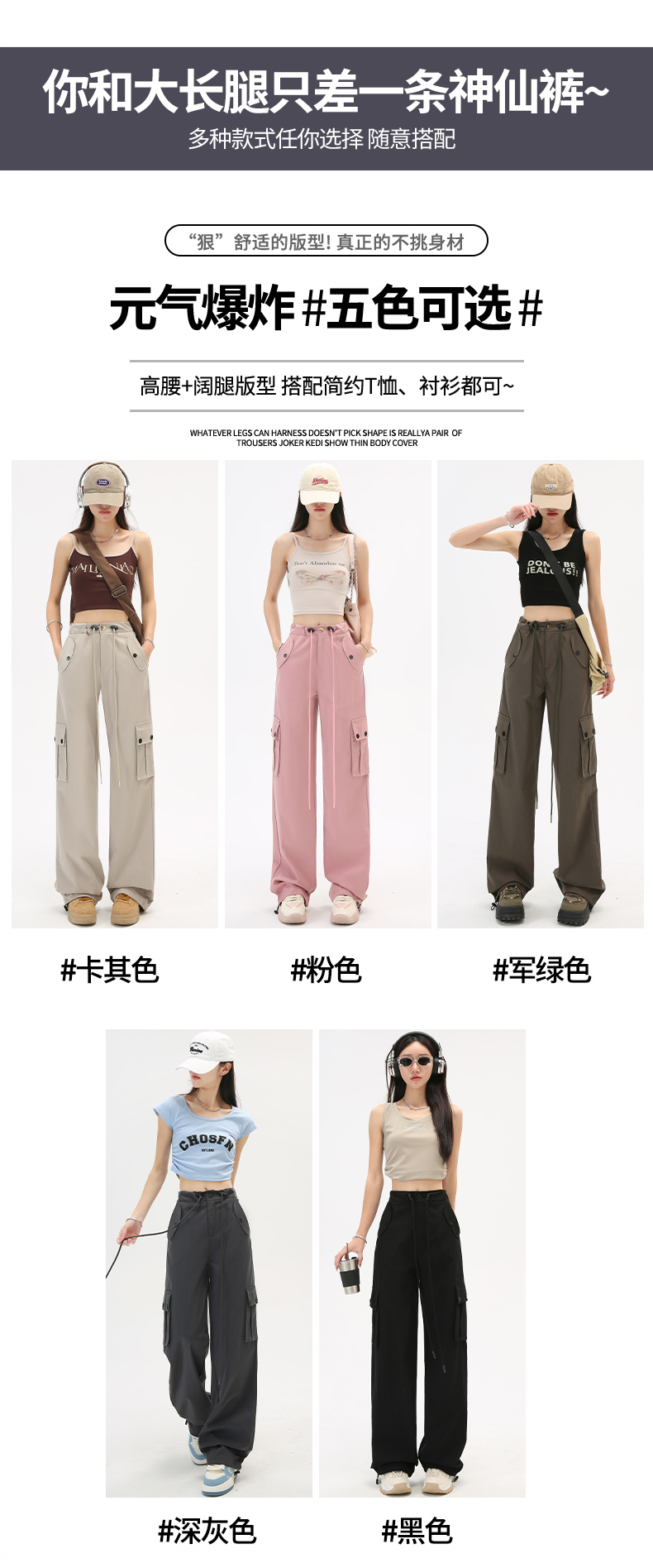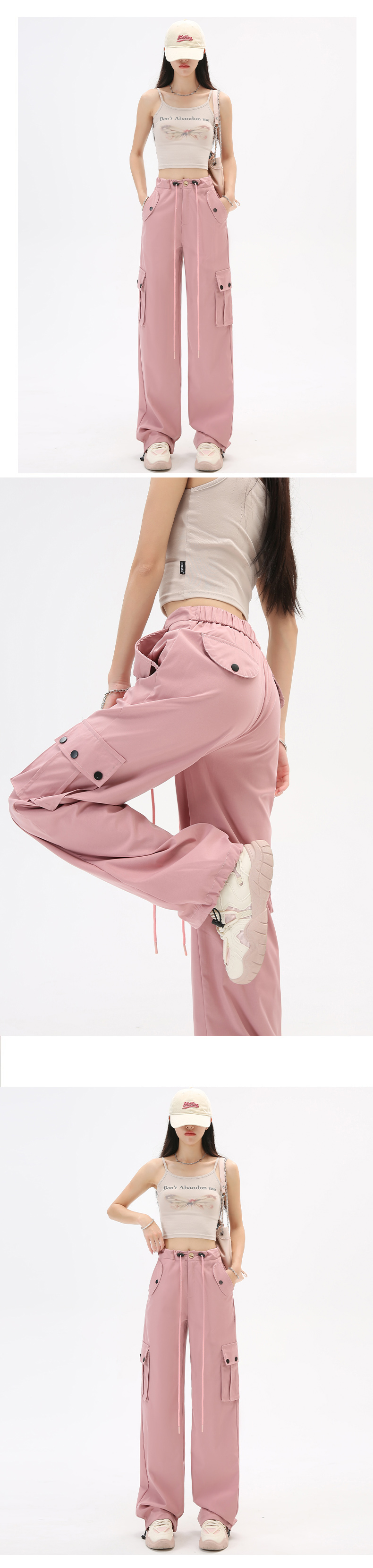 미국식 등산 작업복 여성 봄과 가을 여름 높은 허리 느슨한 넓은 다리 야외 빠른 건조 2025 스포츠 바지
