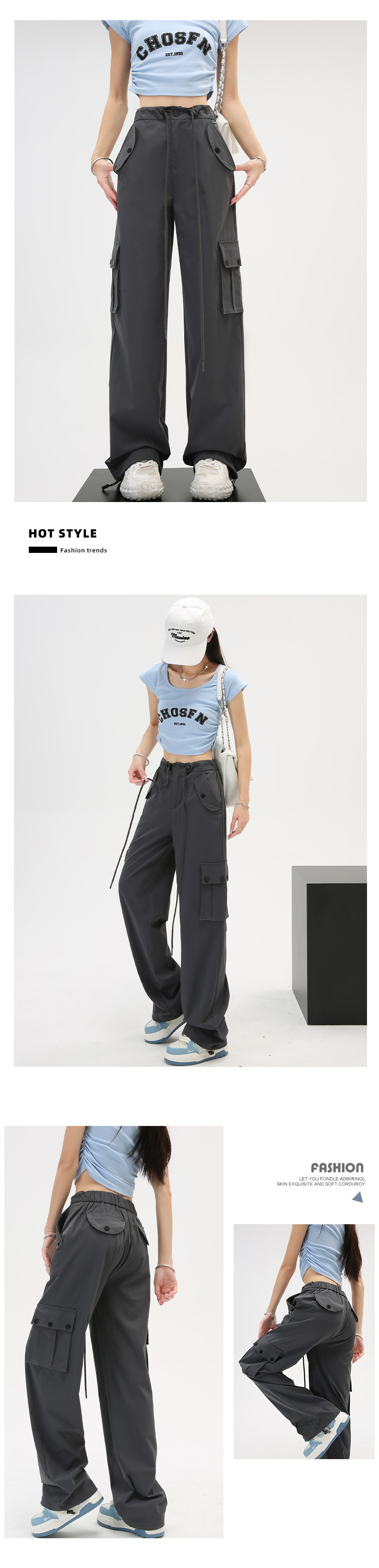 미국식 등산 작업복 여성 봄과 가을 여름 높은 허리 느슨한 넓은 다리 야외 빠른 건조 2025 스포츠 바지스토어 가기