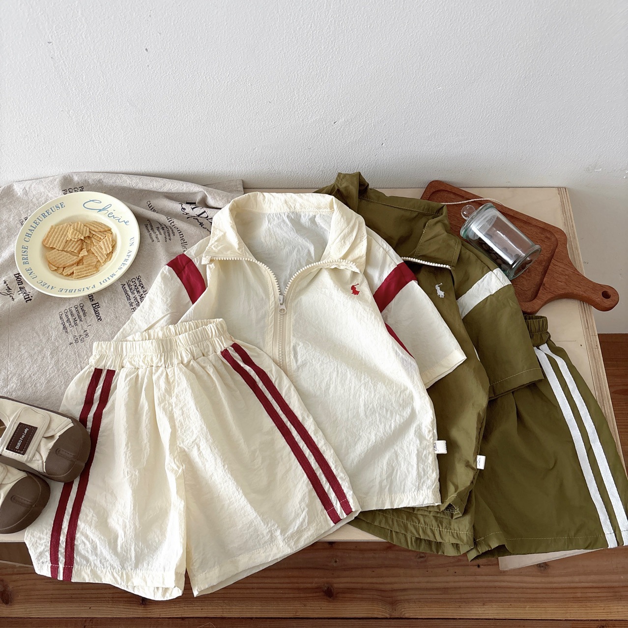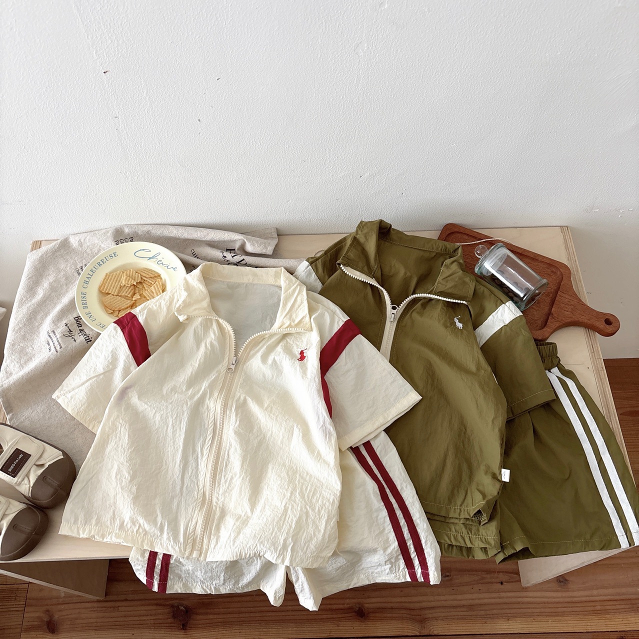 2024 패션 아동복 여름 태양 보호 의류 얇은 짧은 소매 코트 남성 반바지 어린이 여름 의류 소년 세트