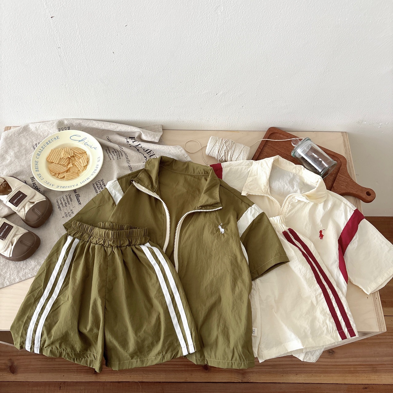 2024 패션 아동복 여름 태양 보호 의류 얇은 짧은 소매 코트 남성 반바지 어린이 여름 의류 소년 세트스토어 가기