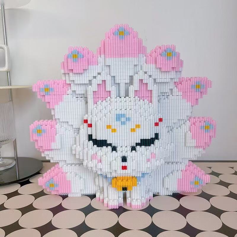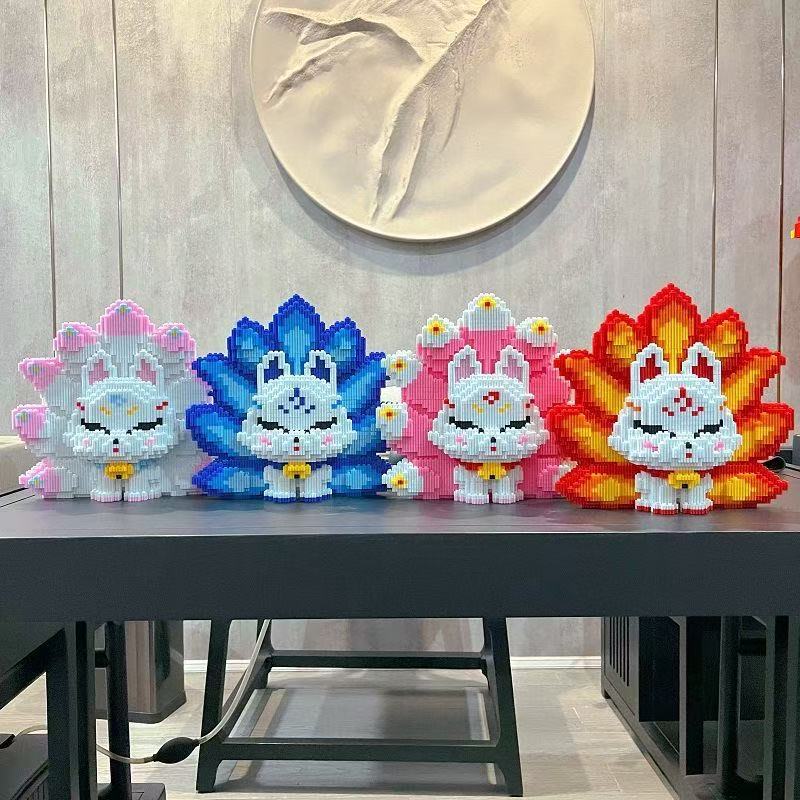 소년과 소녀를위한 작은 입자로 조립 된 구미호 빌딩 블록 퍼즐 수제 diy 장난감 선물스토어 가기