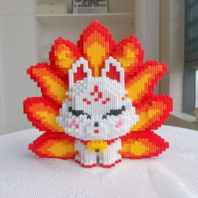 소년과 소녀를위한 작은 입자로 조립 된 구미호 빌딩 블록 퍼즐 수제 diy 장난감 선물