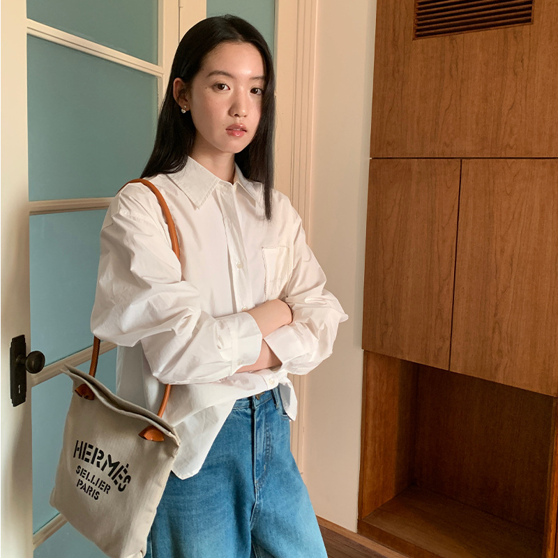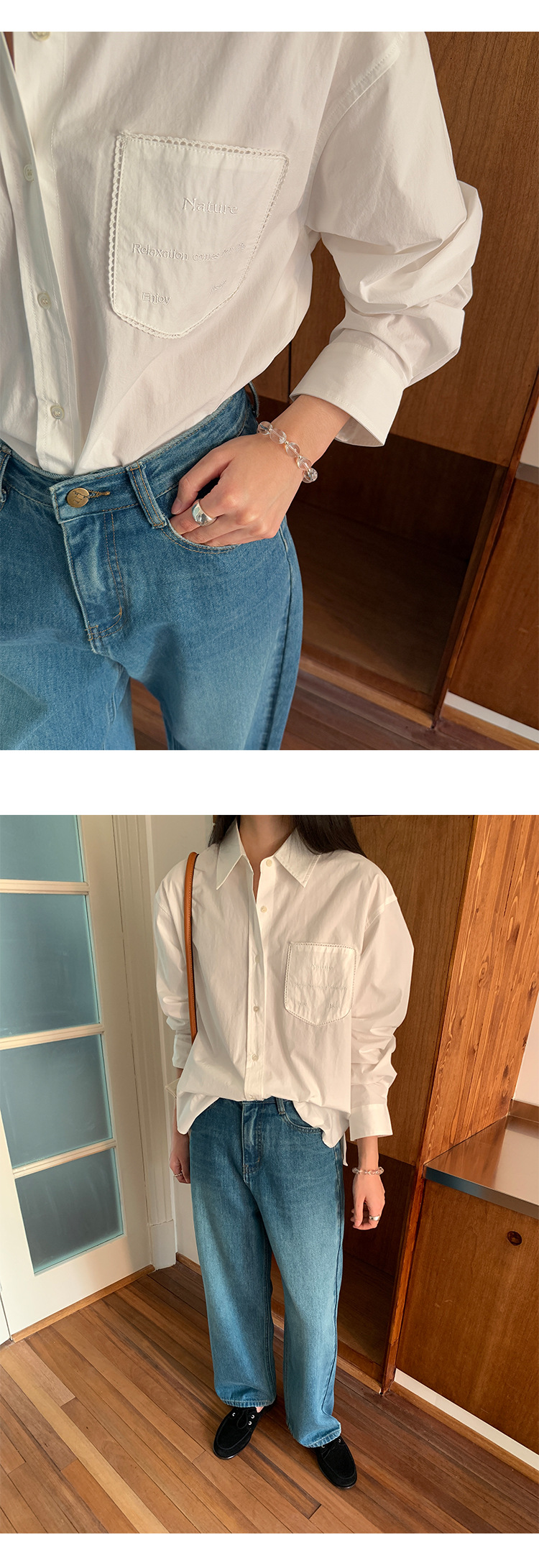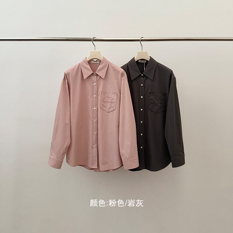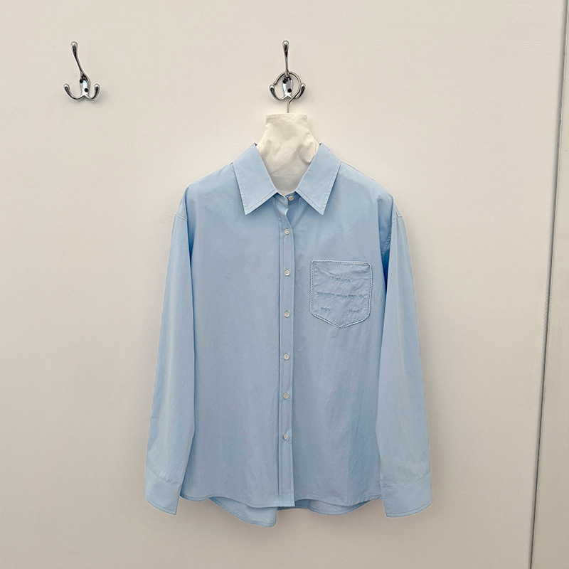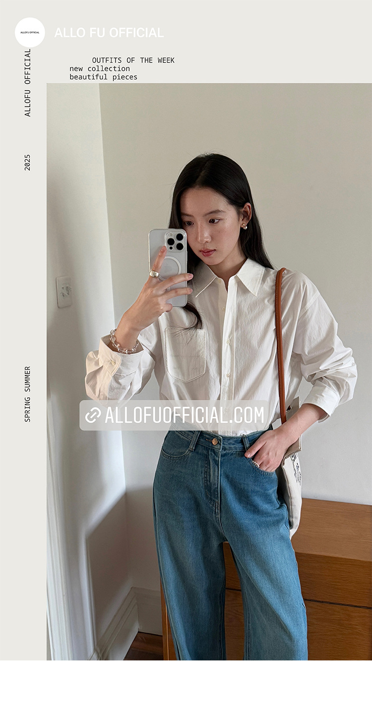 Allo 포켓 레이스 자수 옷깃 셔츠 여성의 2025 년 봄과 여름 새로운 편안한 긴 소매 슬림 셔츠 23113스토어 가기