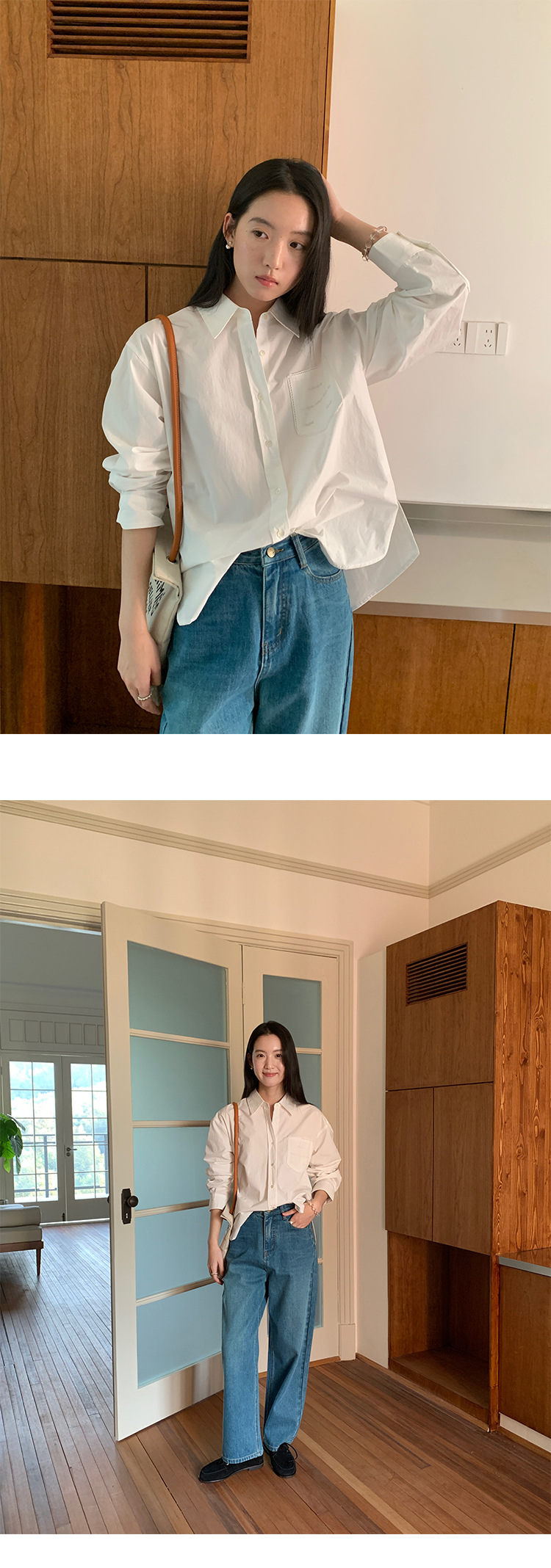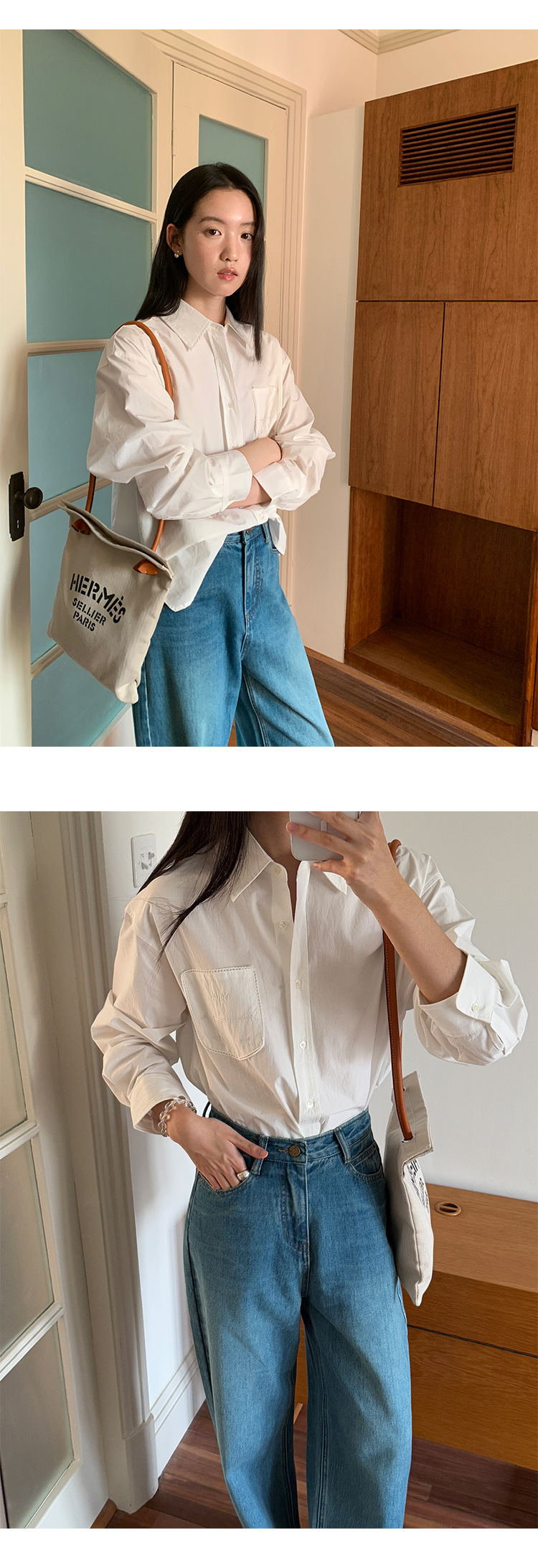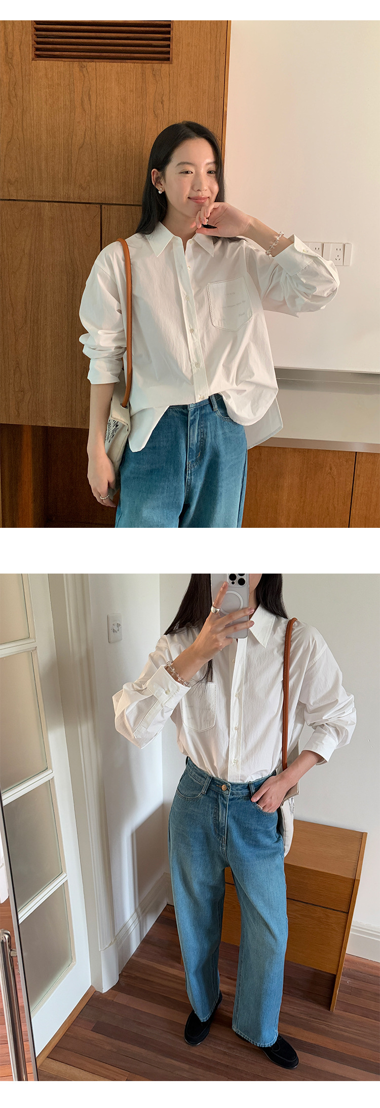 Allo 포켓 레이스 자수 옷깃 셔츠 여성의 2025 년 봄과 여름 새로운 편안한 긴 소매 슬림 셔츠 23113스토어 가기