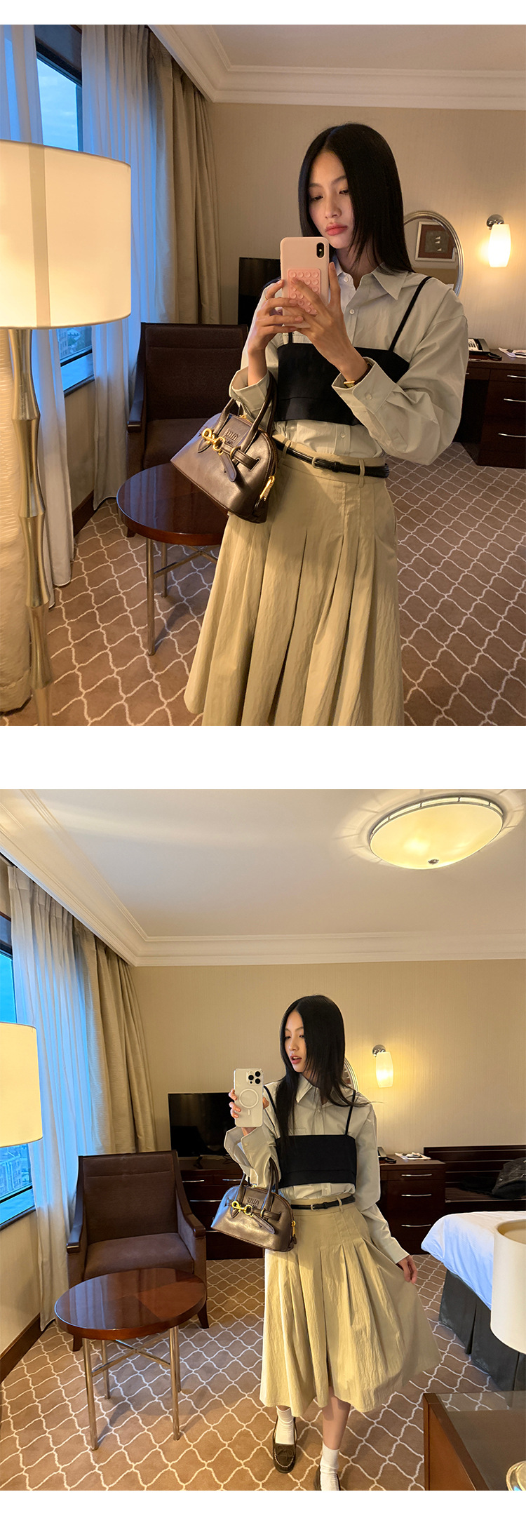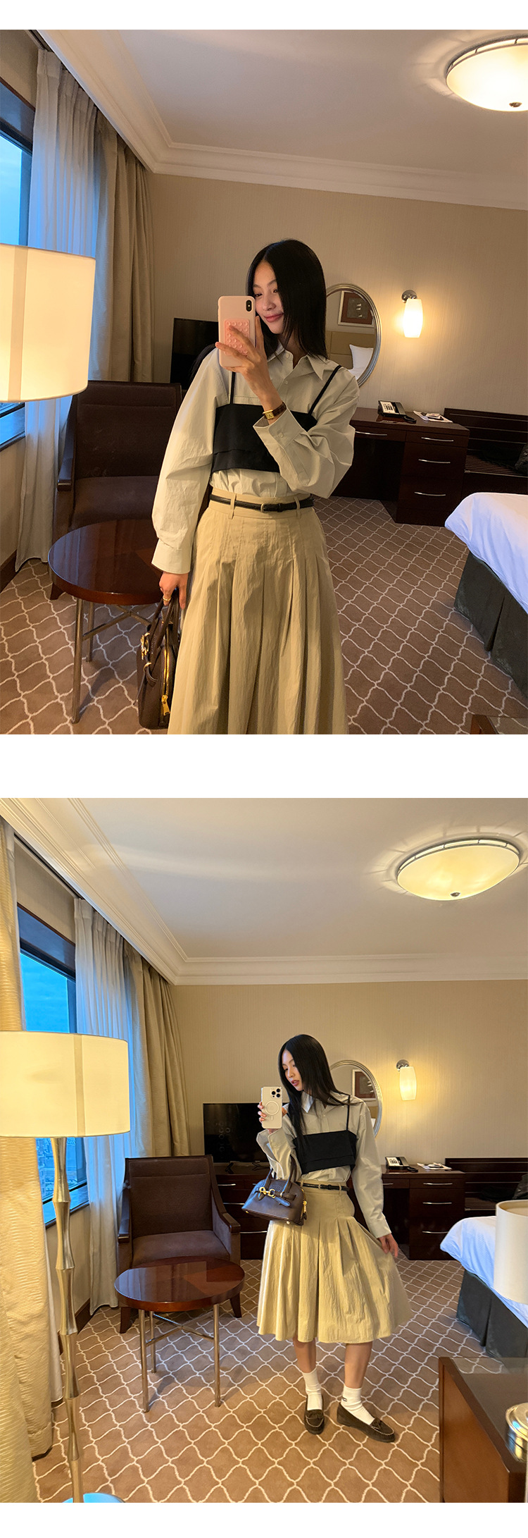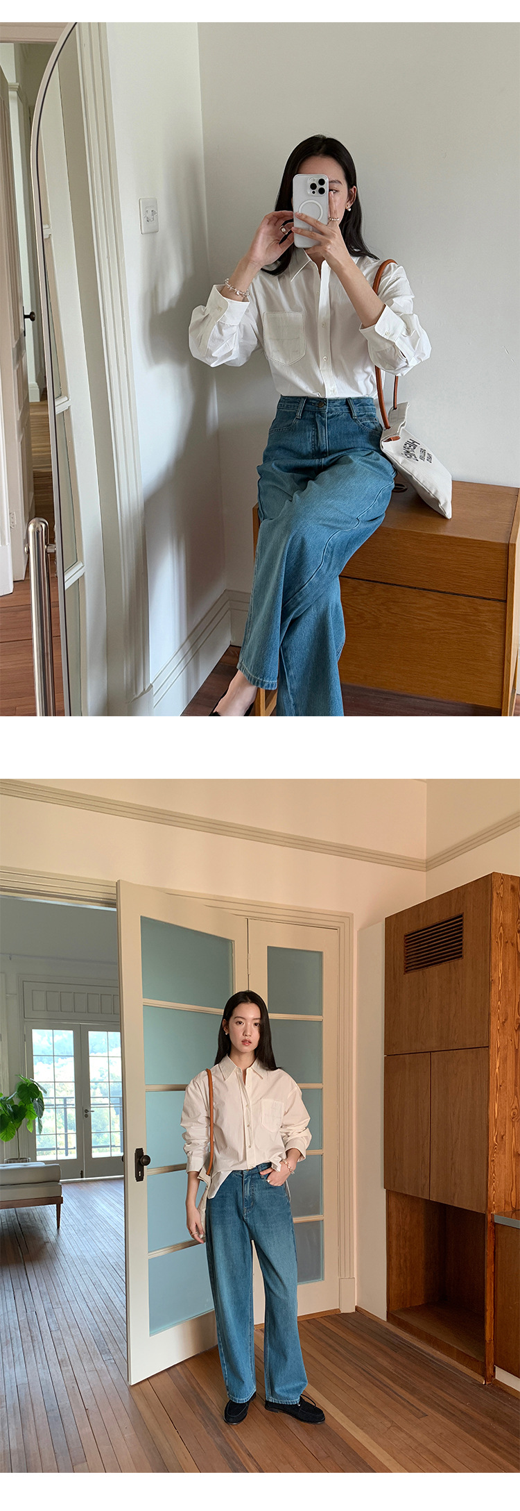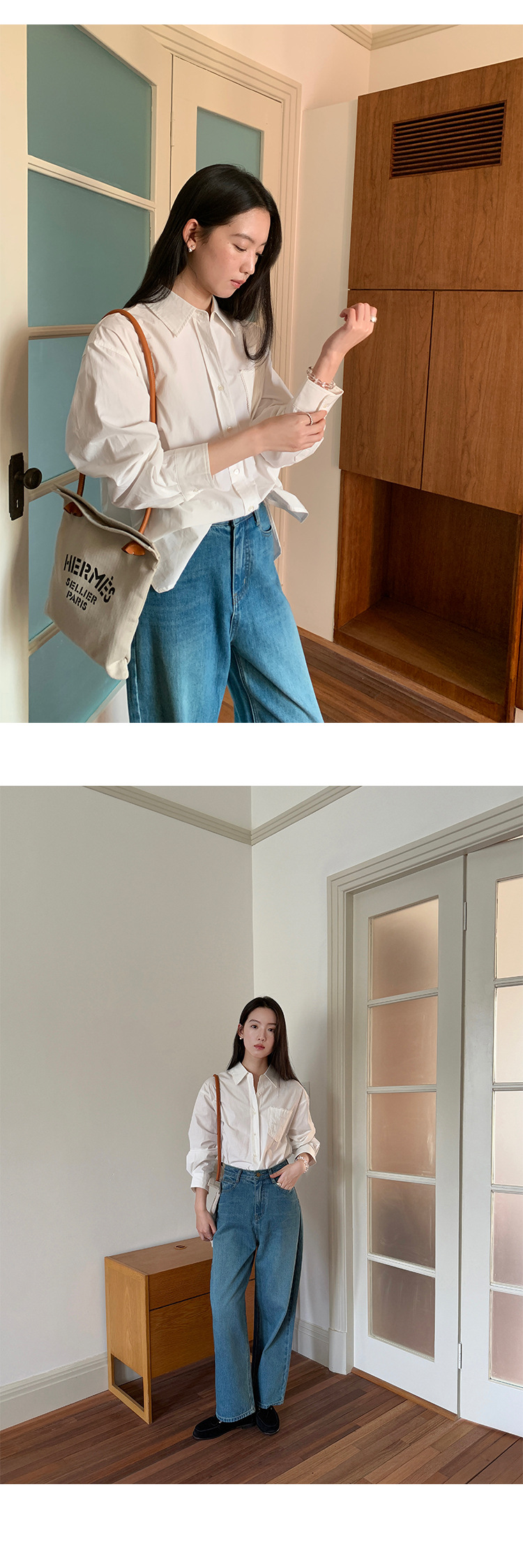 Allo 포켓 레이스 자수 옷깃 셔츠 여성의 2025 년 봄과 여름 새로운 편안한 긴 소매 슬림 셔츠 23113스토어 가기