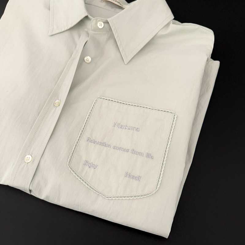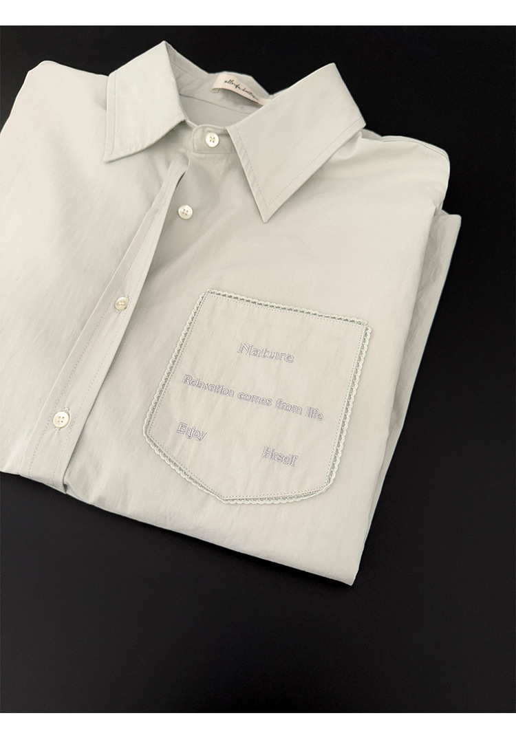 Allo 포켓 레이스 자수 옷깃 셔츠 여성의 2025 년 봄과 여름 새로운 편안한 긴 소매 슬림 셔츠 23113