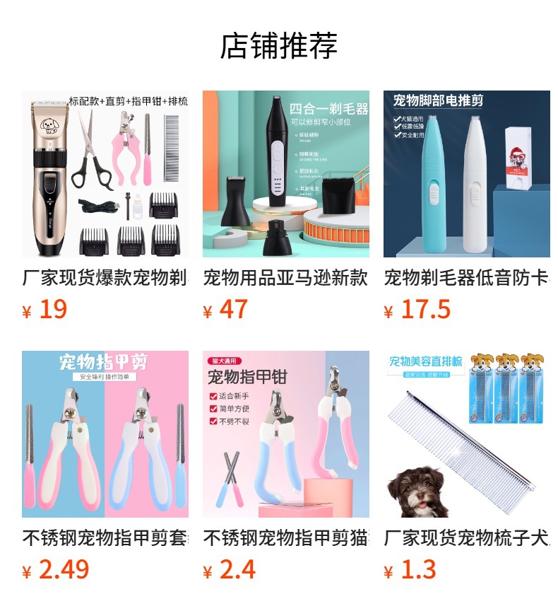 아마존의 인기 애완동물 면도기 세트, 개용 전기 이발기, 손톱깎이, 애완동물 발 면도기, 애완동물 용품스토어 가기