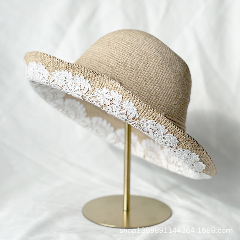 새로운 우아한 레이스 꽃 라피 잔디 후크 모자 모든 경기 간단한 프랑스 홀리데이 스타일 비치 어부 모자 밀짚 모자스토어 가기