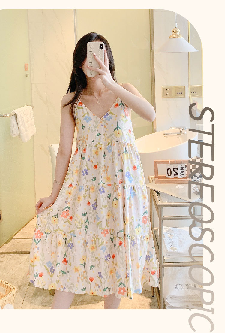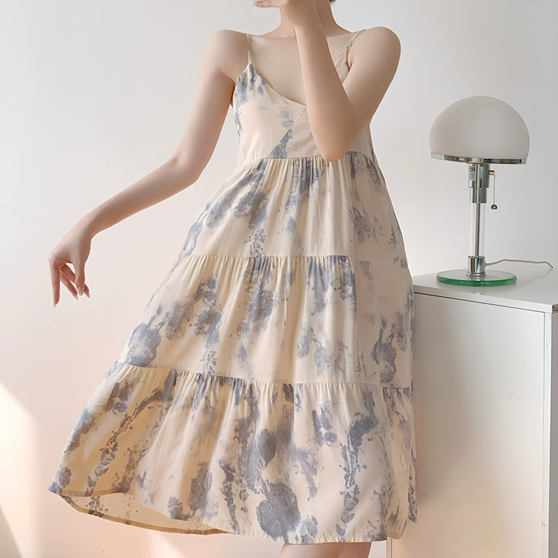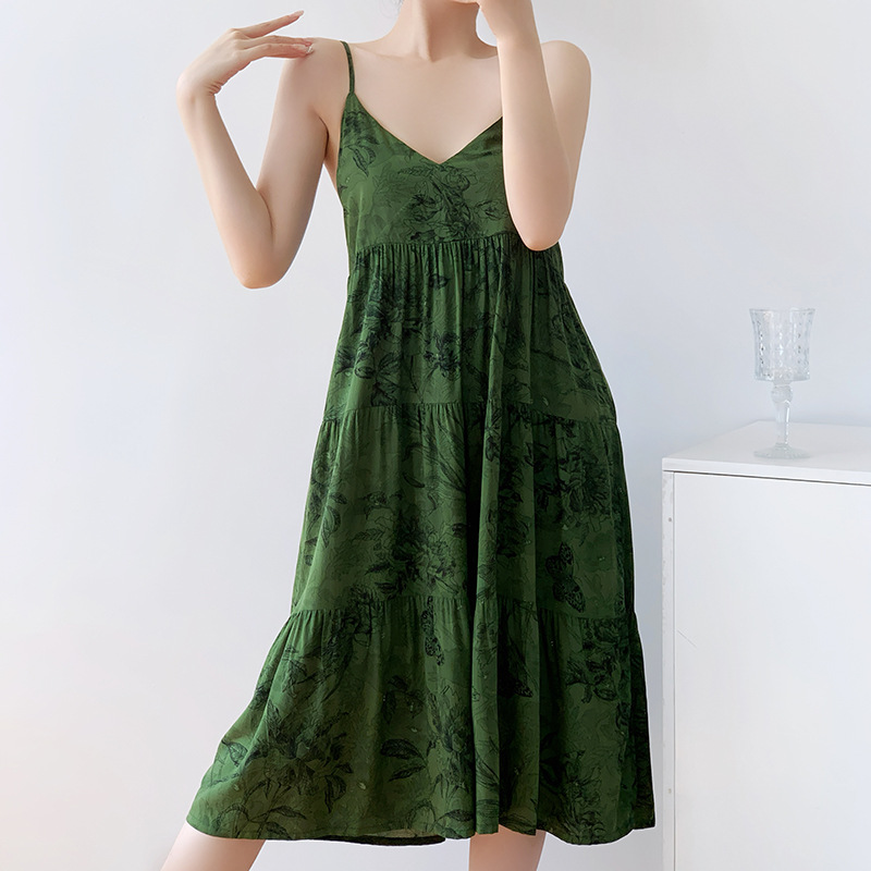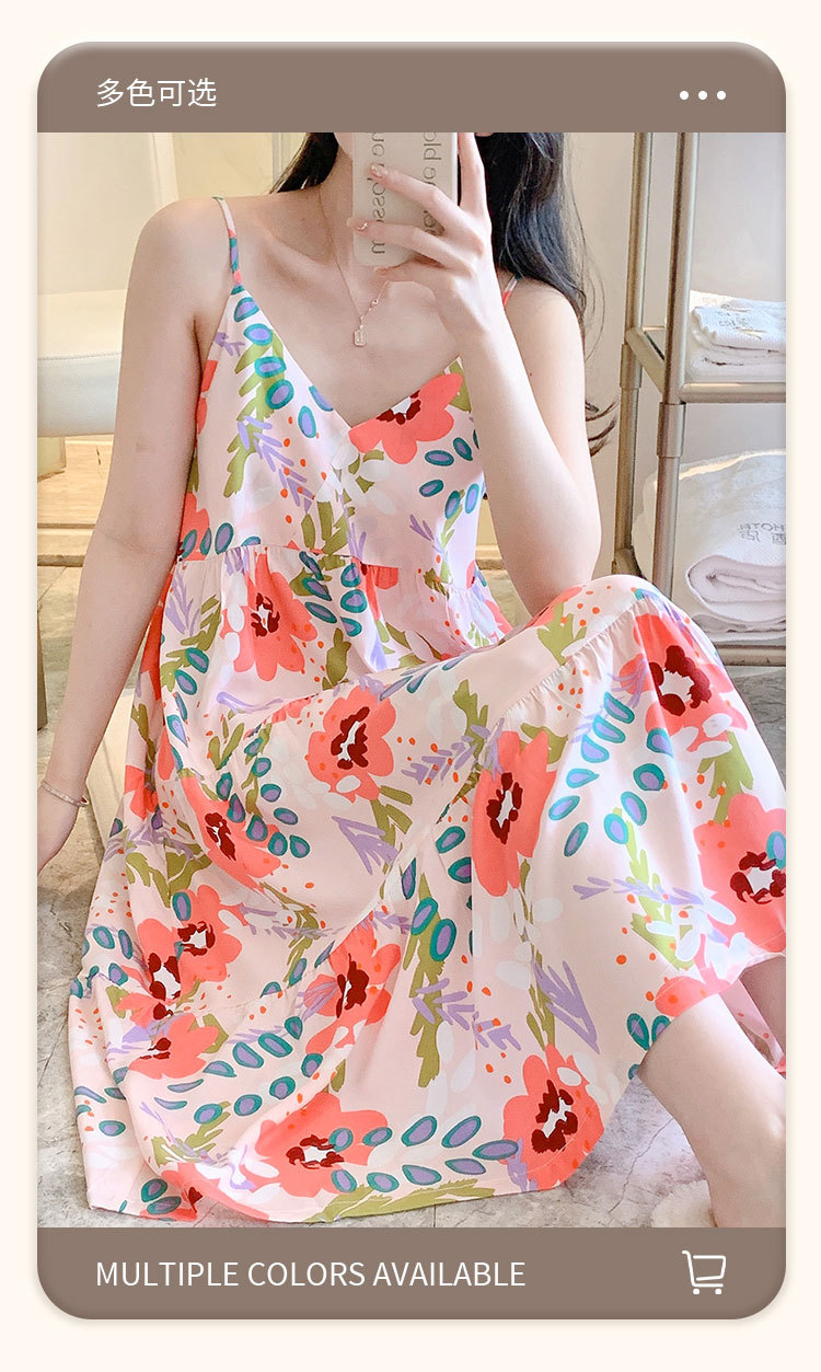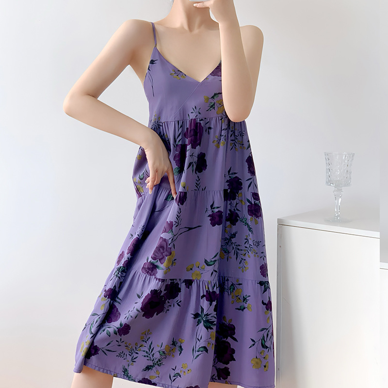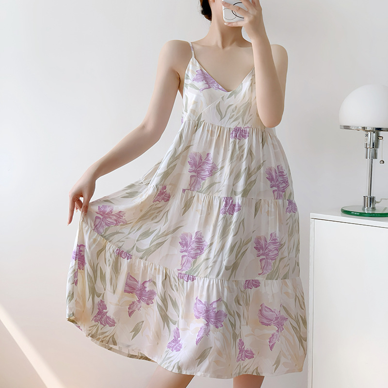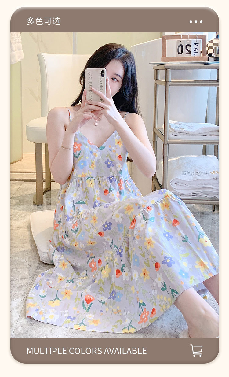 여름 서스펜더 잠옷, 여성스러운 얇은 인공 면 실크 홈웨어, 한국식 대형 고급 면 실크 잠옷 드레스스토어 가기