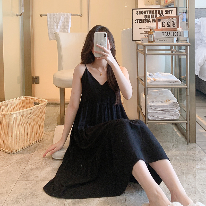여름 서스펜더 잠옷, 여성스러운 얇은 인공 면 실크 홈웨어, 한국식 대형 고급 면 실크 잠옷 드레스