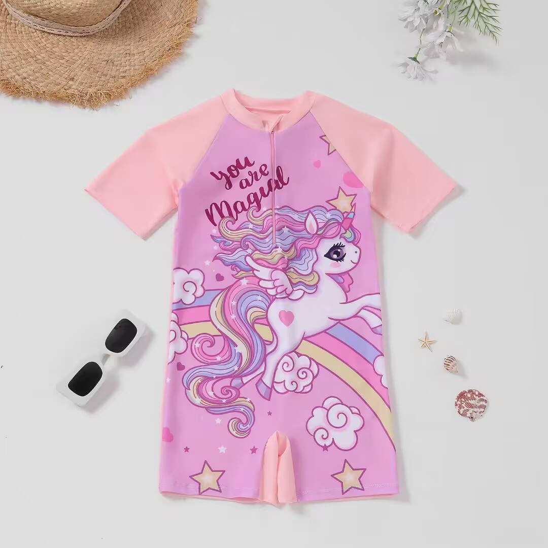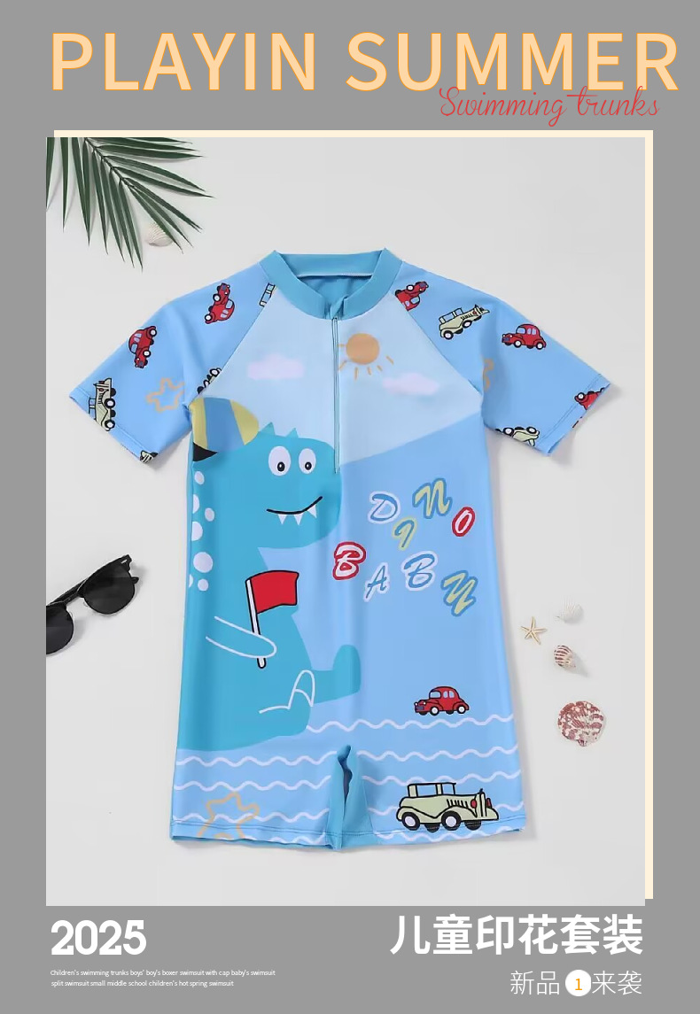 새로운 어린이 여름 수영복 소년 2025 새로운 어린이 원피스 수영복 수영복 소녀 만화 스포츠 세트