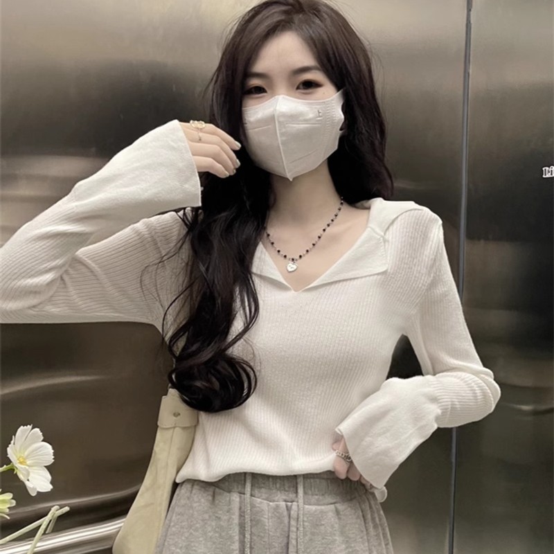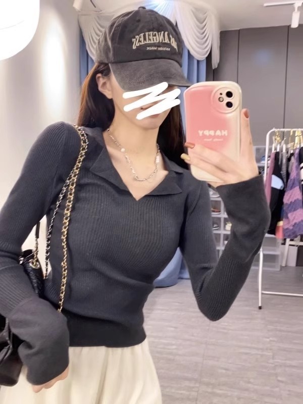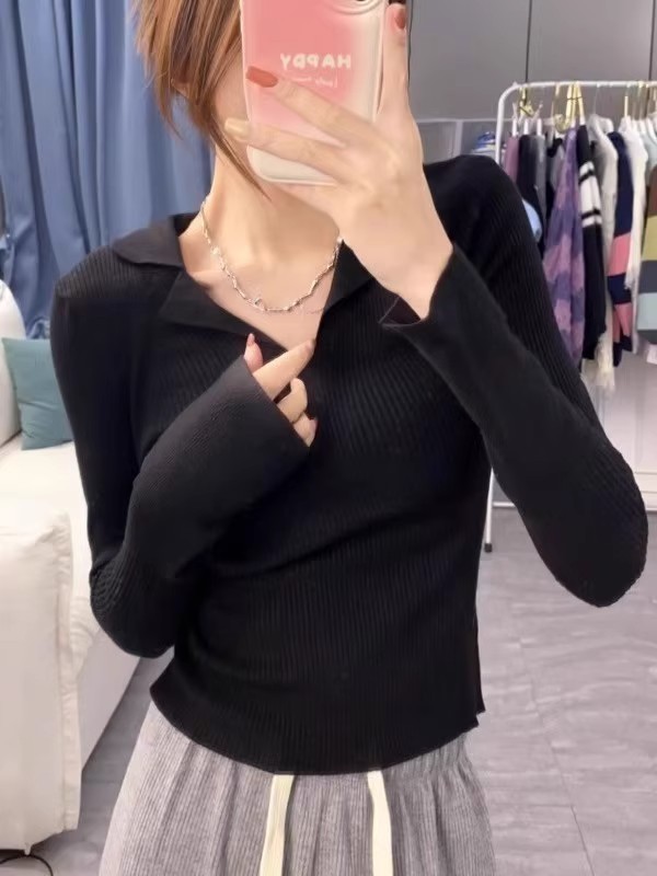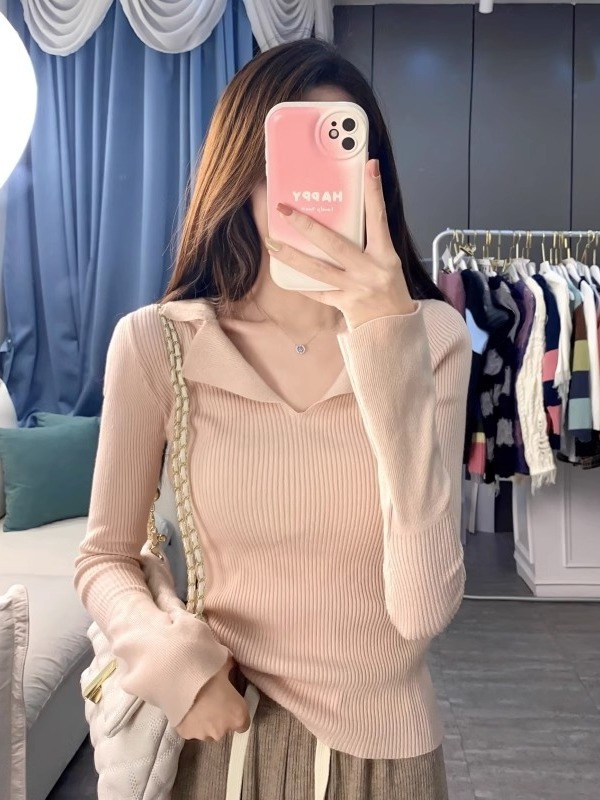 니치 스웨터 가을 겨울 2025 새로운 디자인 얇은 바닥 셔츠 슬림 피트 폴로 칼라 탑 여성용스토어 가기