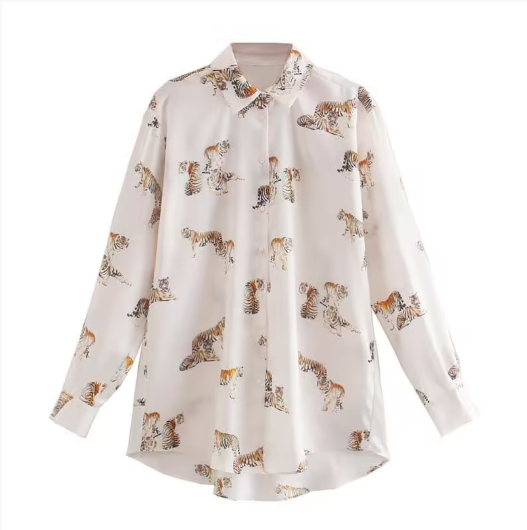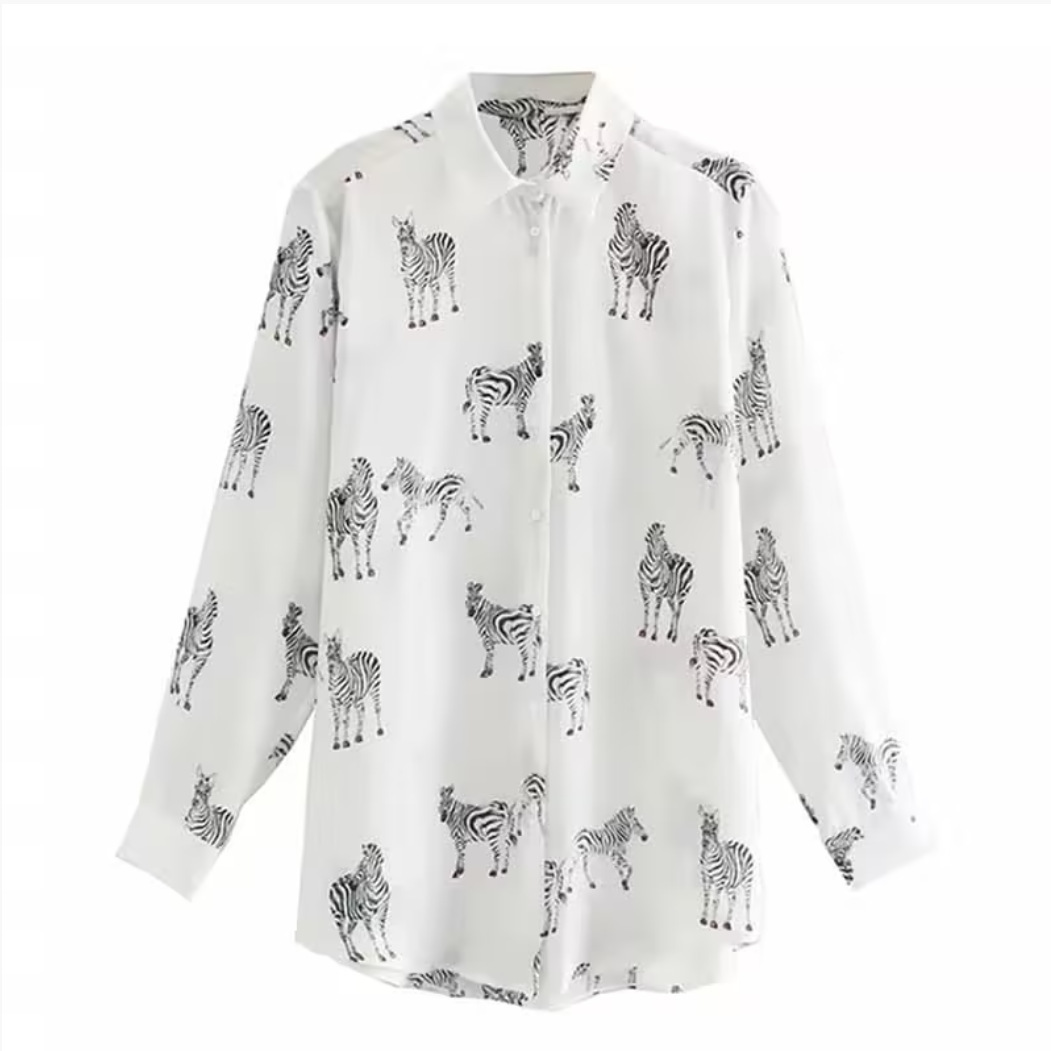 2025 독립 역 폭발 여성 여름 셔츠 새로운 유럽과 미국의 트렌드 셔츠 동물 패턴 인쇄 3D스토어 가기