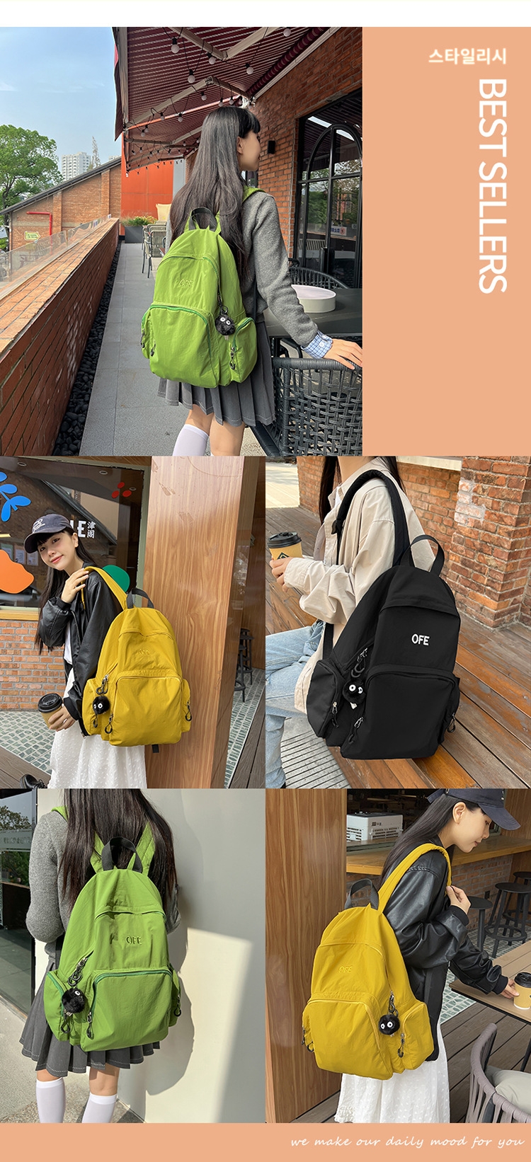 일본 스타일 캐주얼 백팩 여성용 신상 단색 백팩 인기 패션 대용량 백팩 여성용 대학 스타일스토어 가기