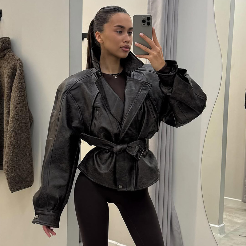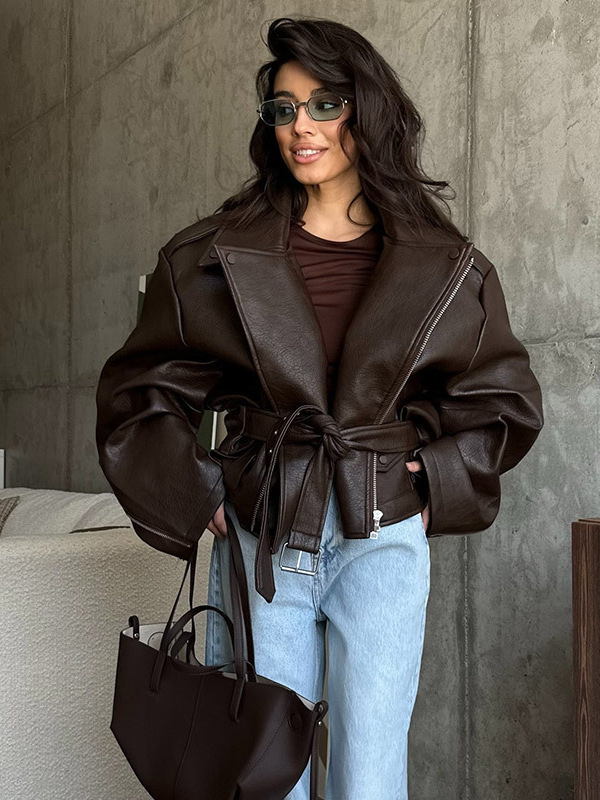 2025년 신상 라펠 재킷, 인조 가죽 고급스러운 스타일, 멋스러운 숏 가죽 재킷, 여성용 가을 겨울 미국 스타일스토어 가기