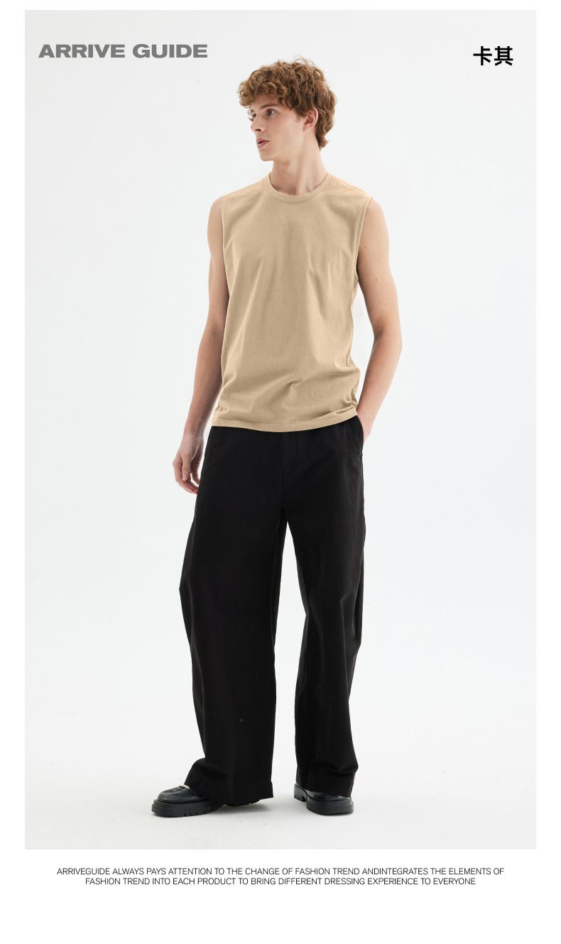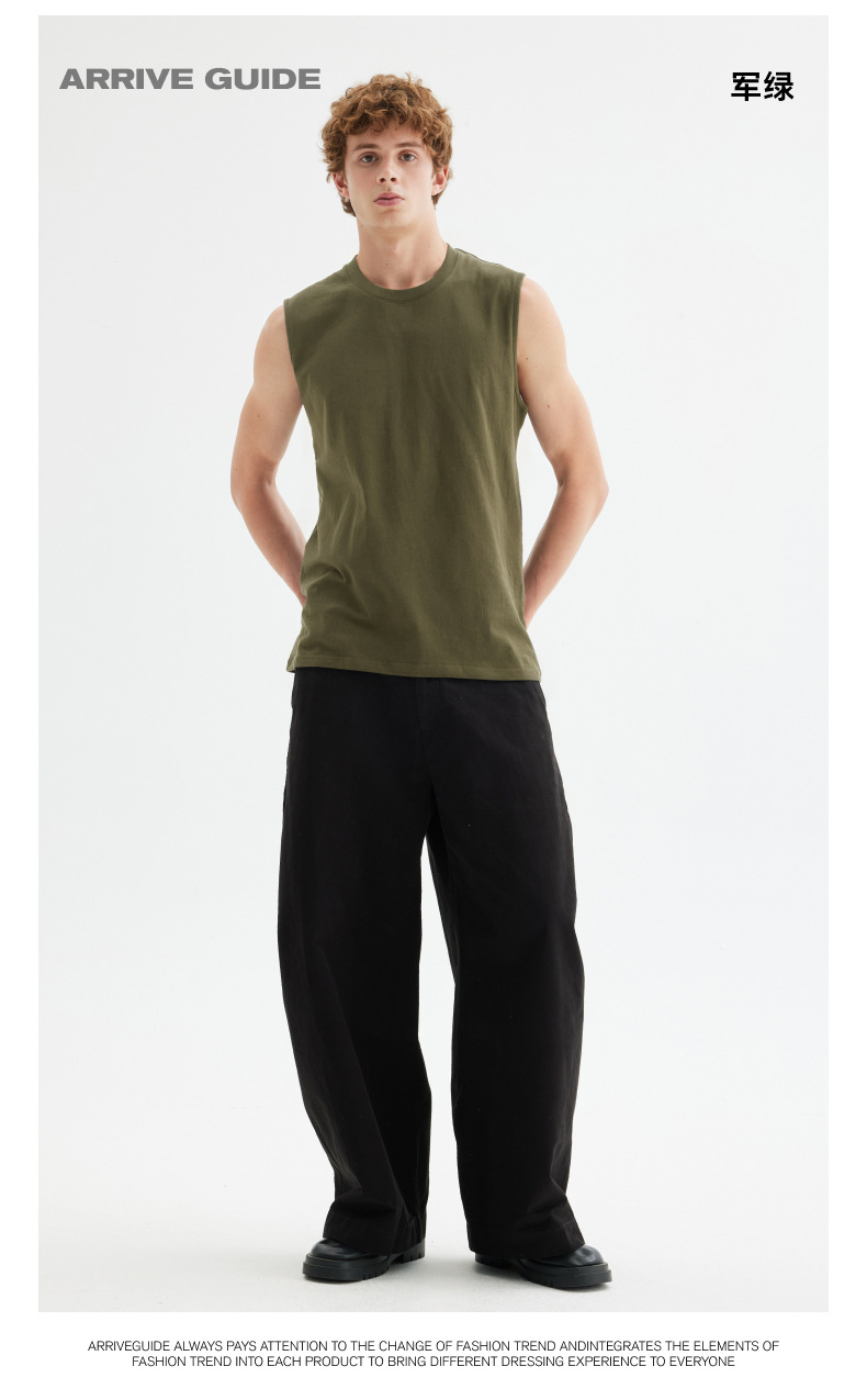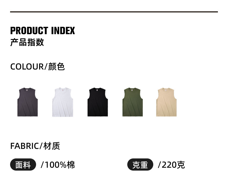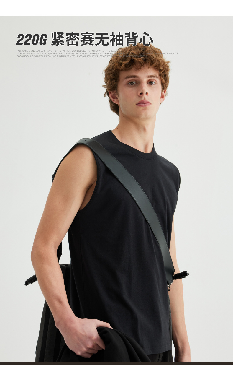 220g 타이트한 사이 민소매 조끼 면 남자 여름 청소년 레저 스포츠 단색 간단한 라운드 칼라 셔츠스토어 가기