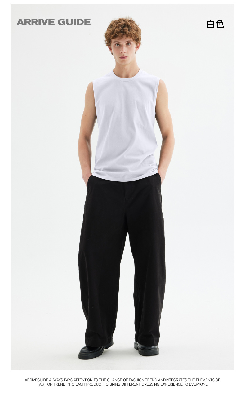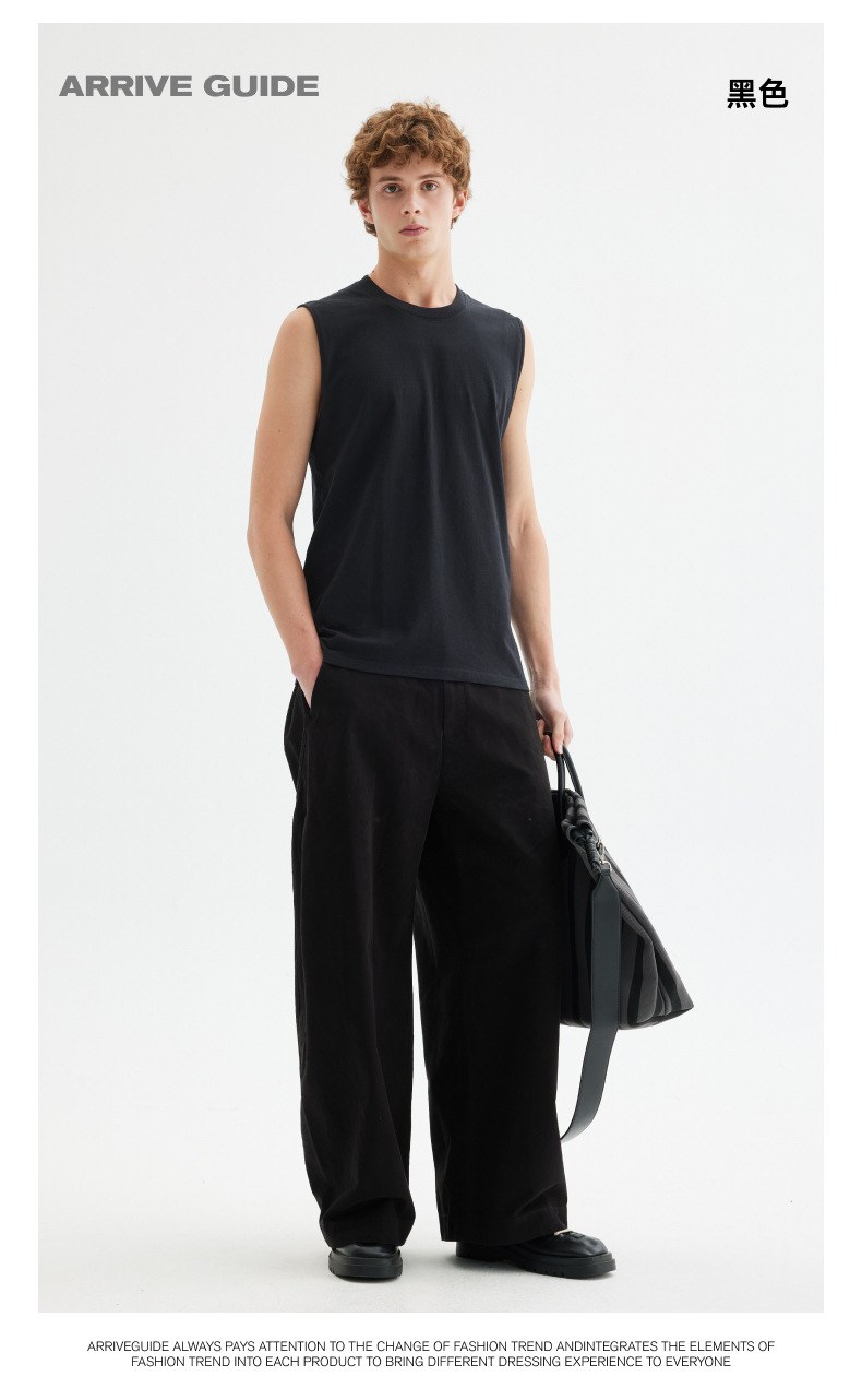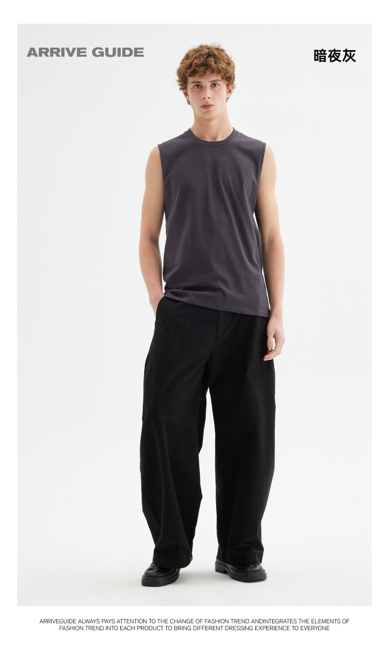 220g 타이트한 사이 민소매 조끼 면 남자 여름 청소년 레저 스포츠 단색 간단한 라운드 칼라 셔츠스토어 가기