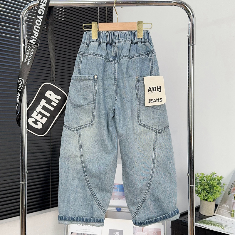 남아용 청바지, 세이버 스타일 바지, 봄 신상품, 루즈하고 캐주얼하며 편안하고 인기 있는 아우터웨어, 중대형 어린이에게 잘 어울립니다.스토어 가기