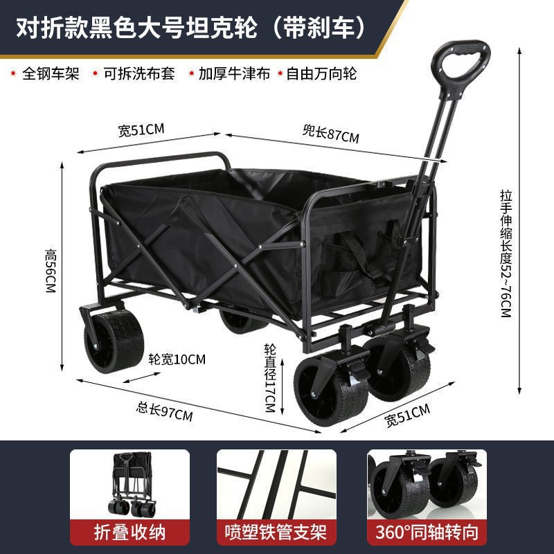 • [상위 구성] 블랙/ 10inch 탱크 휠 더블 브레이크 유니버설 휠 업그레이드 모델/야외 캠핑카 + 접이식 데스크탑