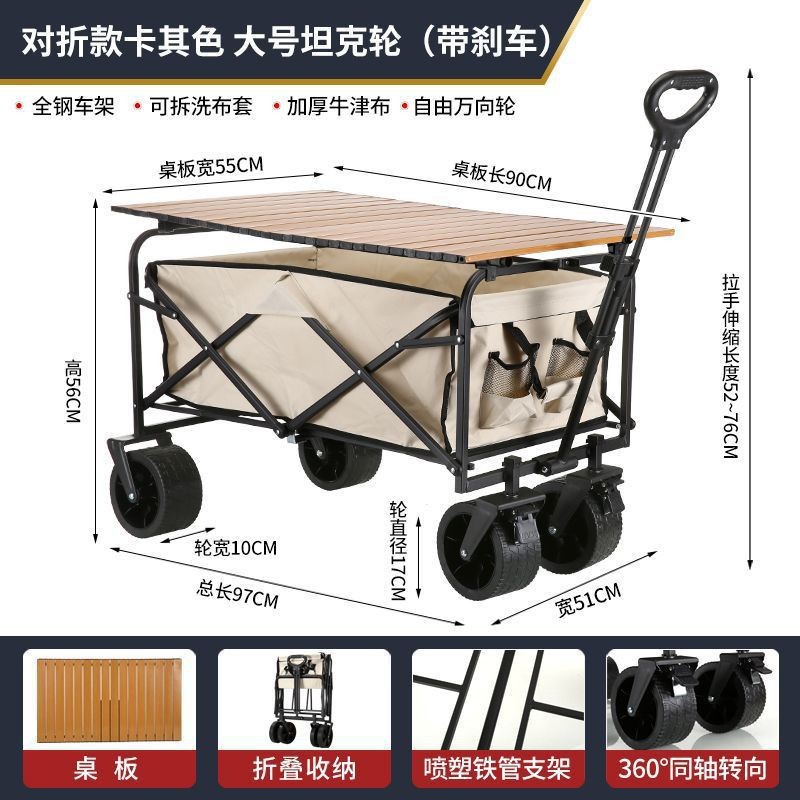 • [상위 구성] 카키/ 10inch 탱크 더블 브레이크 유니버설 휠 - 스톨 접이식 테이블 + 야외 캠핑카 /