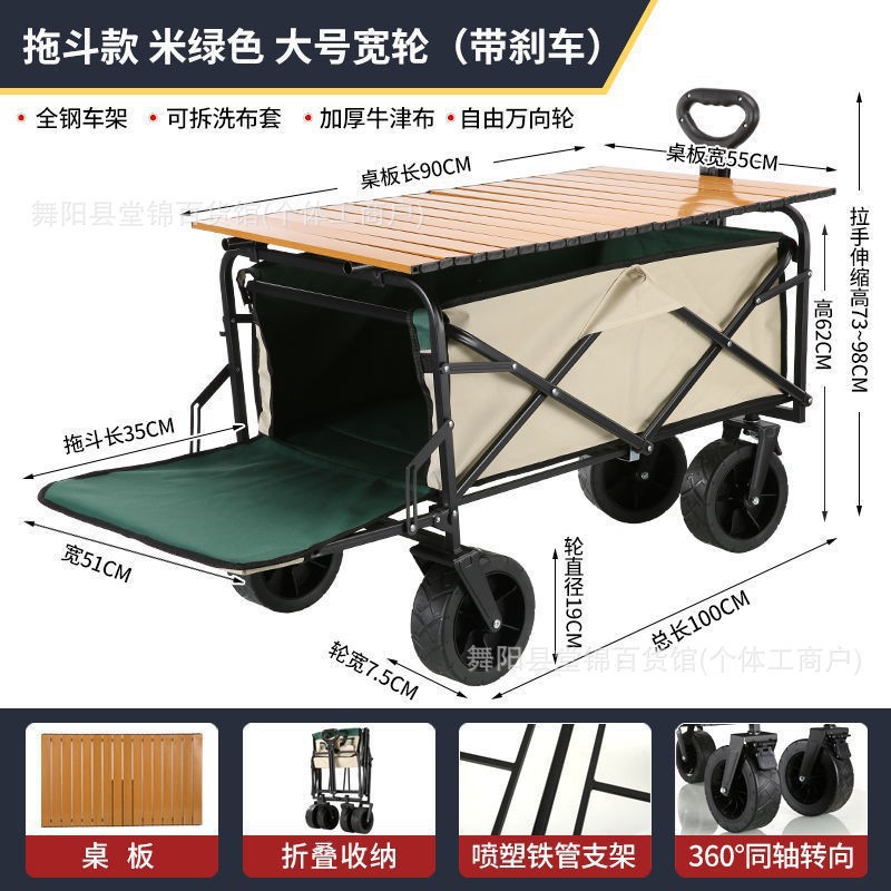 • 트레일러 버킷 모델 - 카드 그린/탱크 10inch 더블 브레이크 유니버설 휠 - 확장 및 높이 조절 가능 접이식 테이블 + 야외 캠핑카/