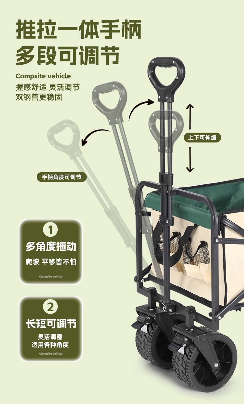 • [상위 구성] 카키/ 10inch 탱크 더블 브레이크 유니버설 휠 업그레이드 모델/야외 캠핑카 + 접이식 데스크탑