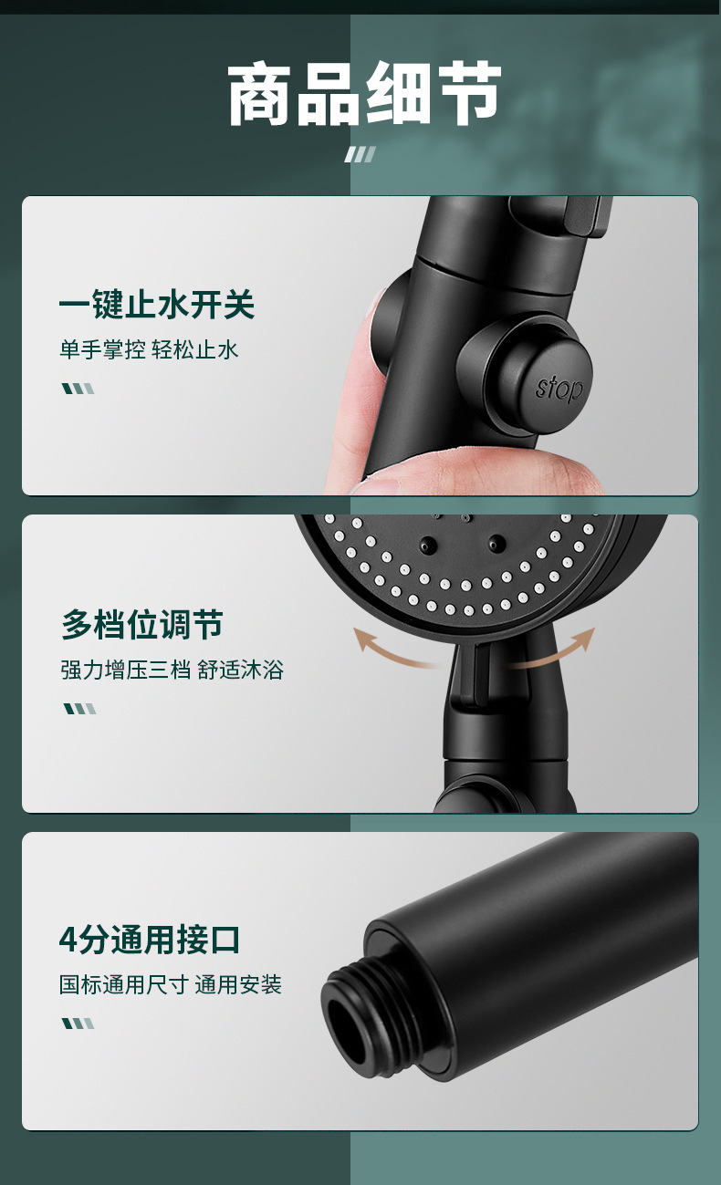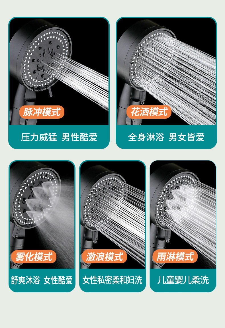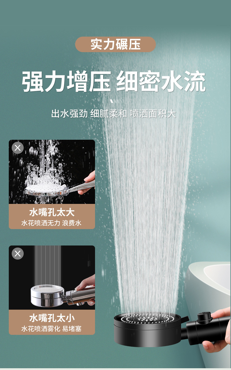 新款增压淋雨莲蓬头家用黑色淋浴花洒浴室大出水洗澡手持花洒头