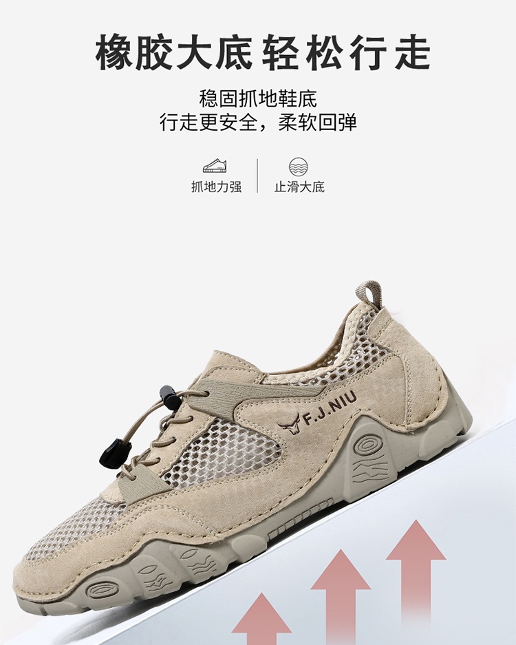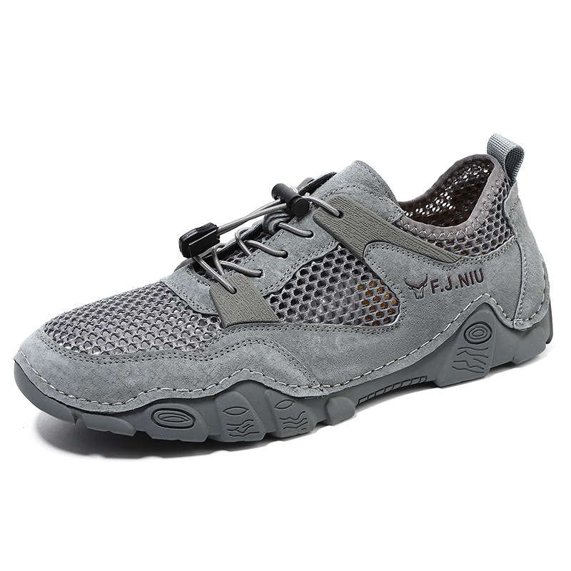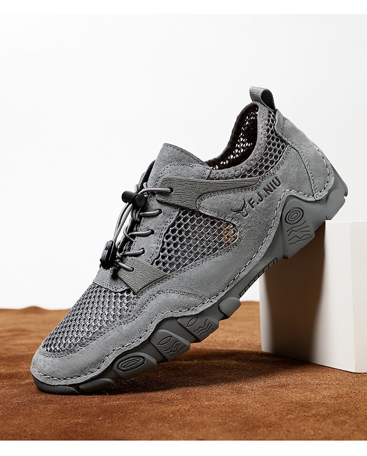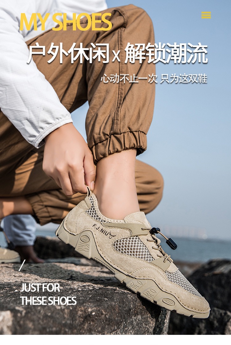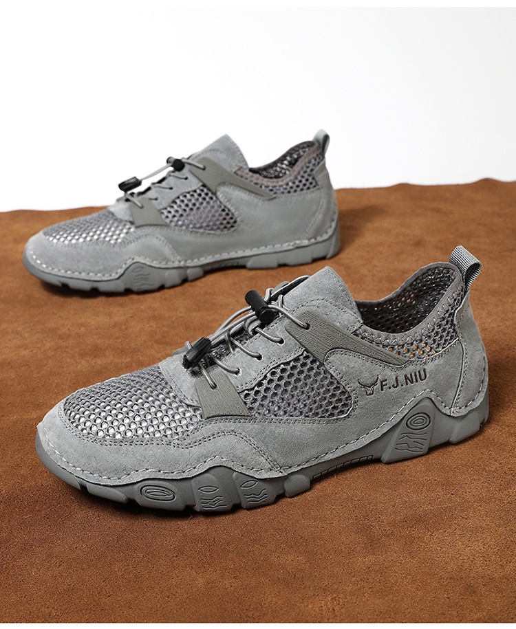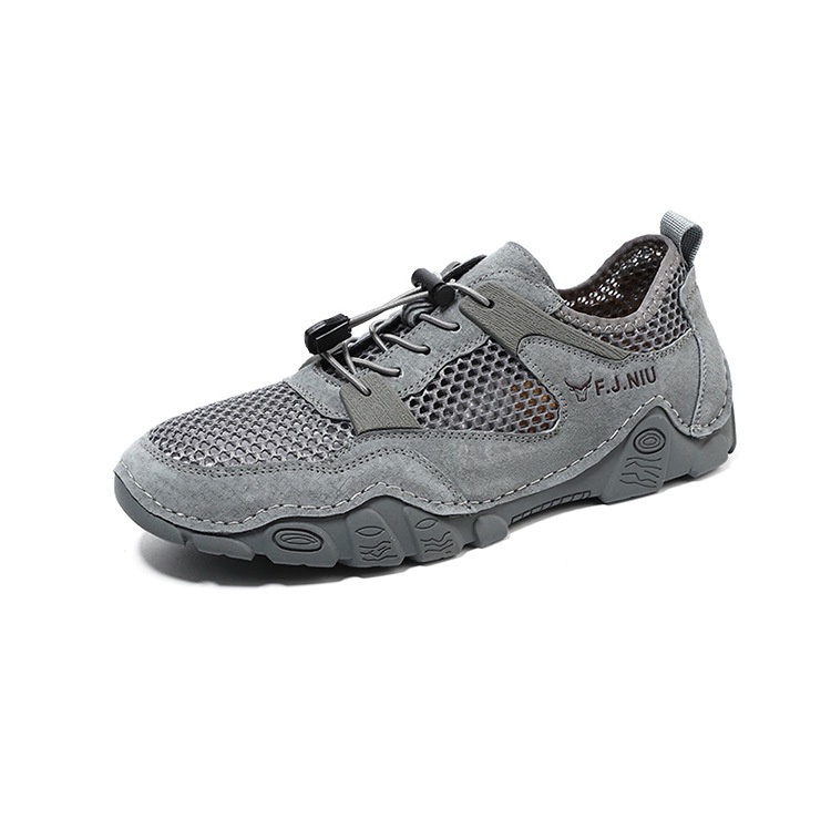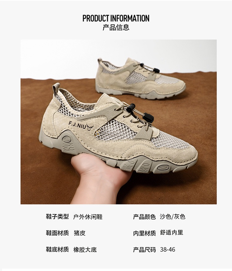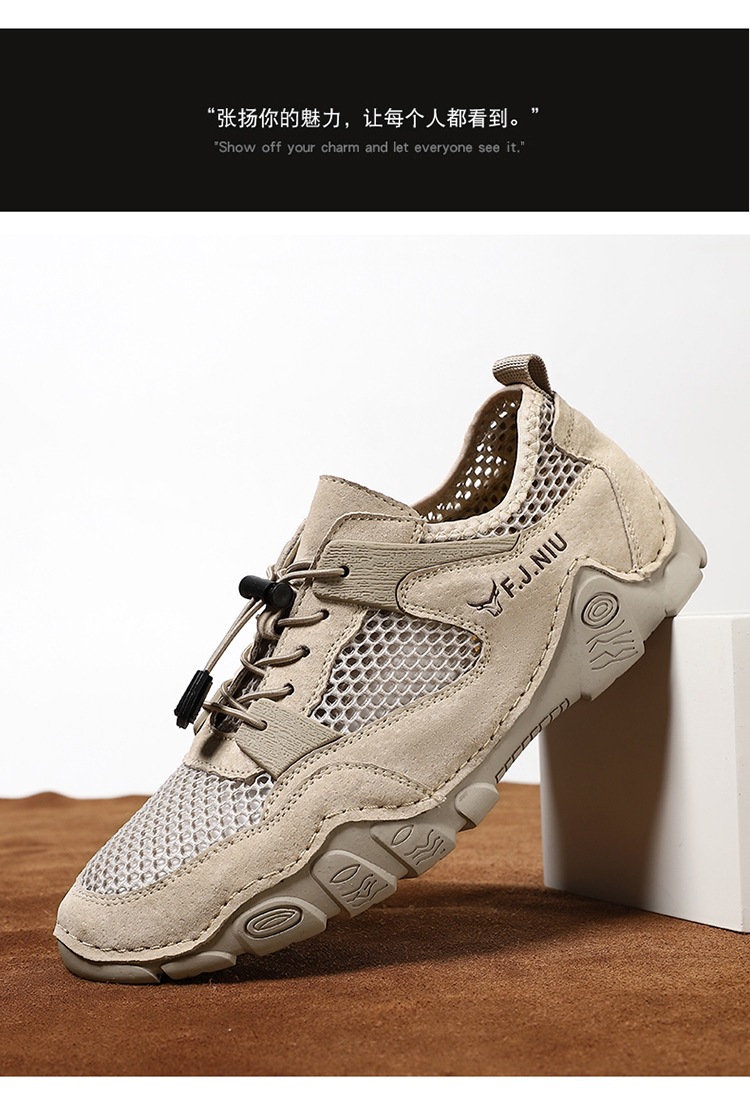 남성용 크로스보더 인기 메쉬 슈즈 2025 여름 통기성 가죽 메쉬 남성 캐주얼 슈즈 중공 메쉬 슈즈스토어 가기