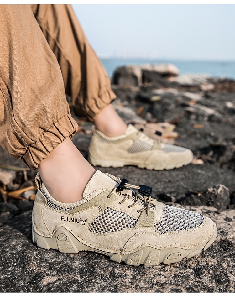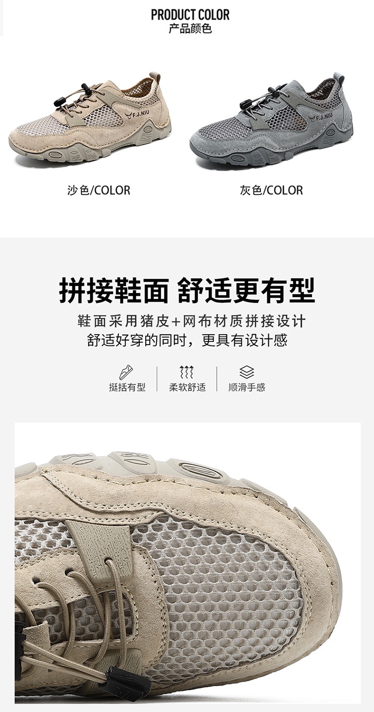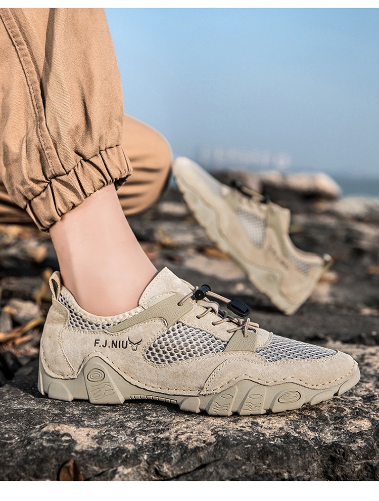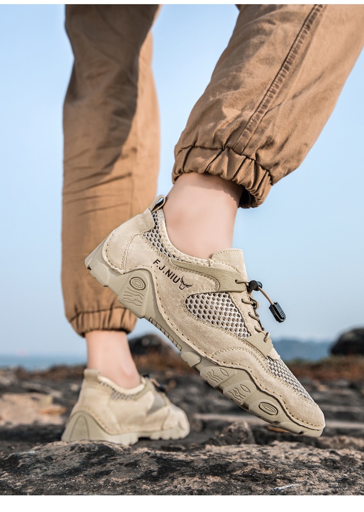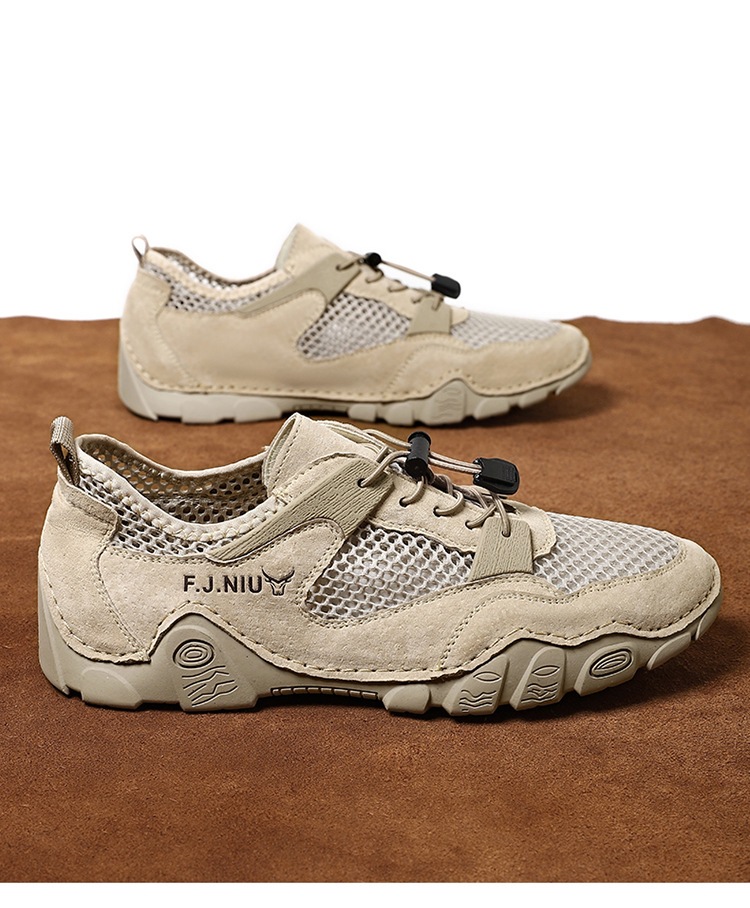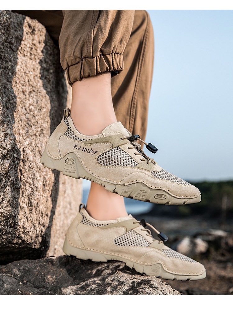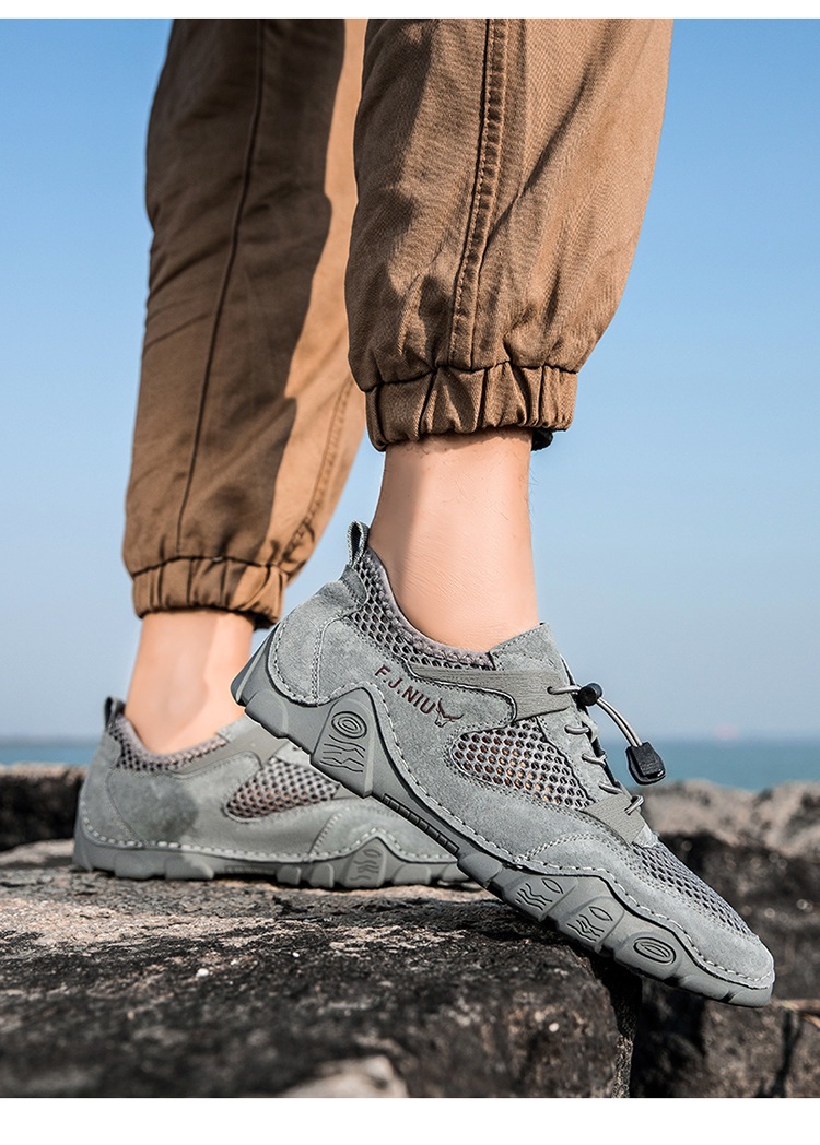 남성용 크로스보더 인기 메쉬 슈즈 2025 여름 통기성 가죽 메쉬 남성 캐주얼 슈즈 중공 메쉬 슈즈스토어 가기