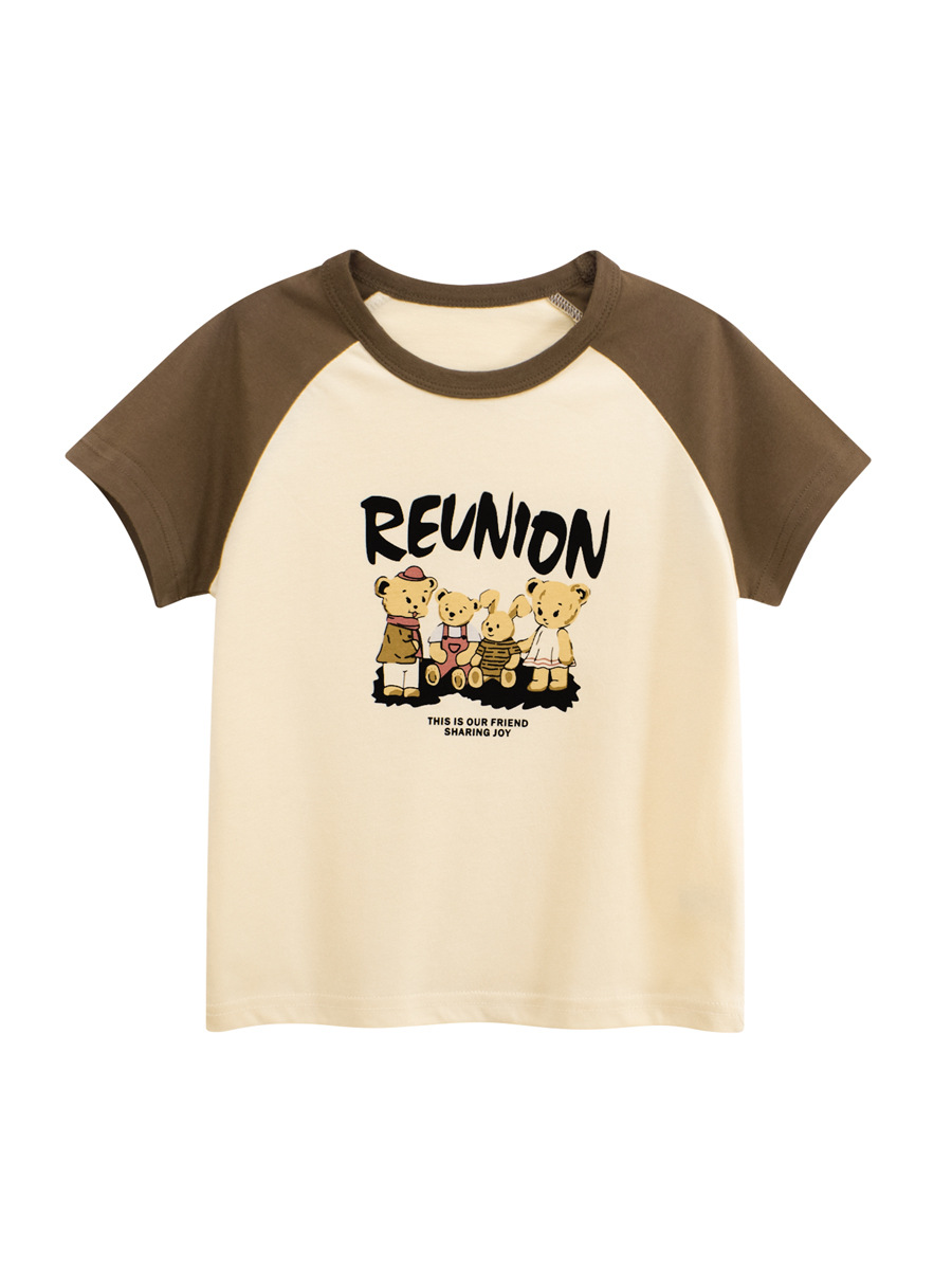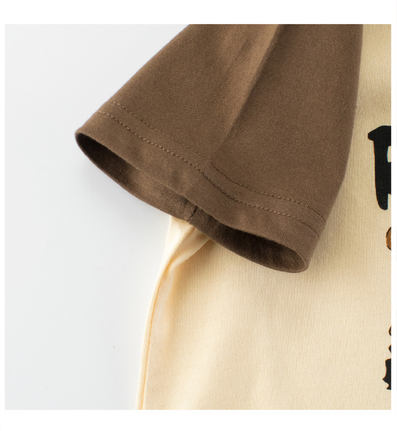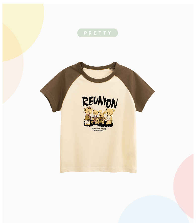 27 홈 어린이 여름 새로운 반팔 2025 아기 만화 곰 컬러 블록 티셔츠 탑스토어 가기