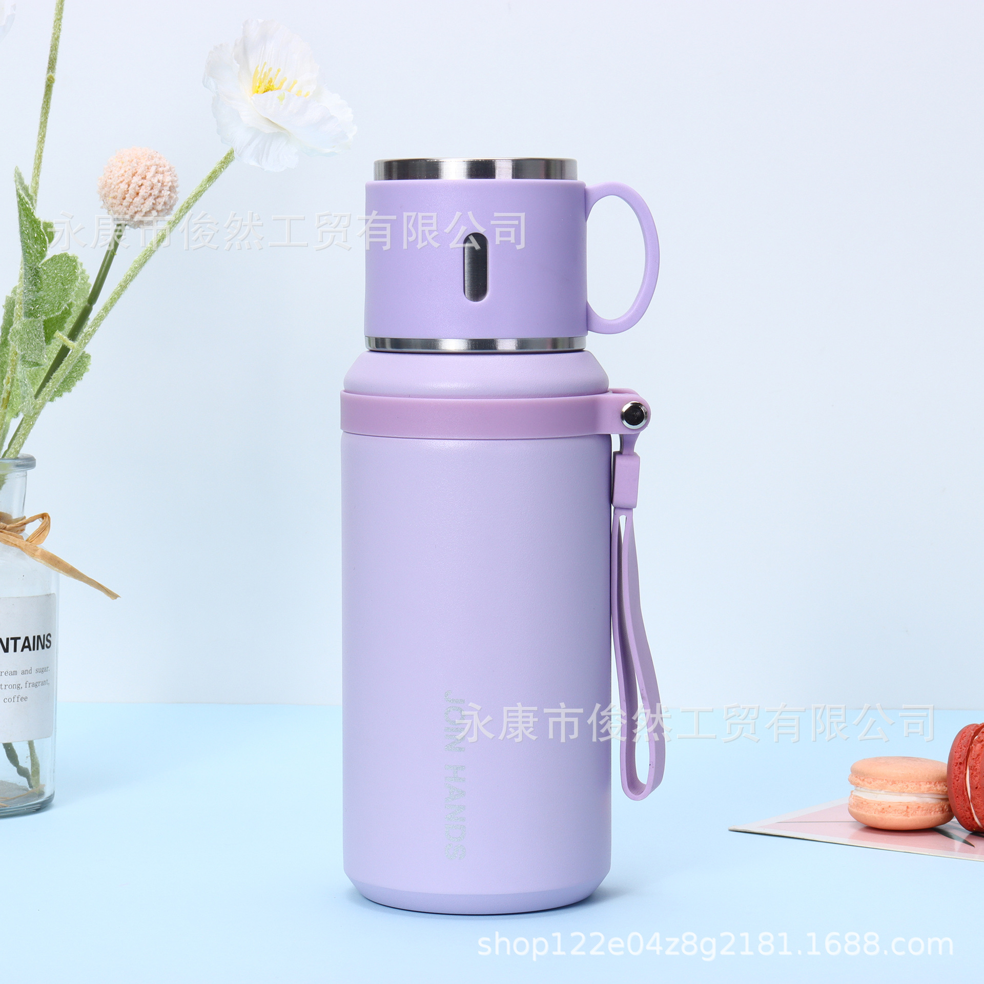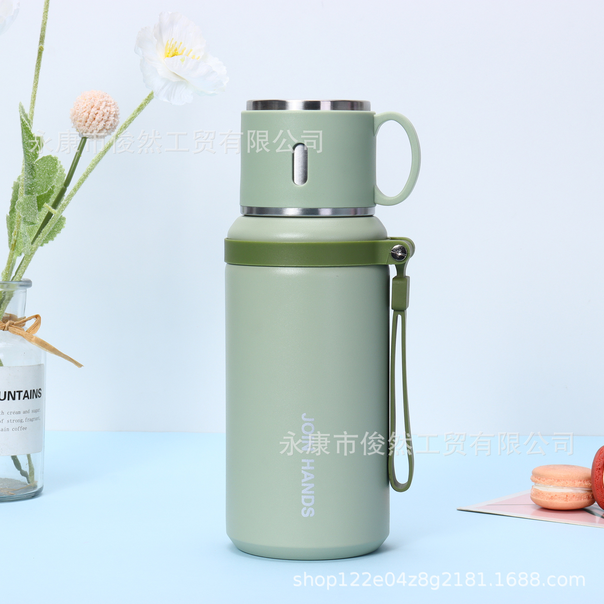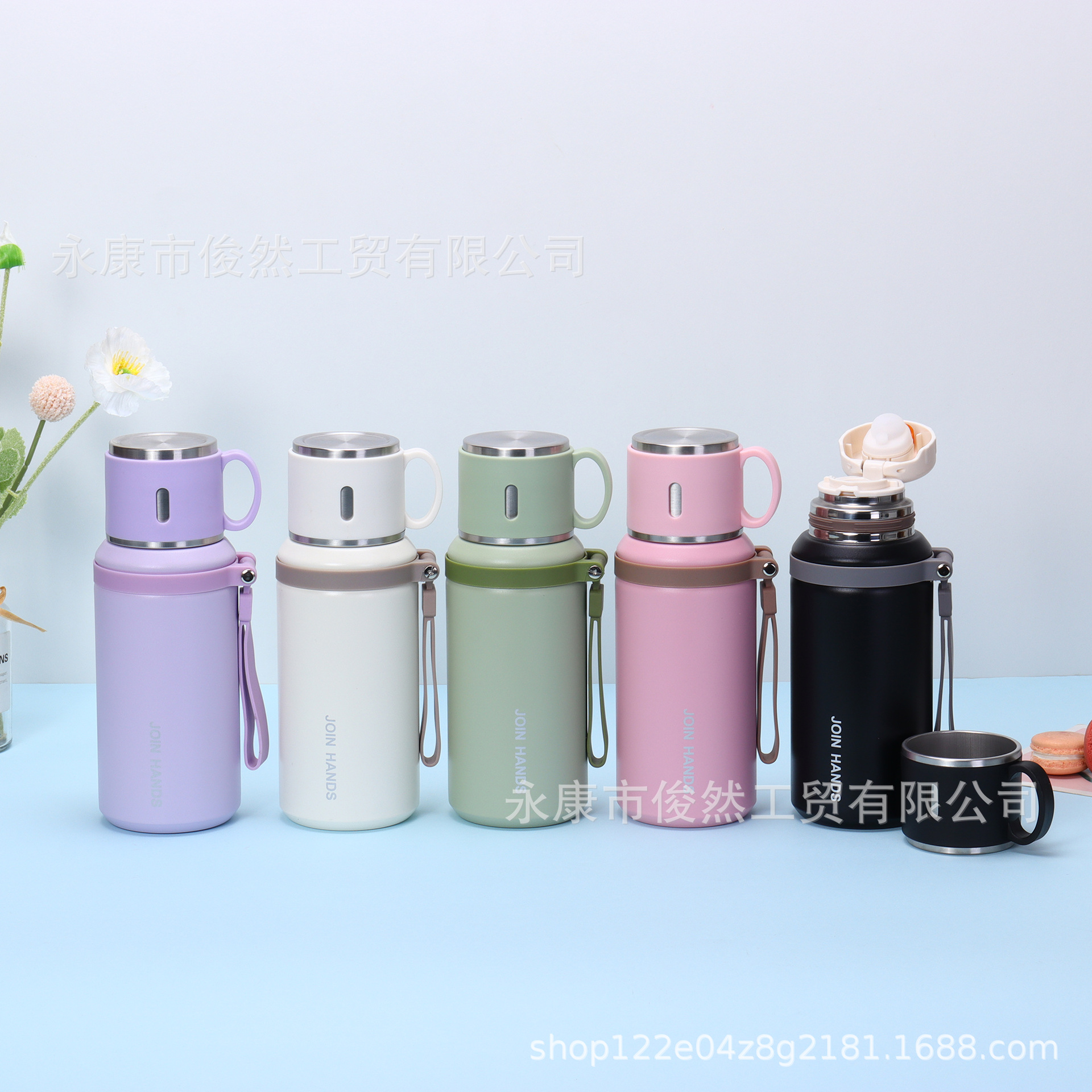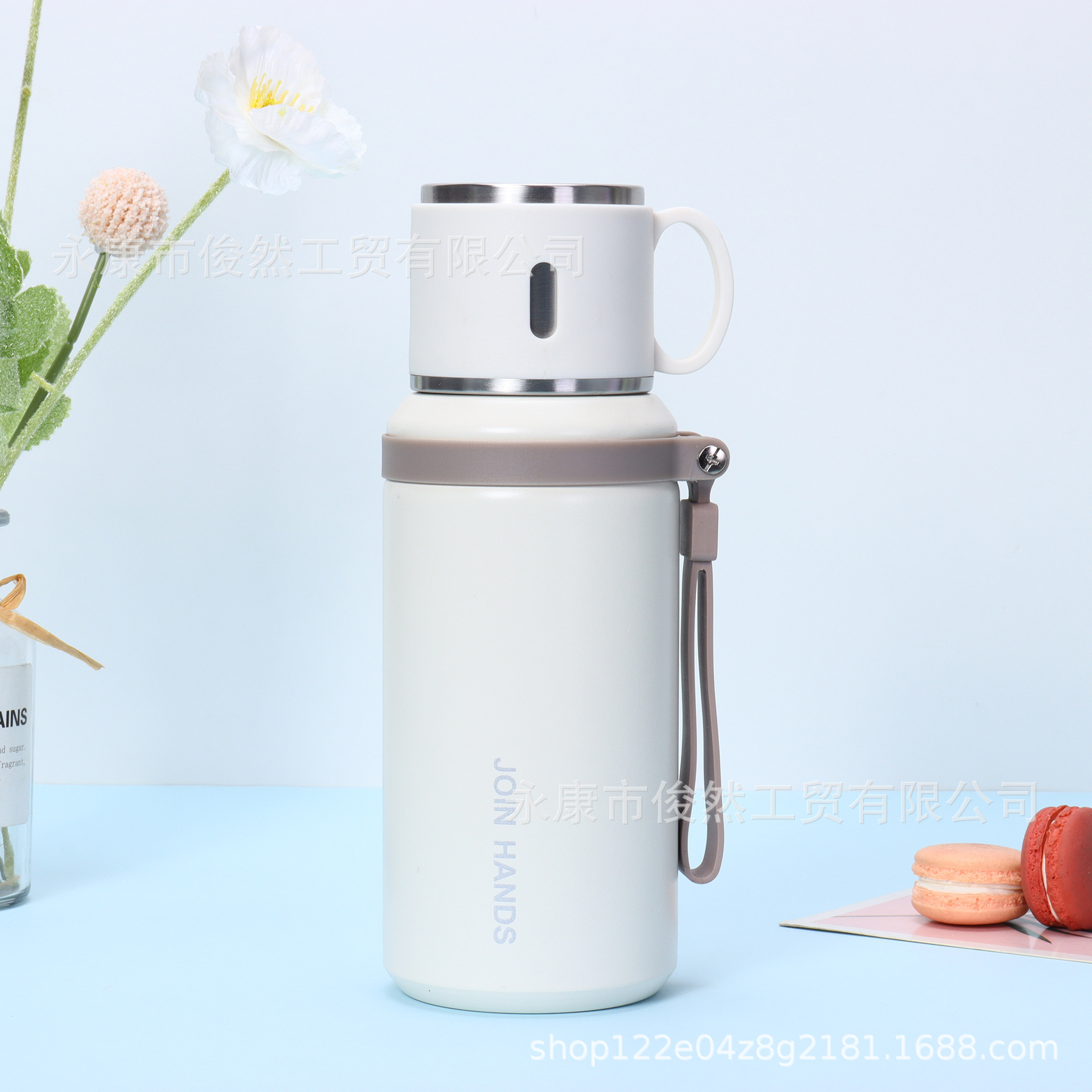 새로운 316 스테인레스 스틸 스포츠 주전자 야외 로프 자동차 물 컵 더블 뚜껑 대용량 보온병 컵 도매