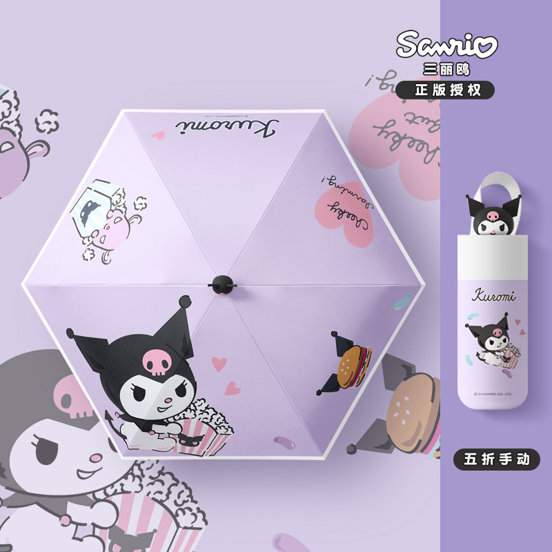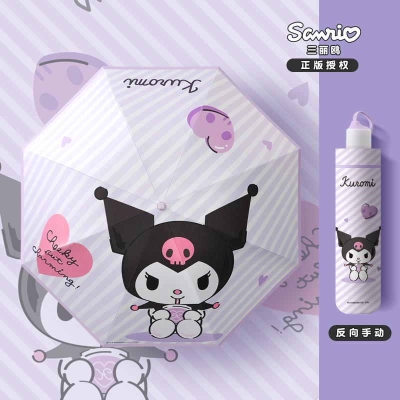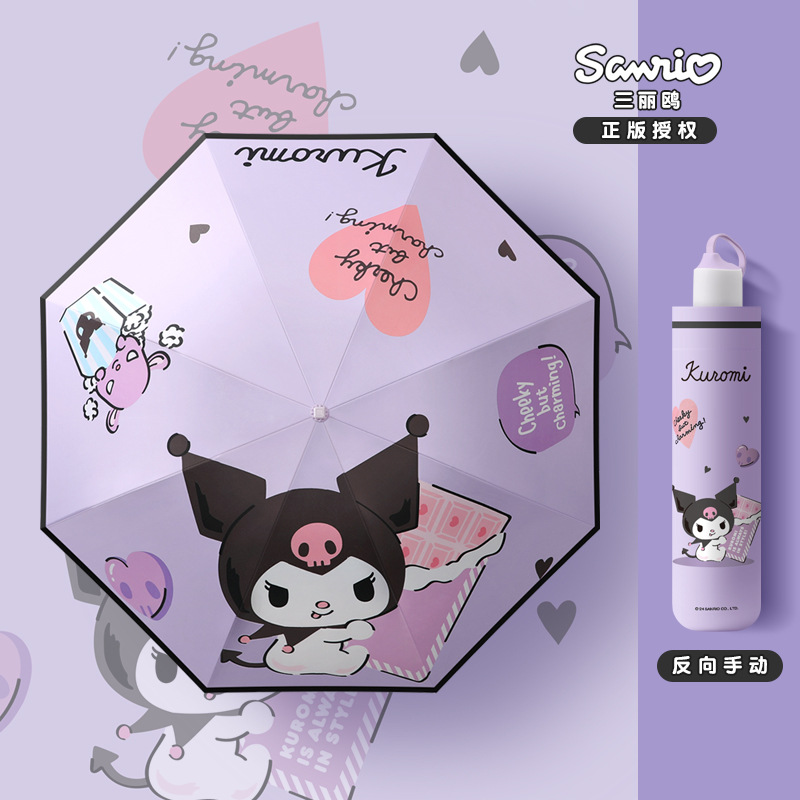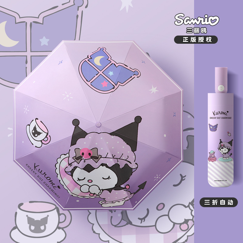 Sanrio Kurome 어린이 완전 자동 우산 접이식 태양 보호 태양 우산 여성 미니 맞춤형 태양 우산스토어 가기
