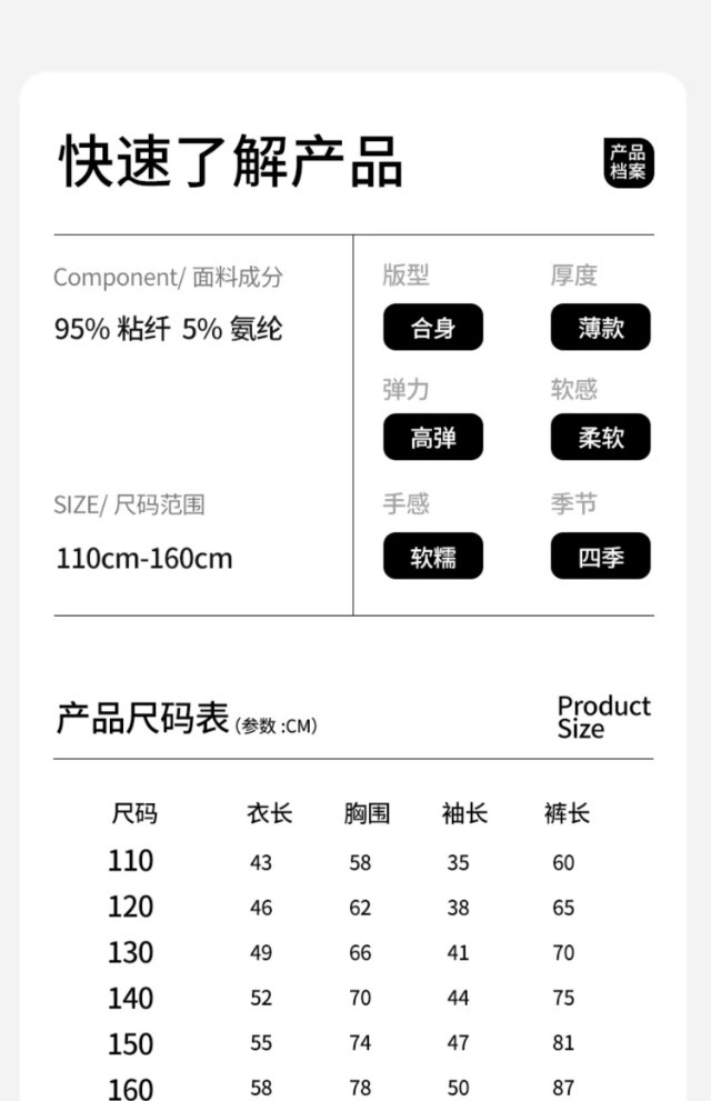 봄과 여름 큰 어린이 소년과 소녀 모달 속옷 세트 긴팔 단색 가정 의류 세트스토어 가기