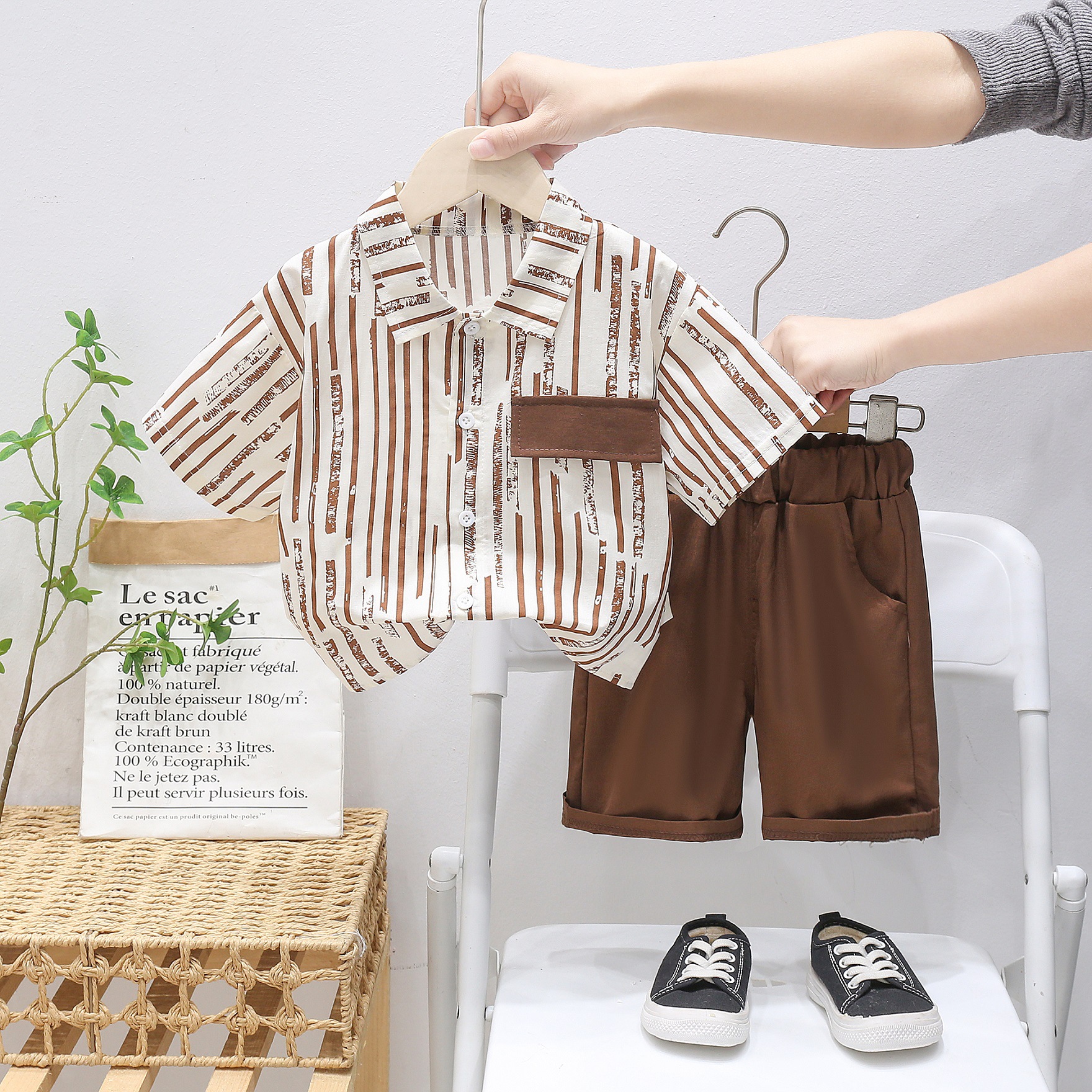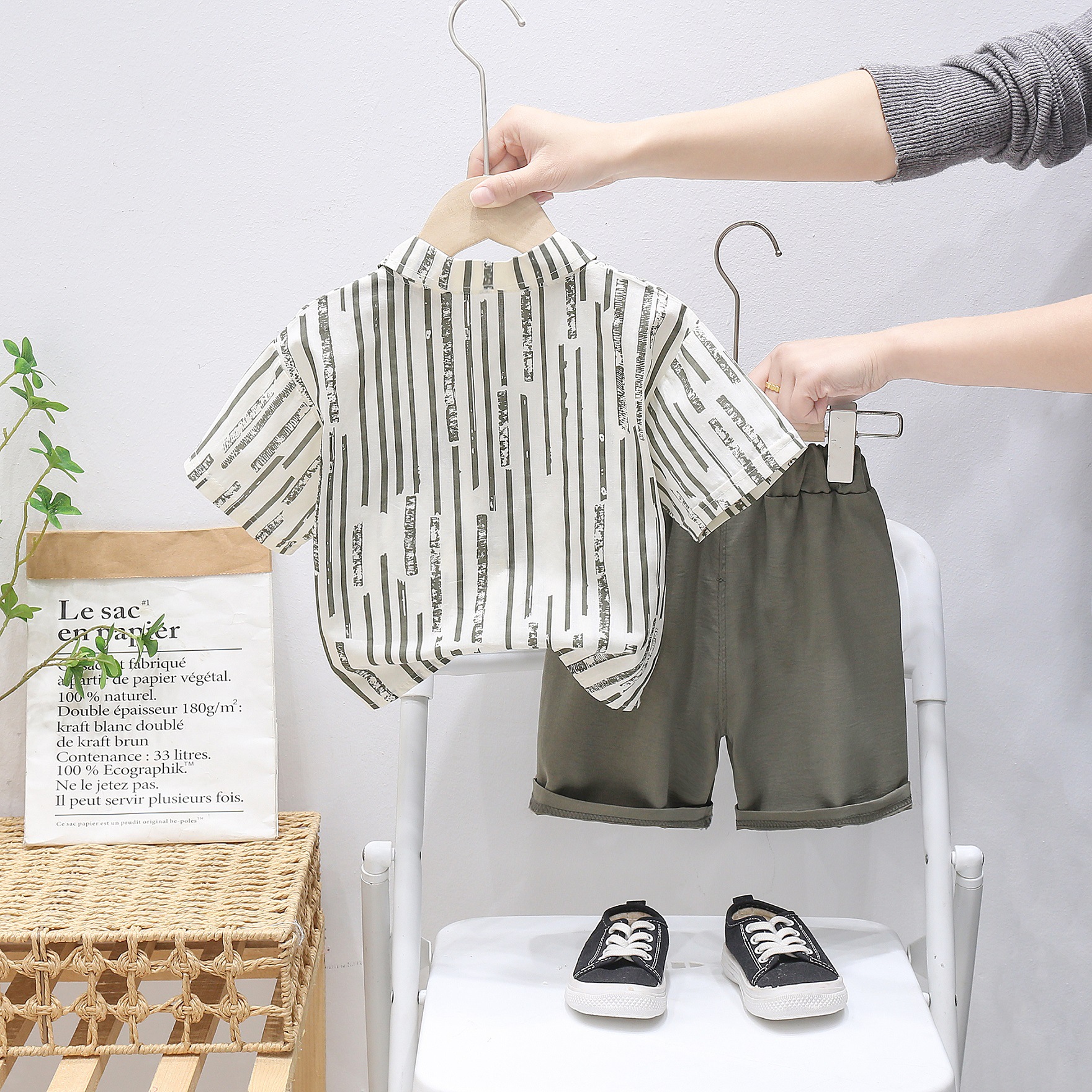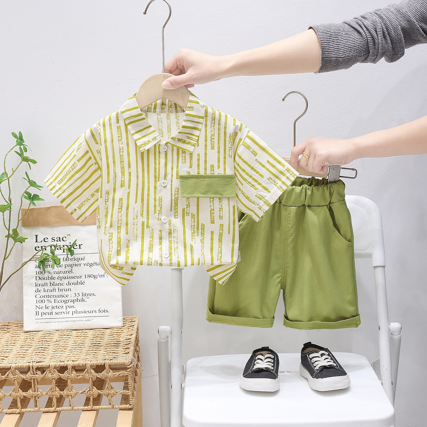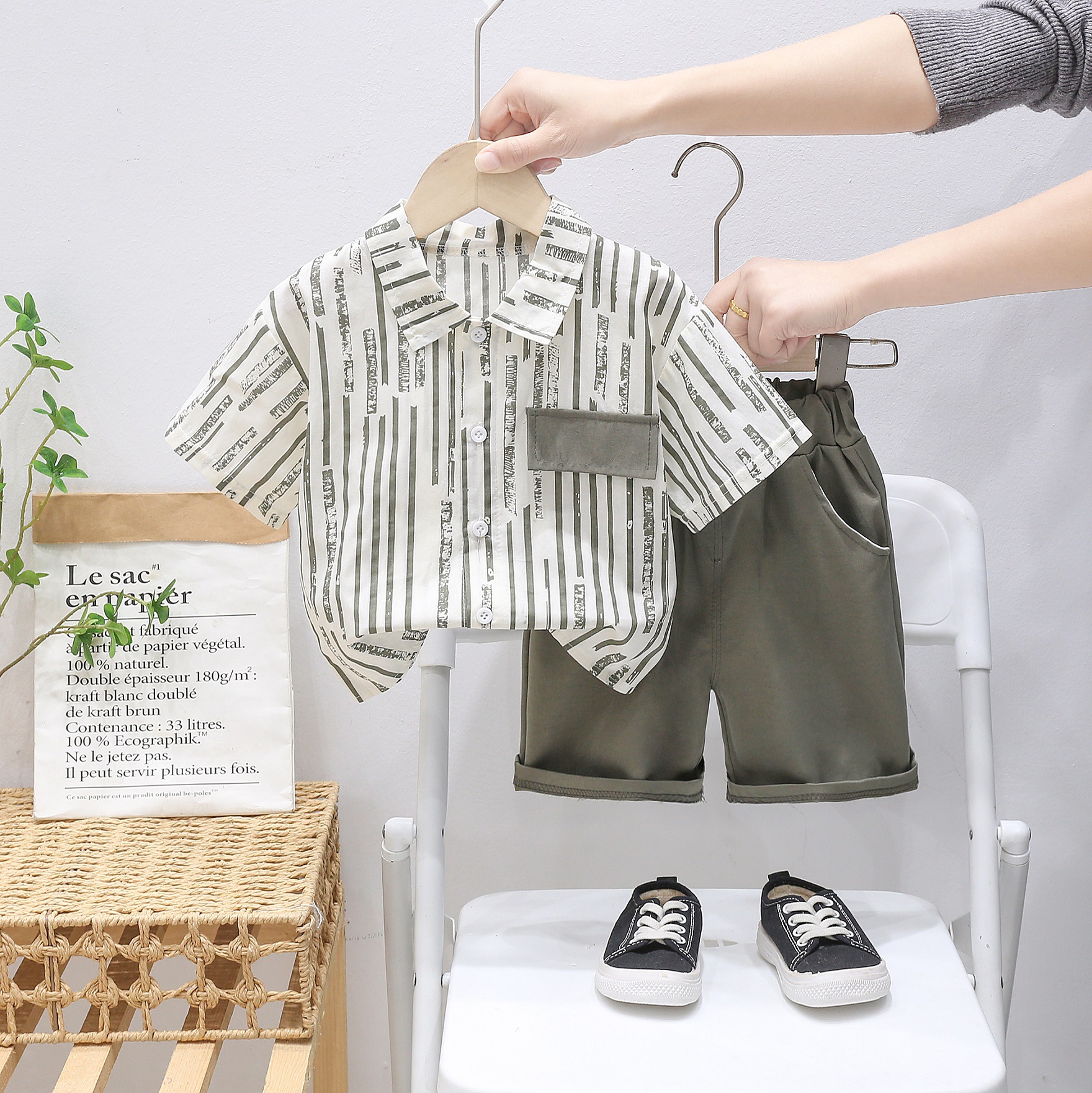 소년 여름 반팔 셔츠 투피스 세트 2025 새로운 유행 아기 여름 얇은 어린이 옷 유행스토어 가기
