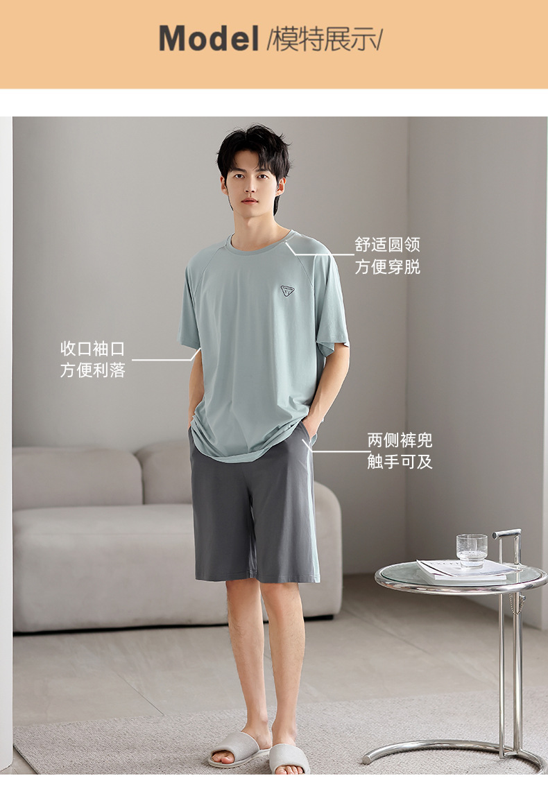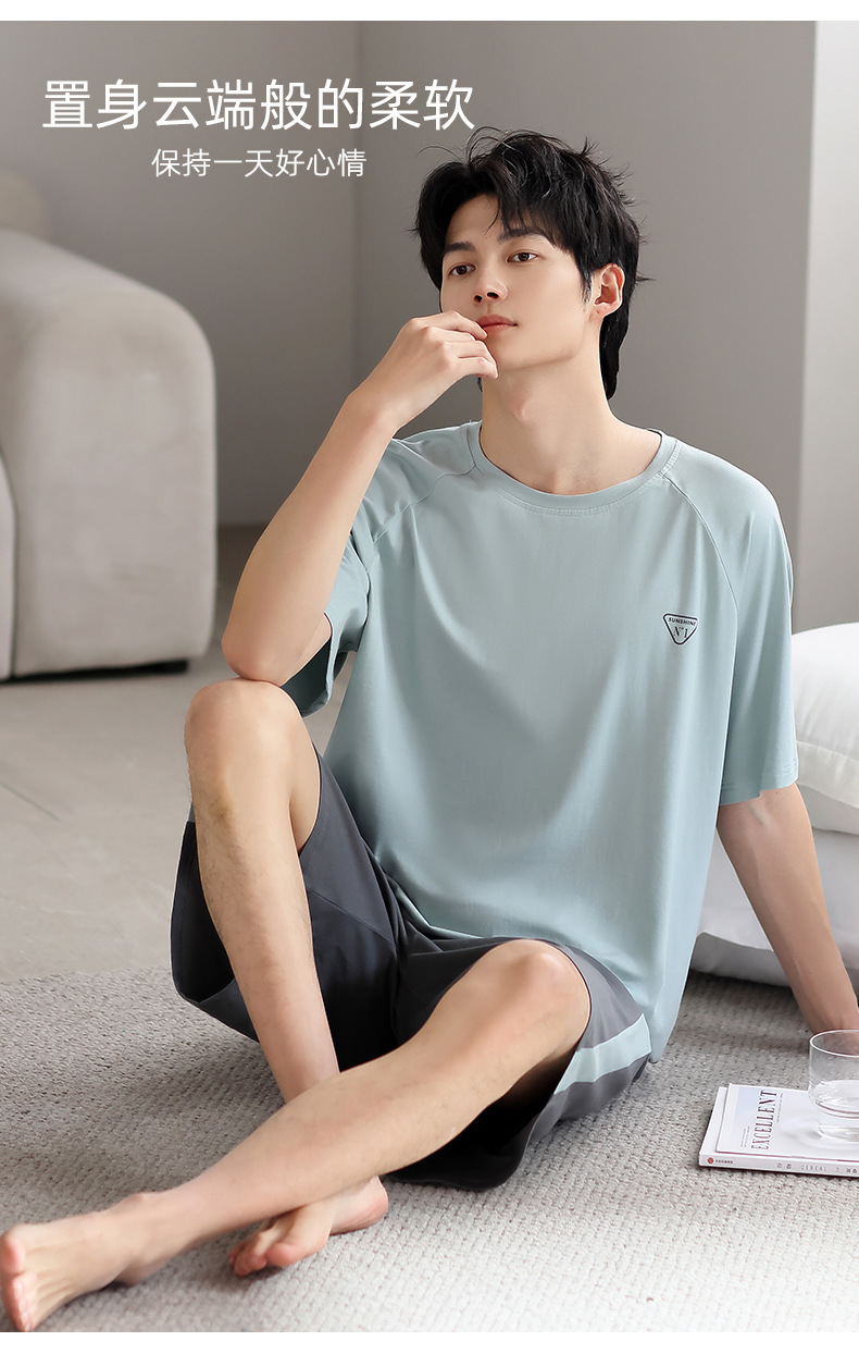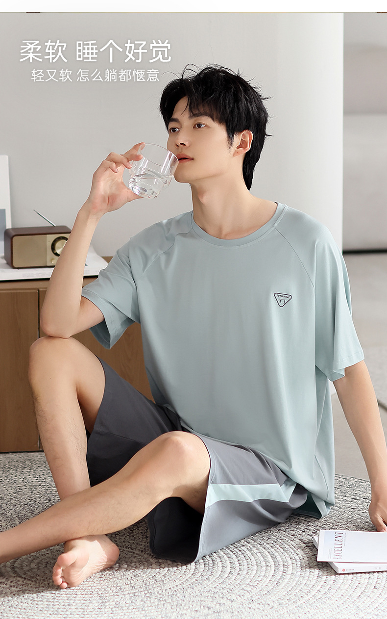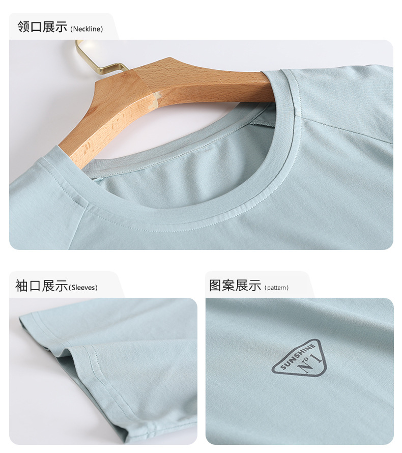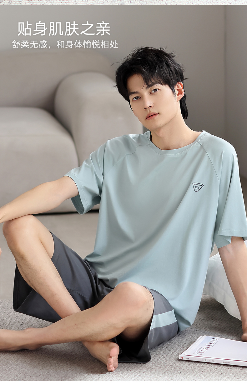 모달 파자마 남자 여름 반팔 바지 3 피스 세트 2025 새로운 라운드 넥 아우터 홈 의류 세트스토어 가기