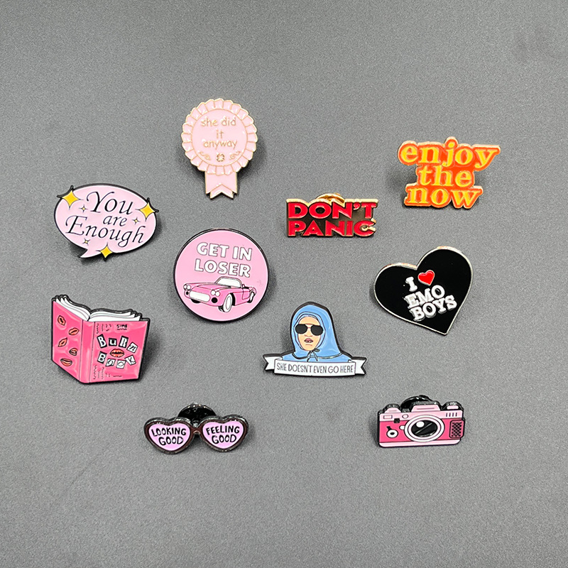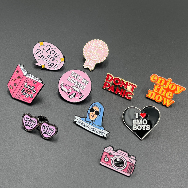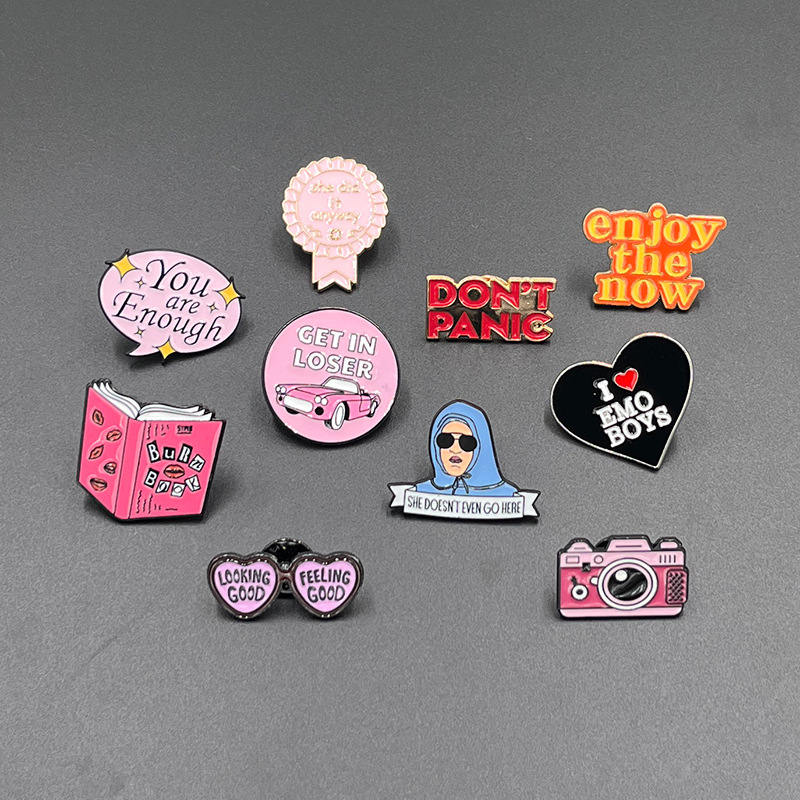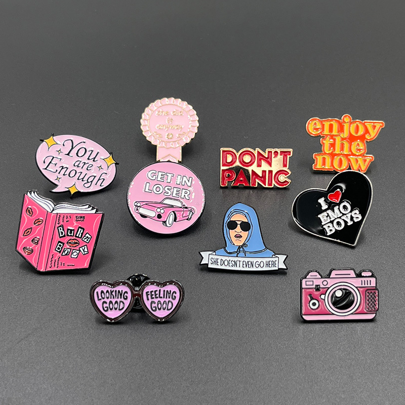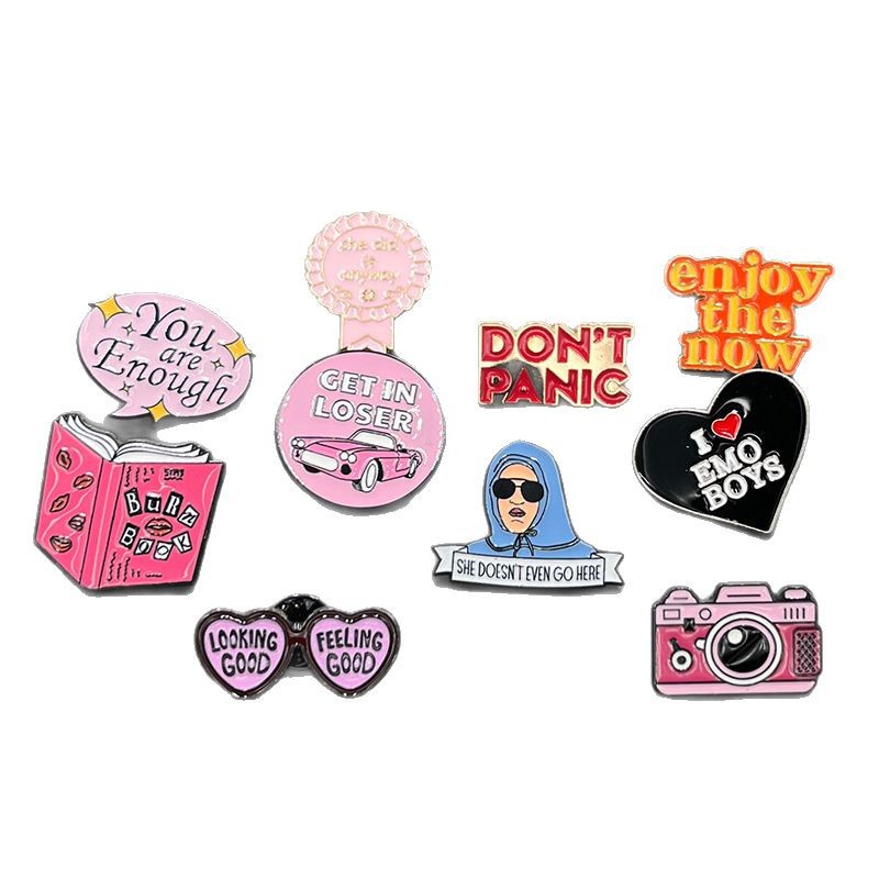 유럽과 미국의 창조적 인 만화 핑크 시리즈 카메라 브로치 영어 편지 배지 의류 금속 배지 작은 선물