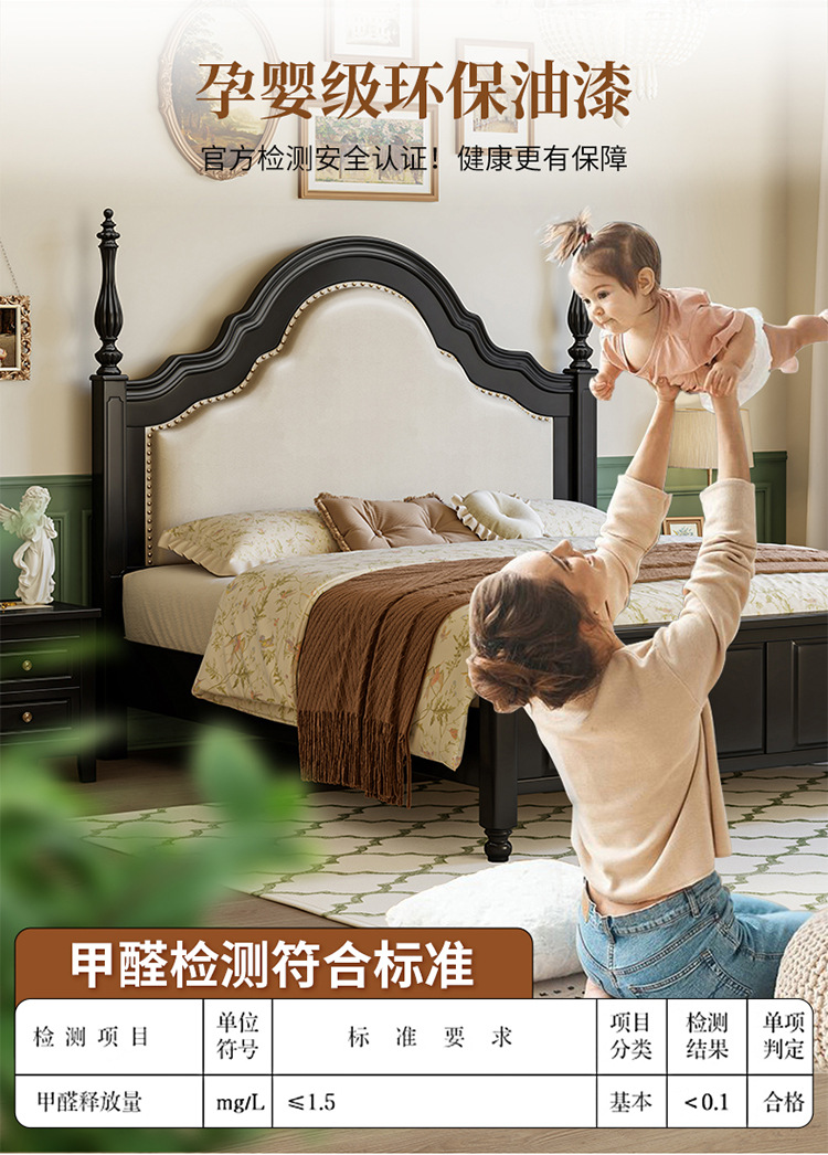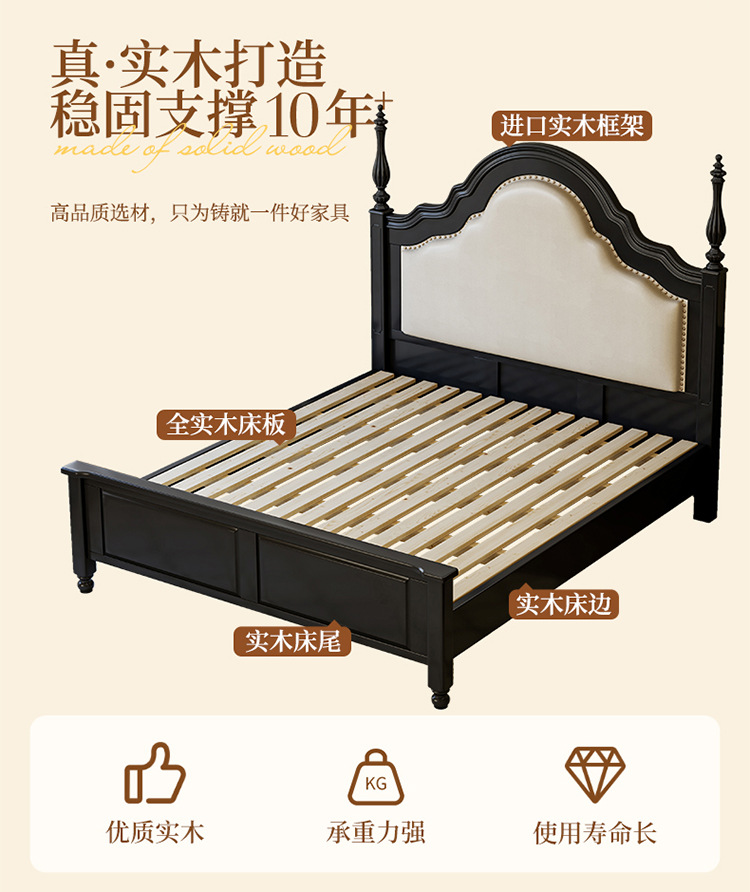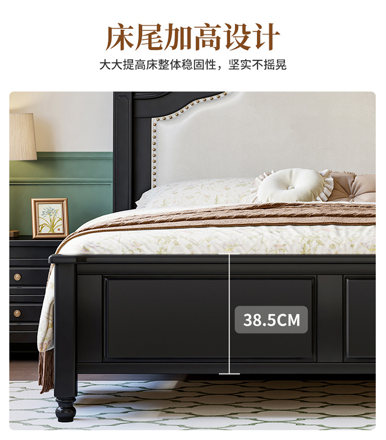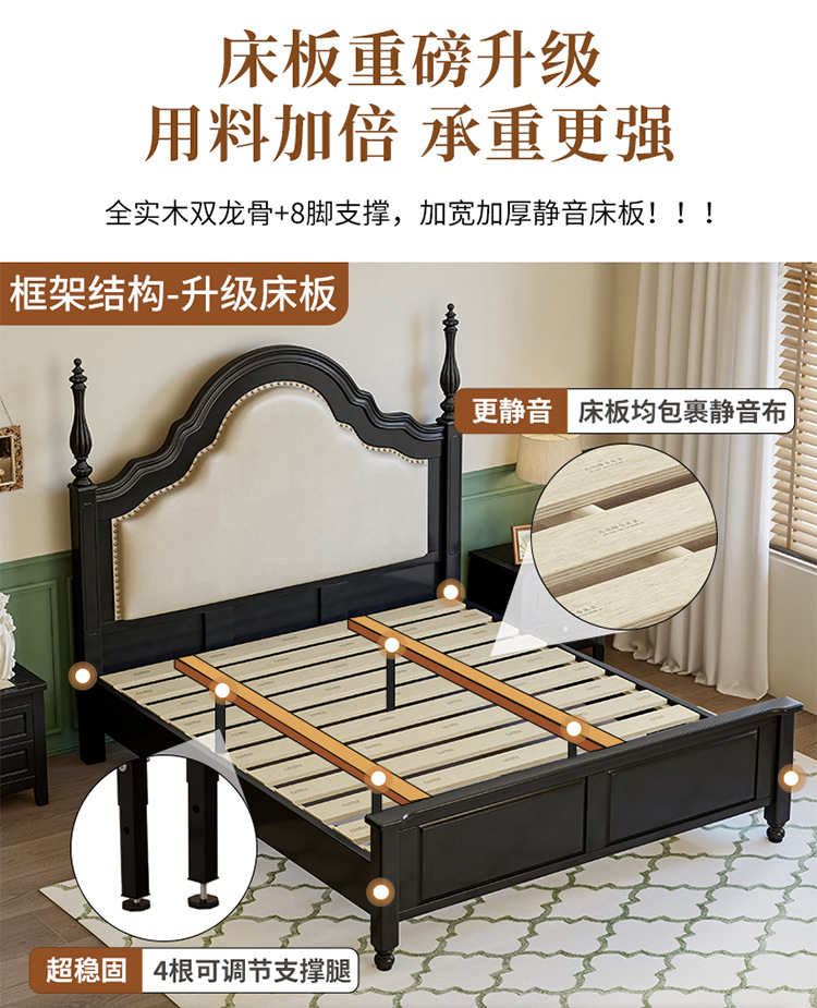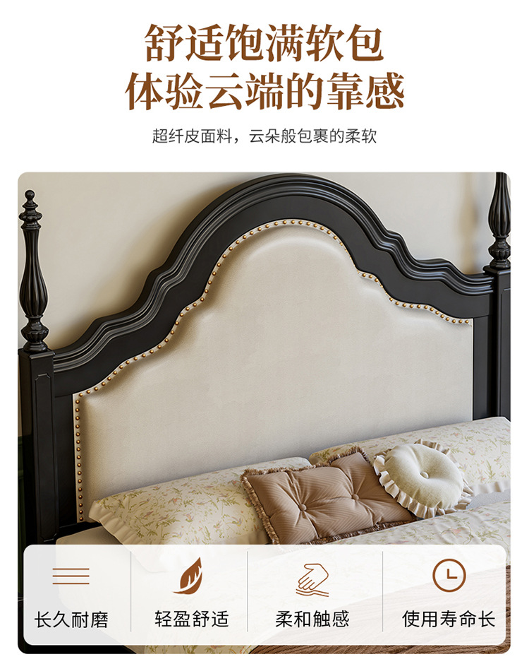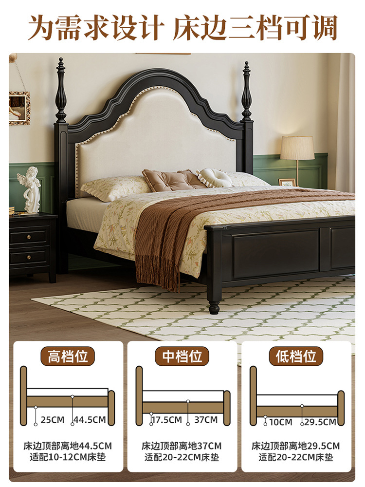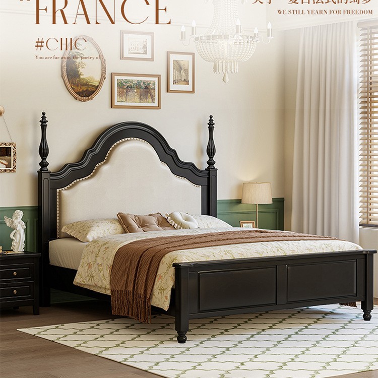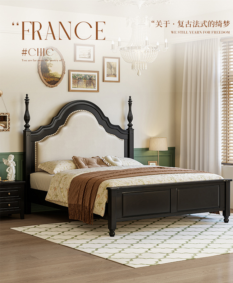 프랑스 복고풍 단단한 나무 침대 블랙 중간 스타일 침대 1.5M1.8M 더블 침대 소프트 가방 현대 간단한 마스터 침실 웨딩 침대