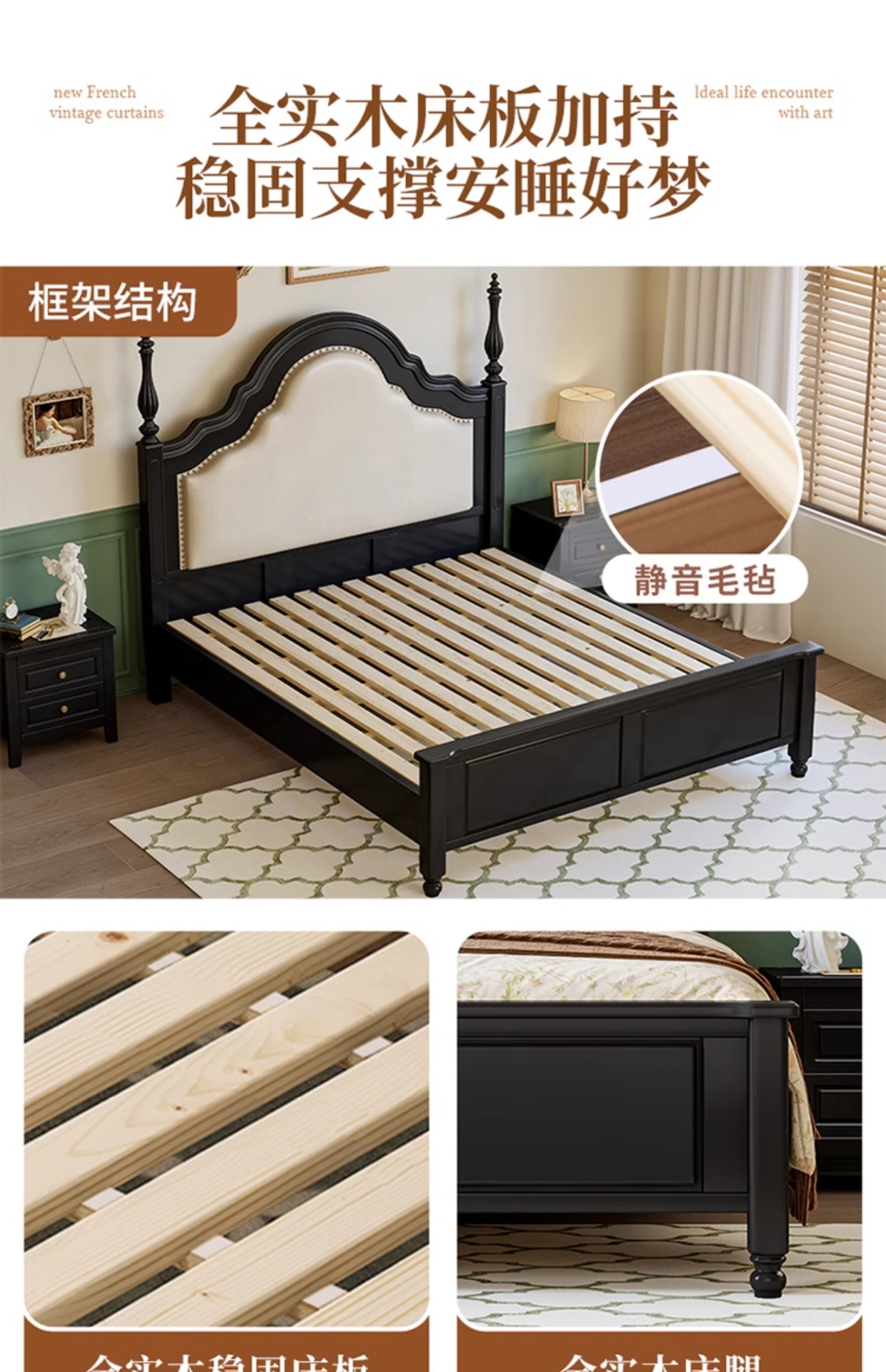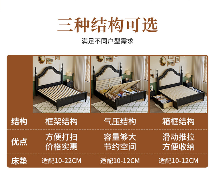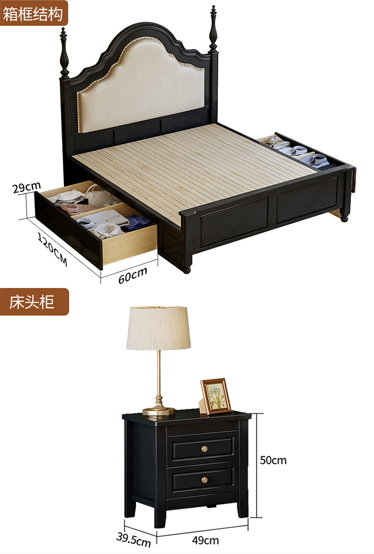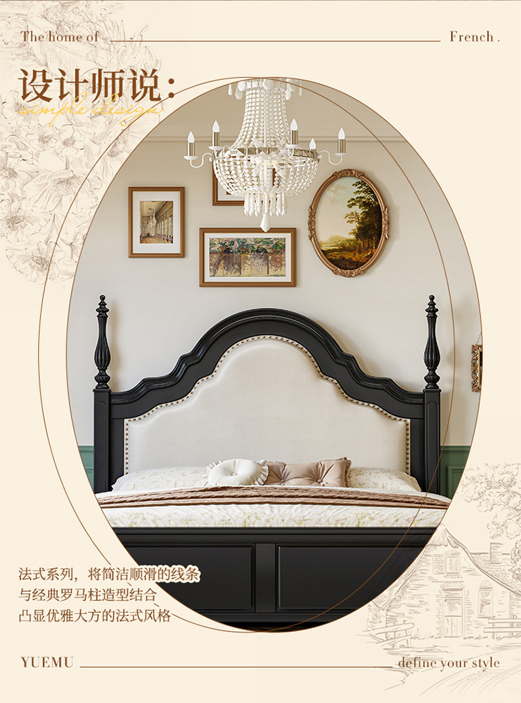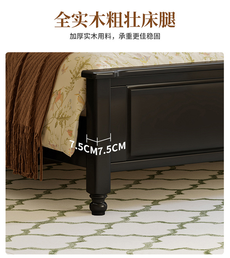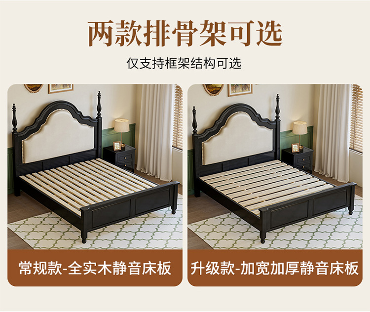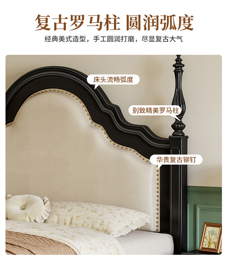 프랑스 복고풍 단단한 나무 침대 블랙 중간 스타일 침대 1.5M1.8M 더블 침대 소프트 가방 현대 간단한 마스터 침실 웨딩 침대
