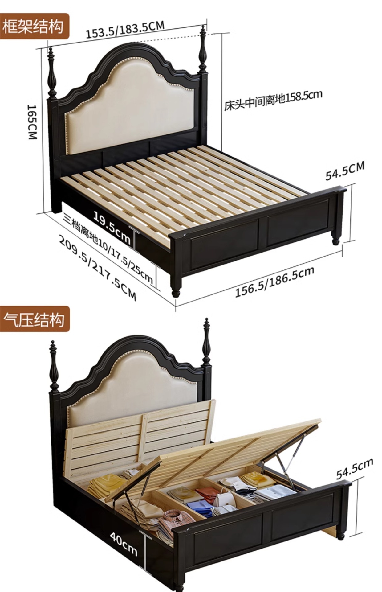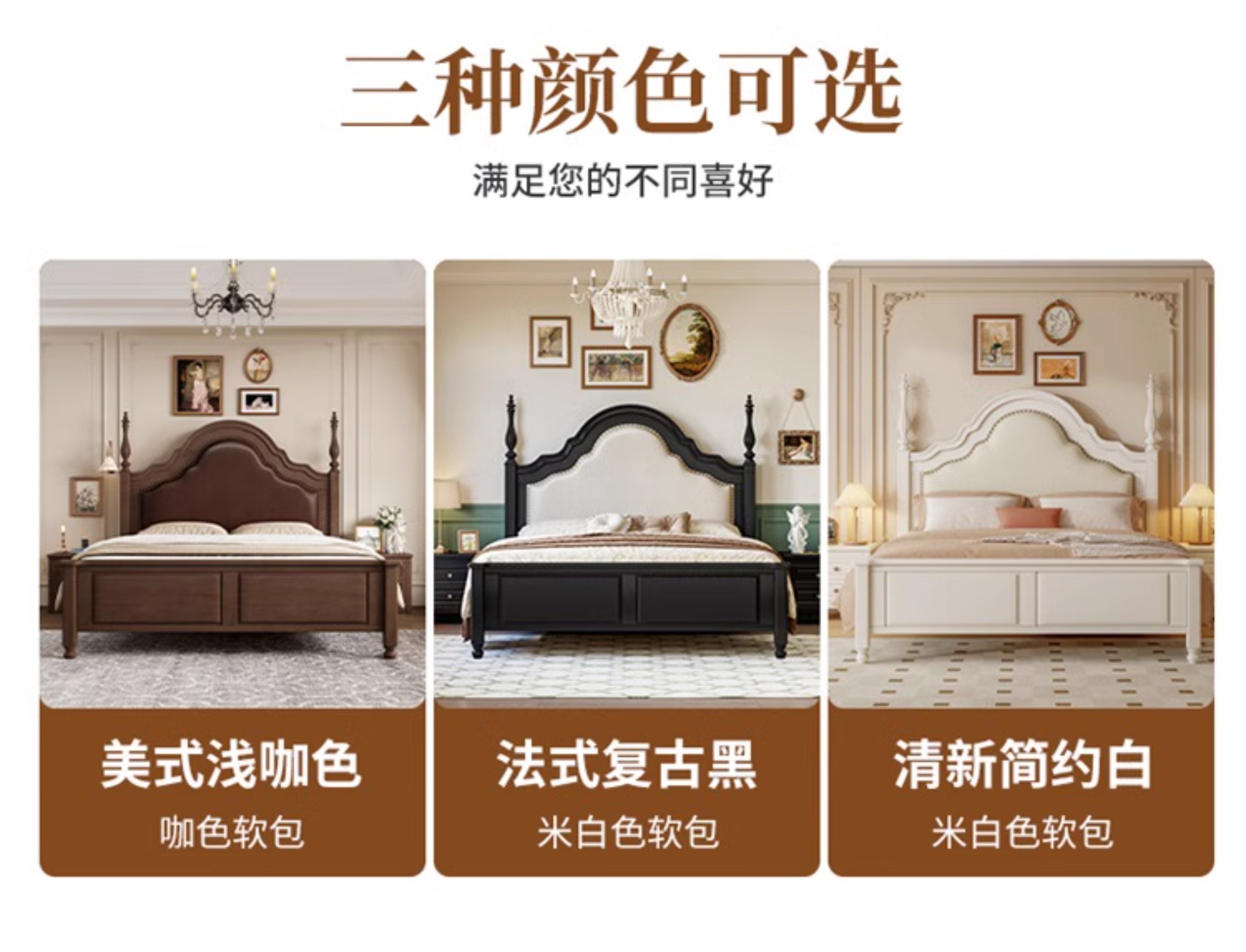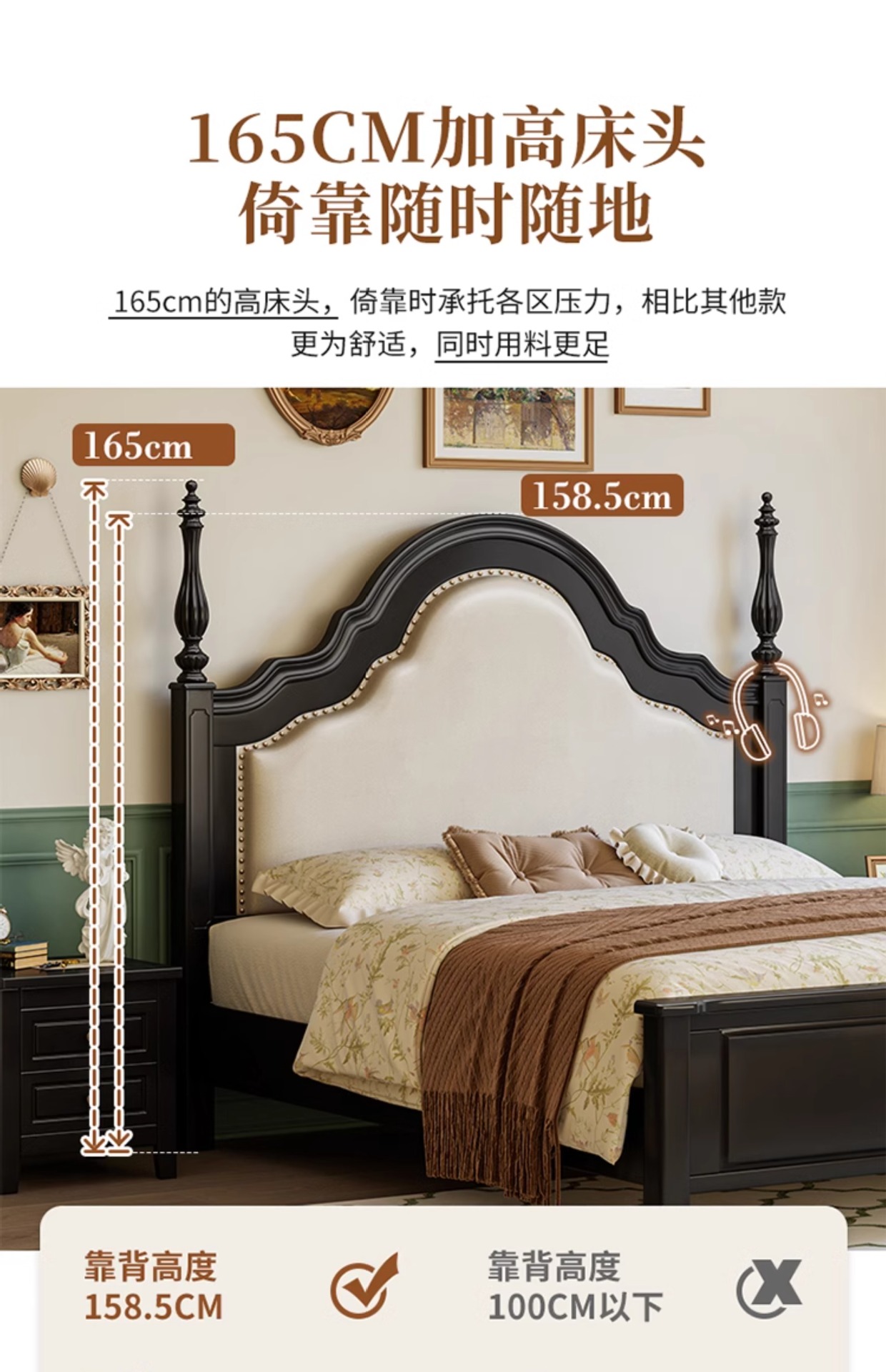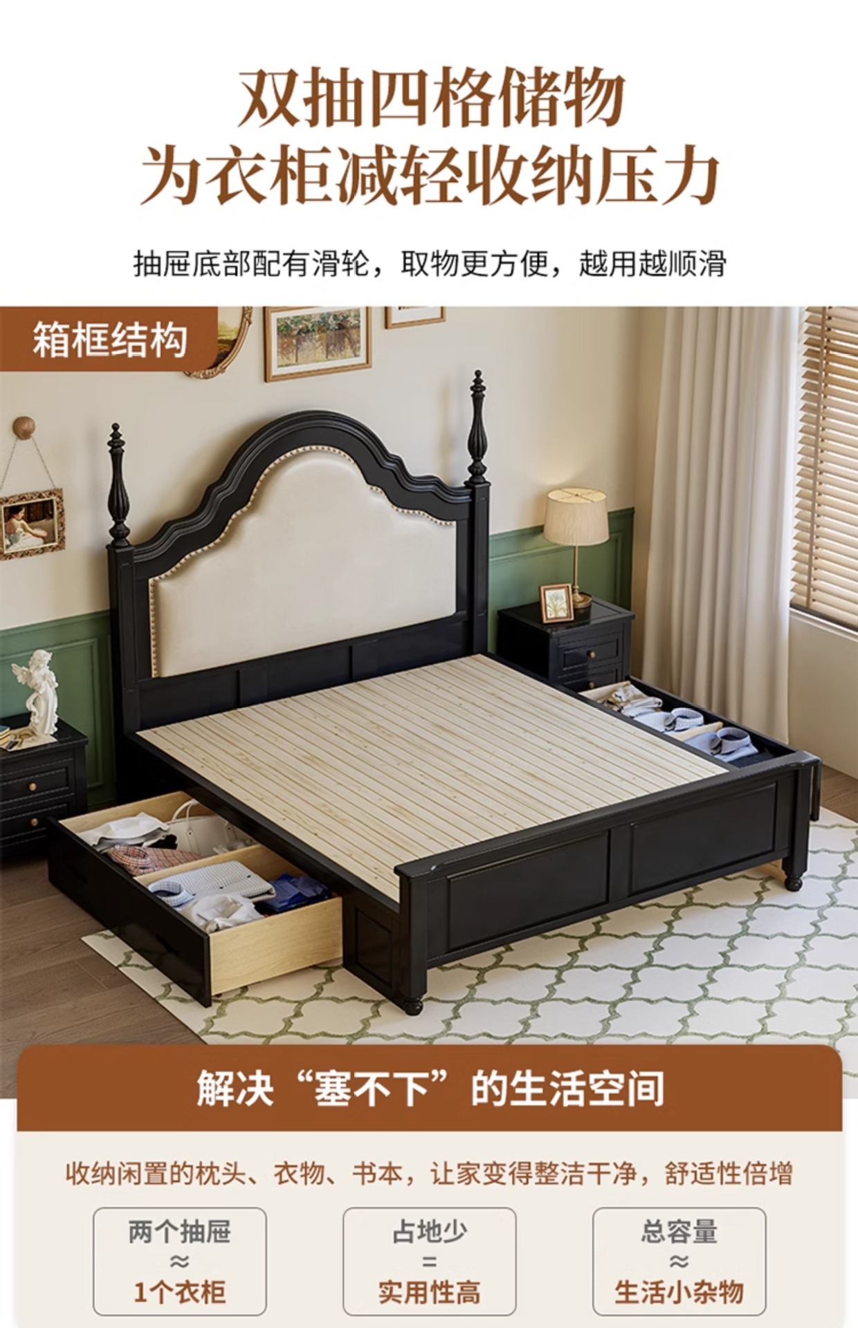프랑스 복고풍 단단한 나무 침대 블랙 중간 스타일 침대 1.5M1.8M 더블 침대 소프트 가방 현대 간단한 마스터 침실 웨딩 침대