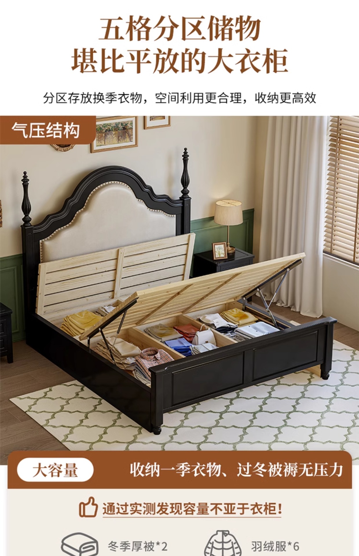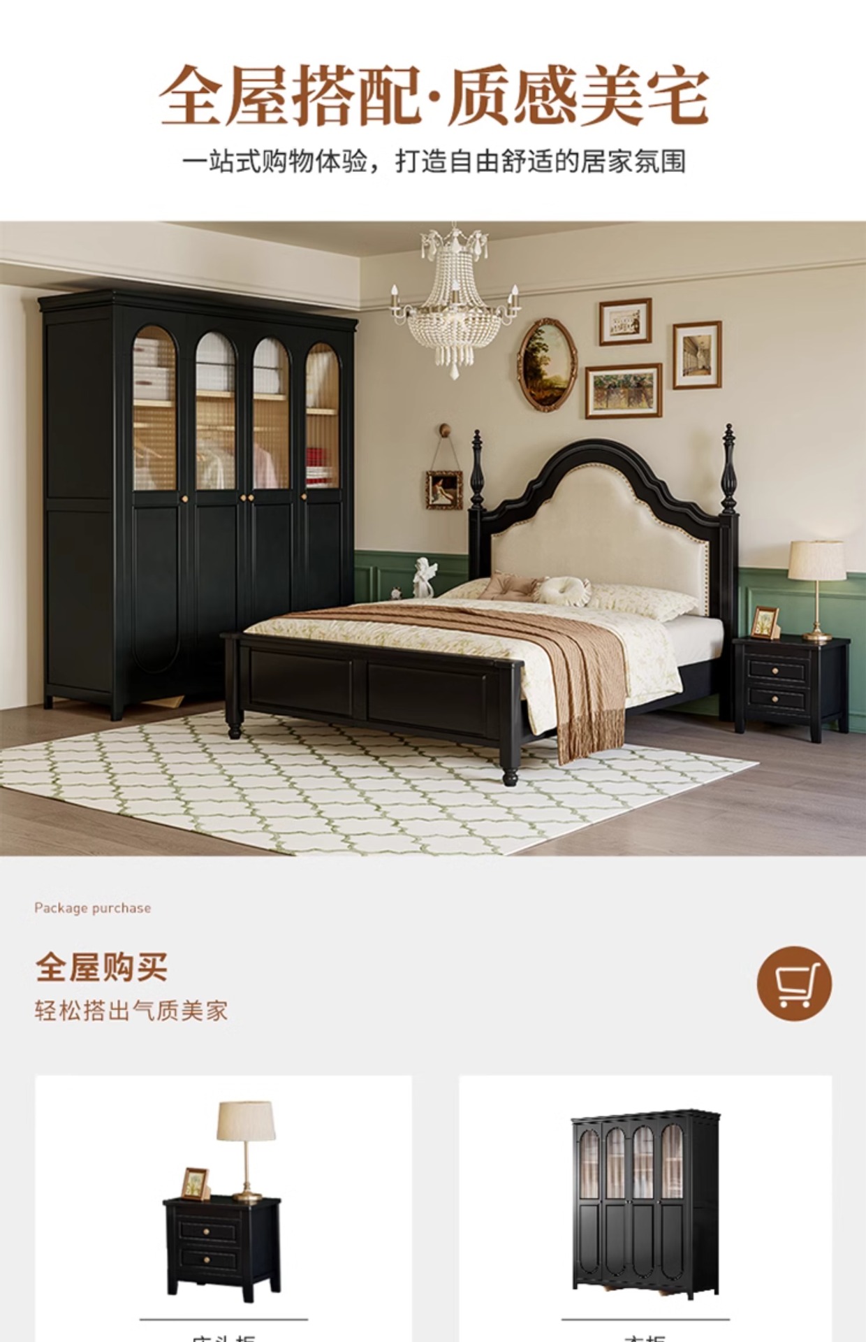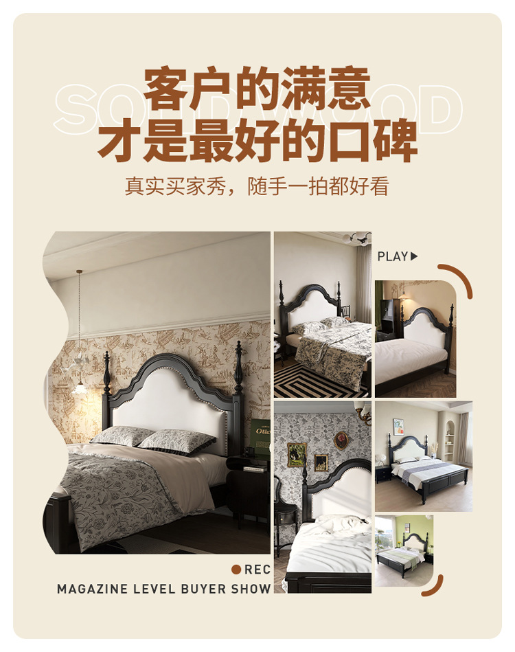 프랑스 복고풍 단단한 나무 침대 블랙 중간 스타일 침대 1.5M1.8M 더블 침대 소프트 가방 현대 간단한 마스터 침실 웨딩 침대스토어 가기