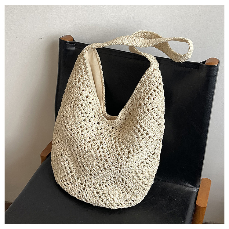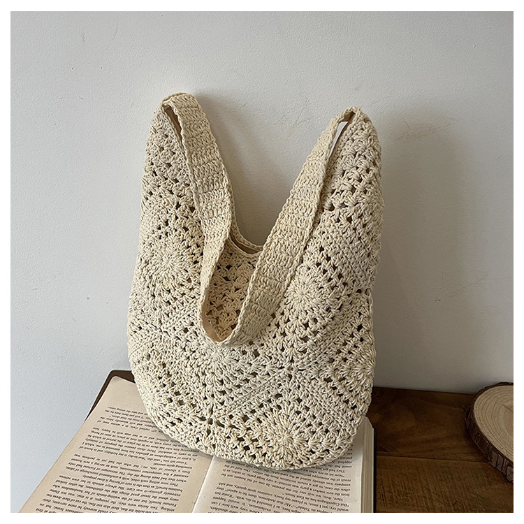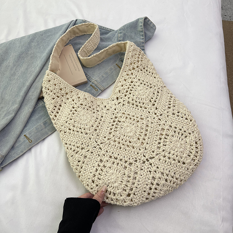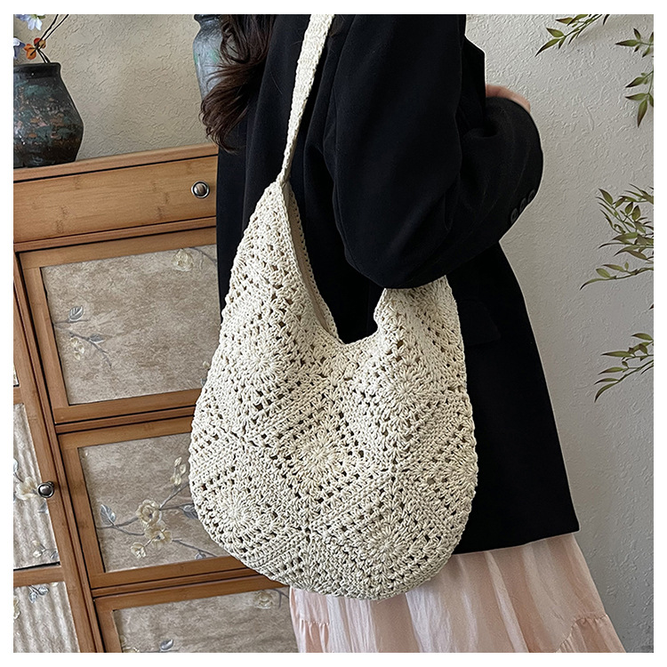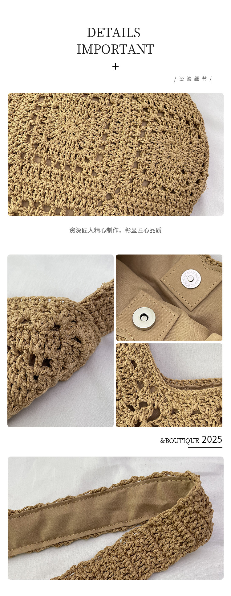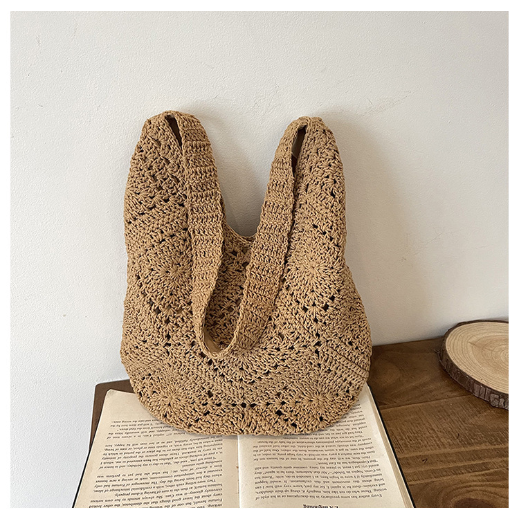 속이 빈 휴가 어깨 가방 빈티지 밀짚 가방 여성 2025 년 여름 새로운 모리 스타일 짠 어깨 가방