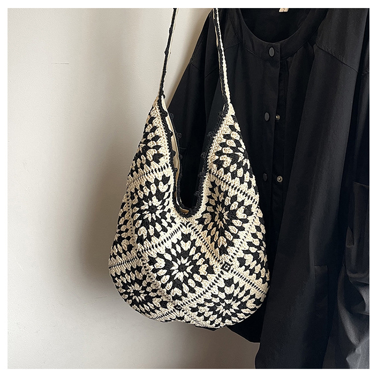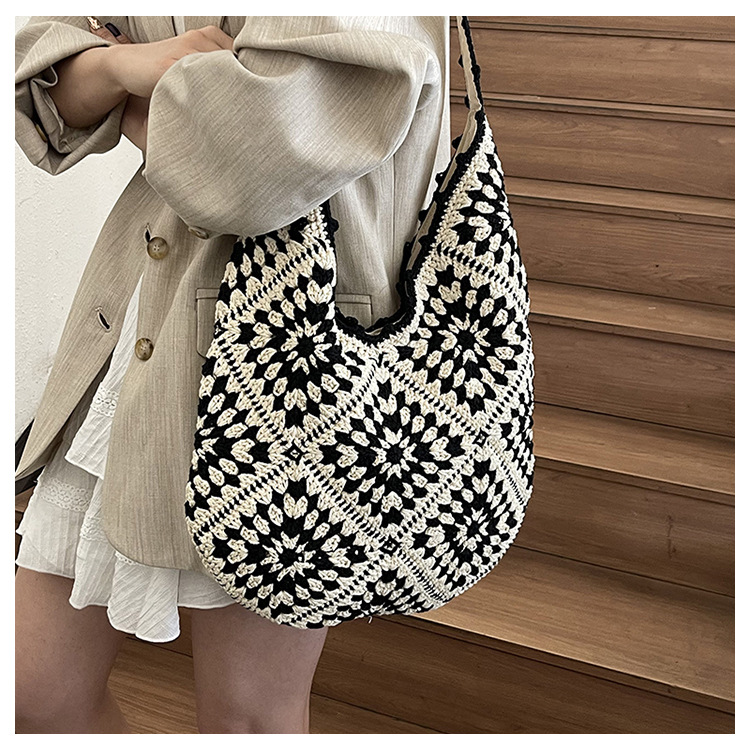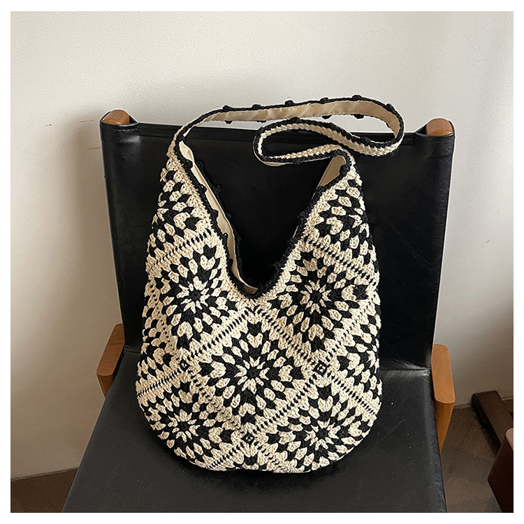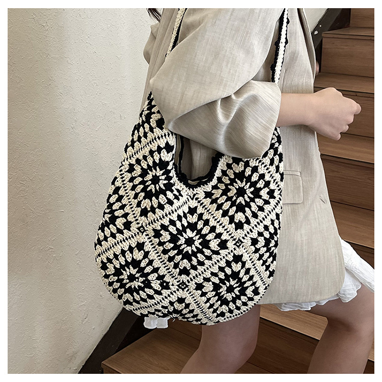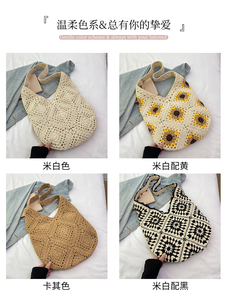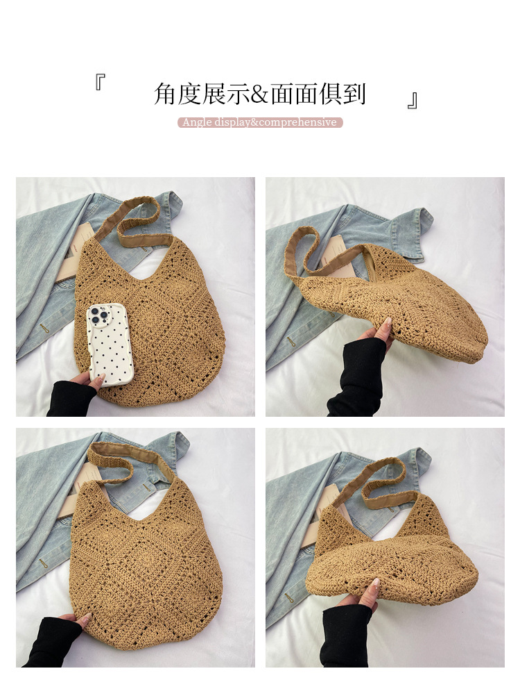 속이 빈 휴가 어깨 가방 빈티지 밀짚 가방 여성 2025 년 여름 새로운 모리 스타일 짠 어깨 가방