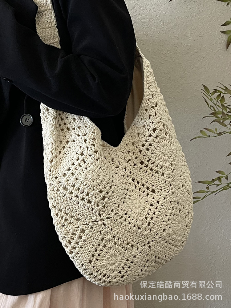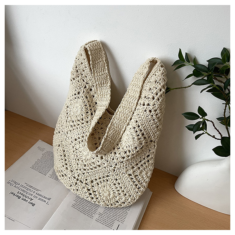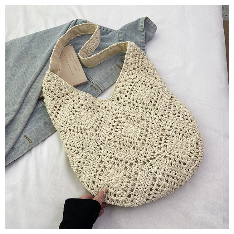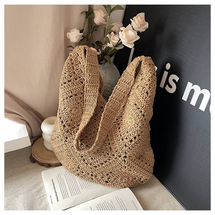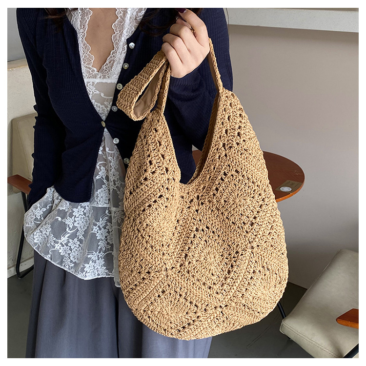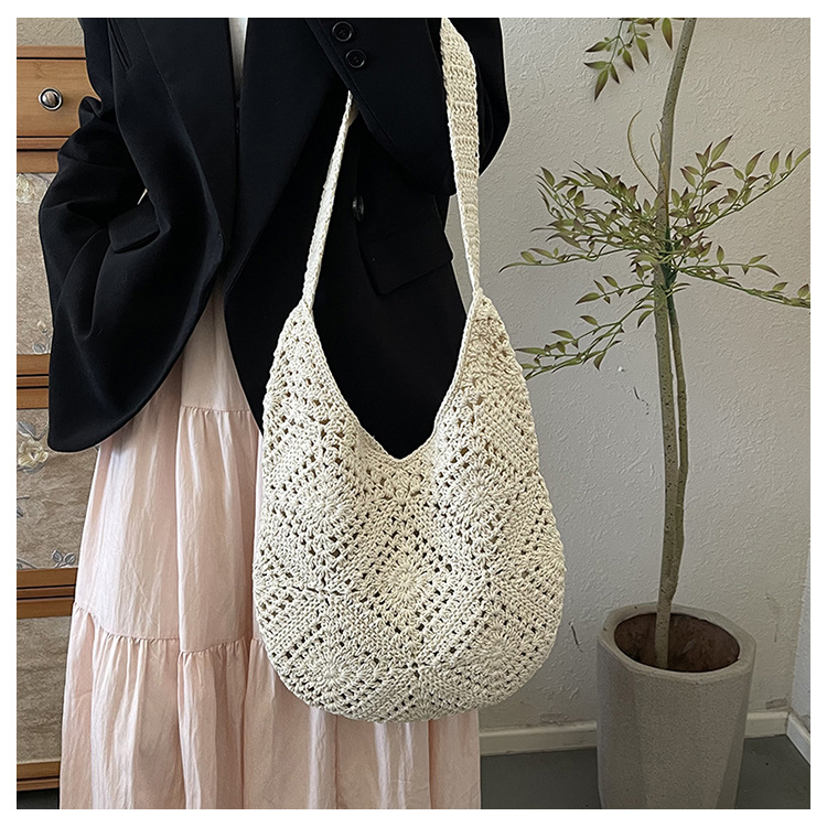 속이 빈 휴가 어깨 가방 빈티지 밀짚 가방 여성 2025 년 여름 새로운 모리 스타일 짠 어깨 가방스토어 가기