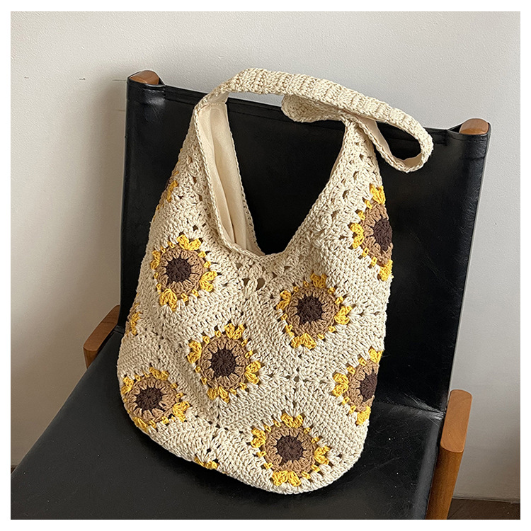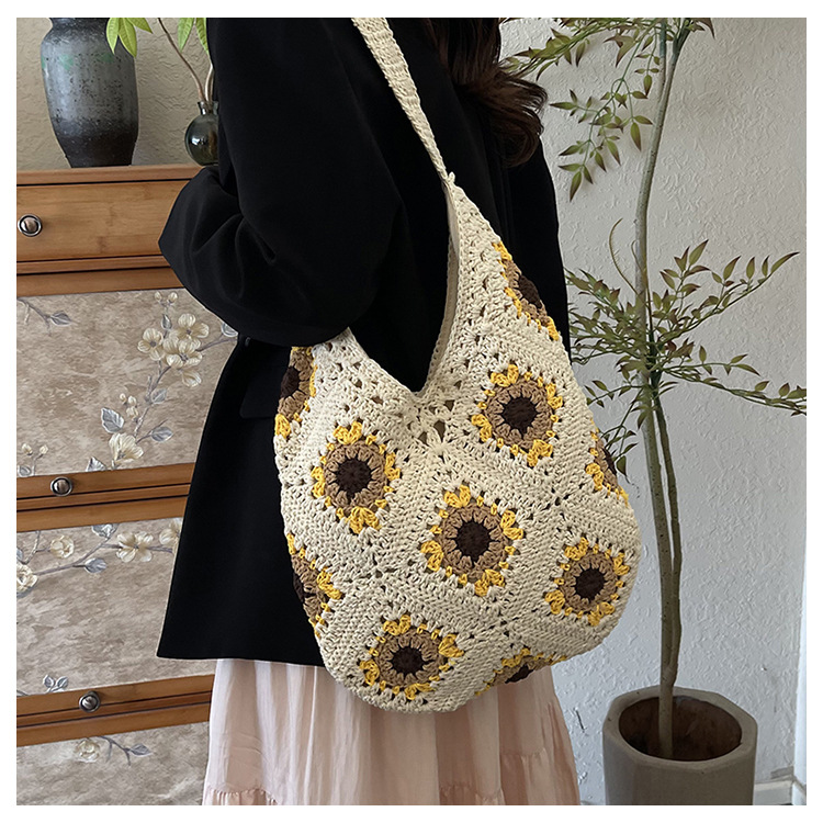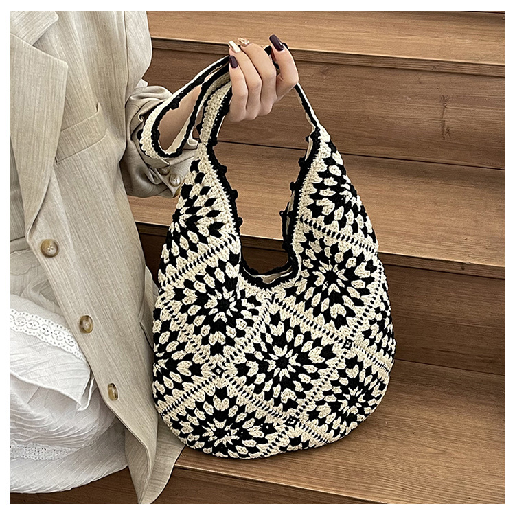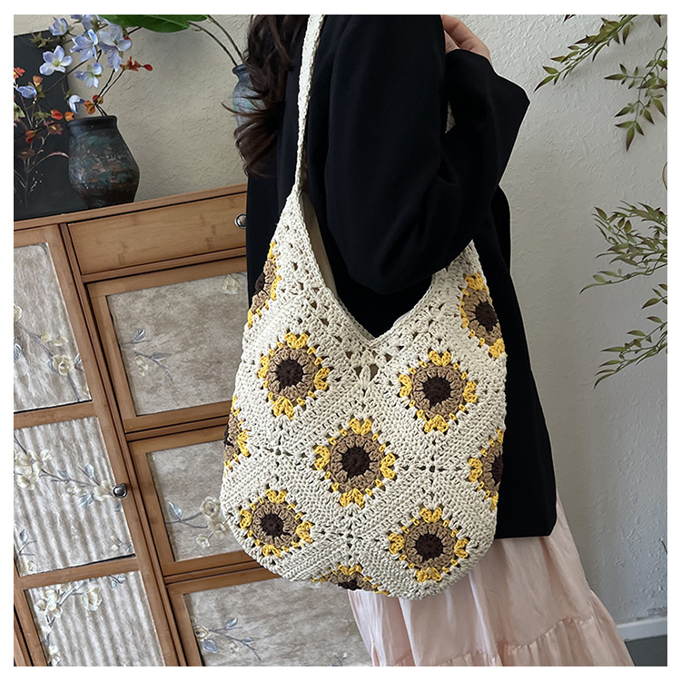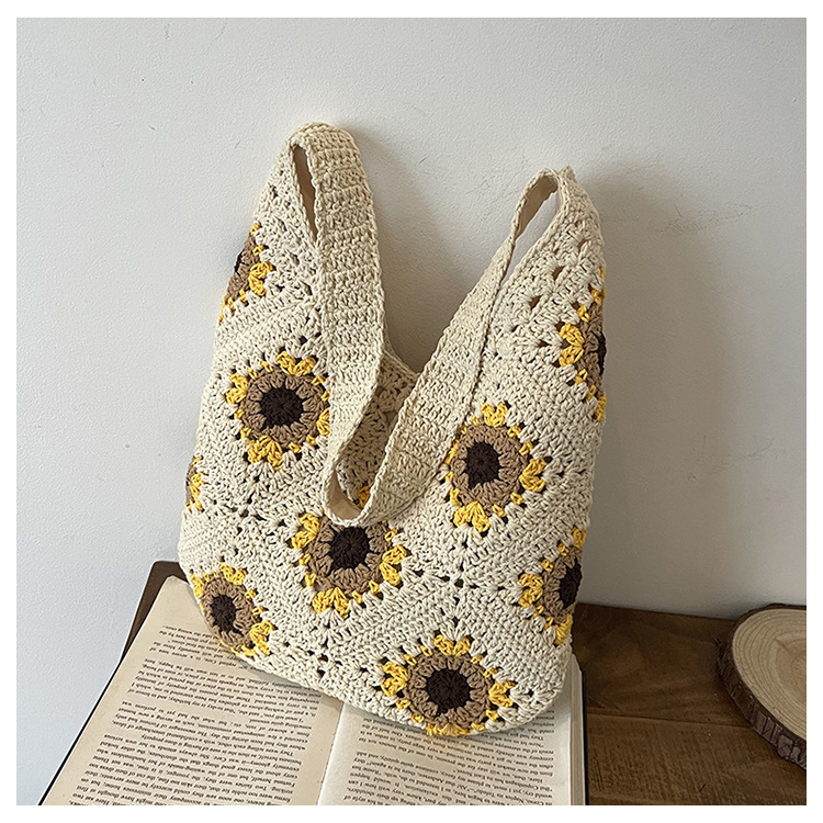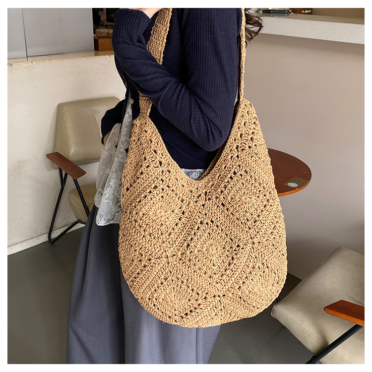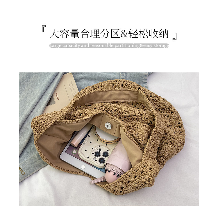 속이 빈 휴가 어깨 가방 빈티지 밀짚 가방 여성 2025 년 여름 새로운 모리 스타일 짠 어깨 가방스토어 가기