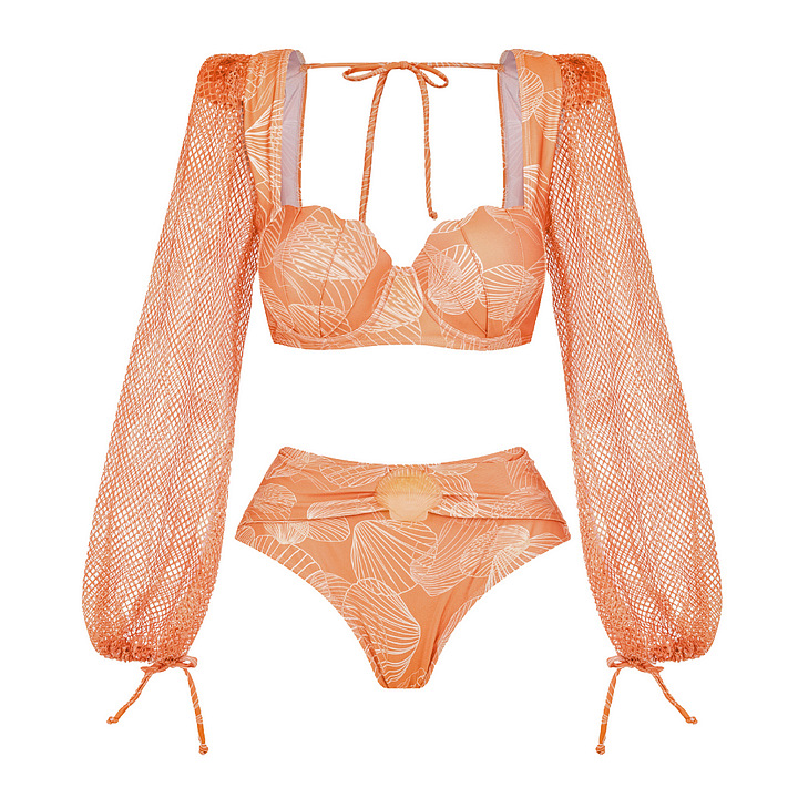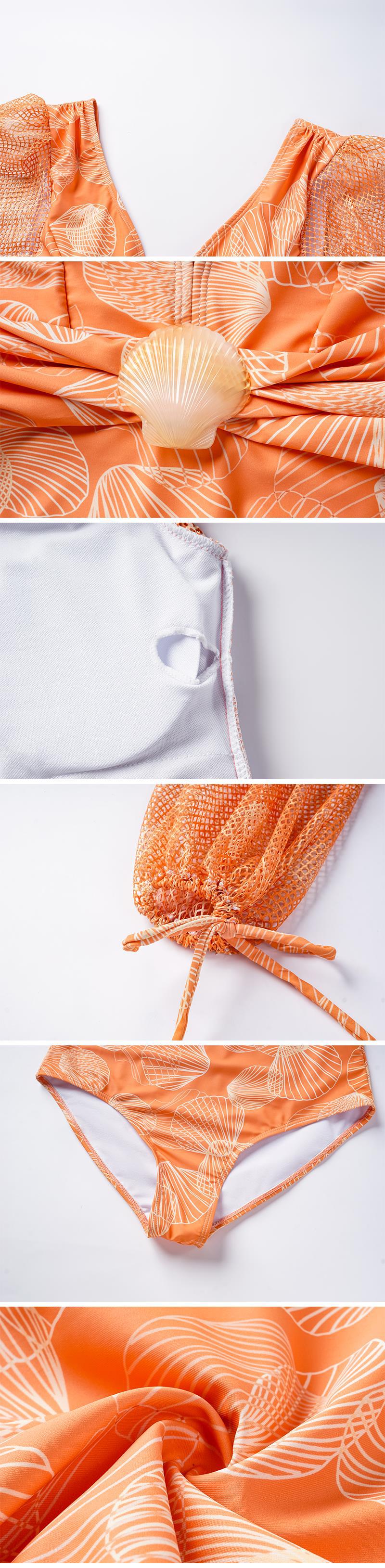 재고 유럽과 미국의 새로운 아마존 AliExpress V 넥 쉘 장식 메쉬 긴 소매 수영복 여성 2628스토어 가기