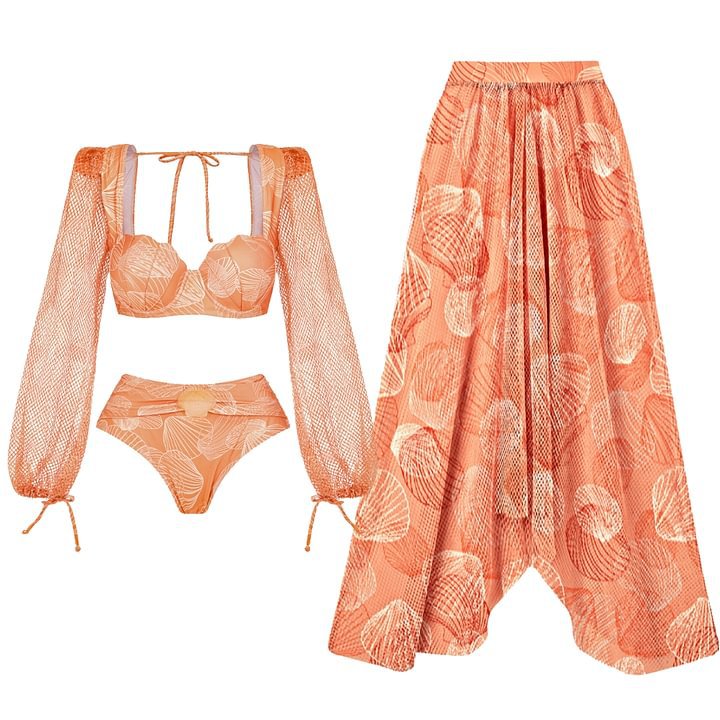 재고 유럽과 미국의 새로운 아마존 AliExpress V 넥 쉘 장식 메쉬 긴 소매 수영복 여성 2628