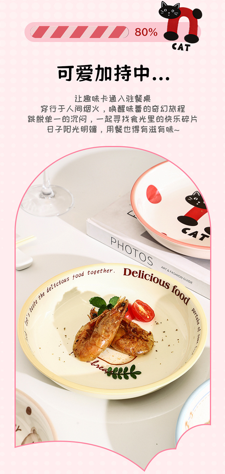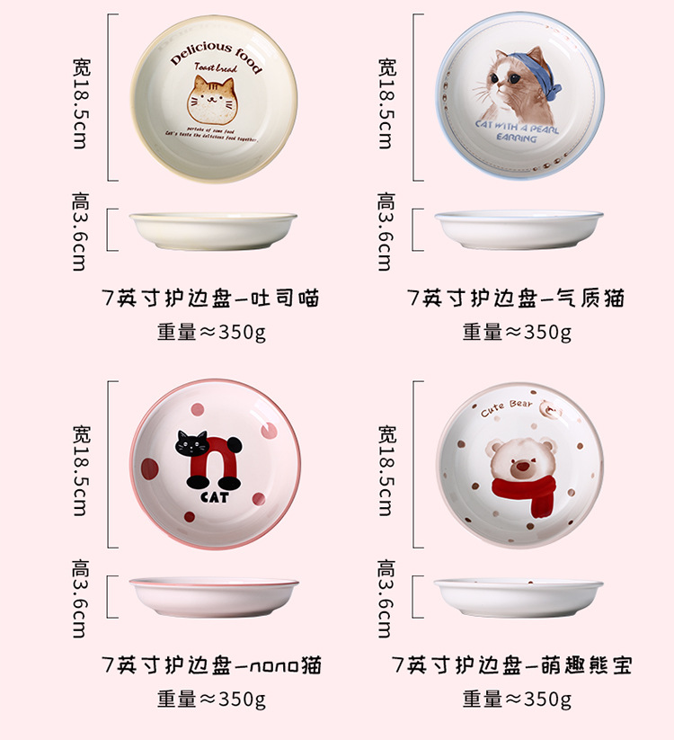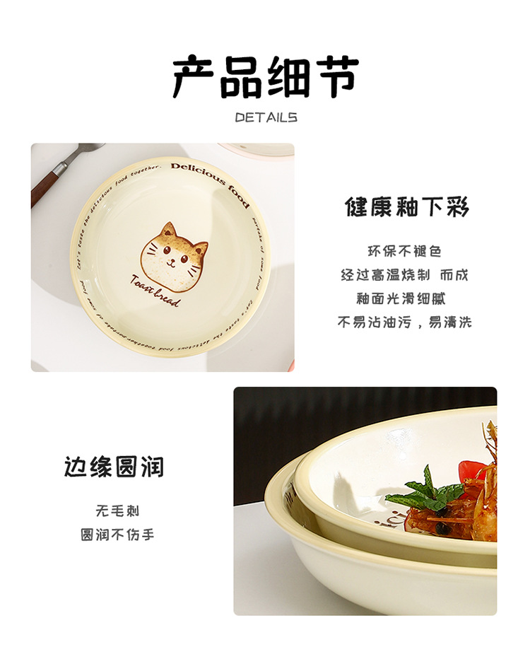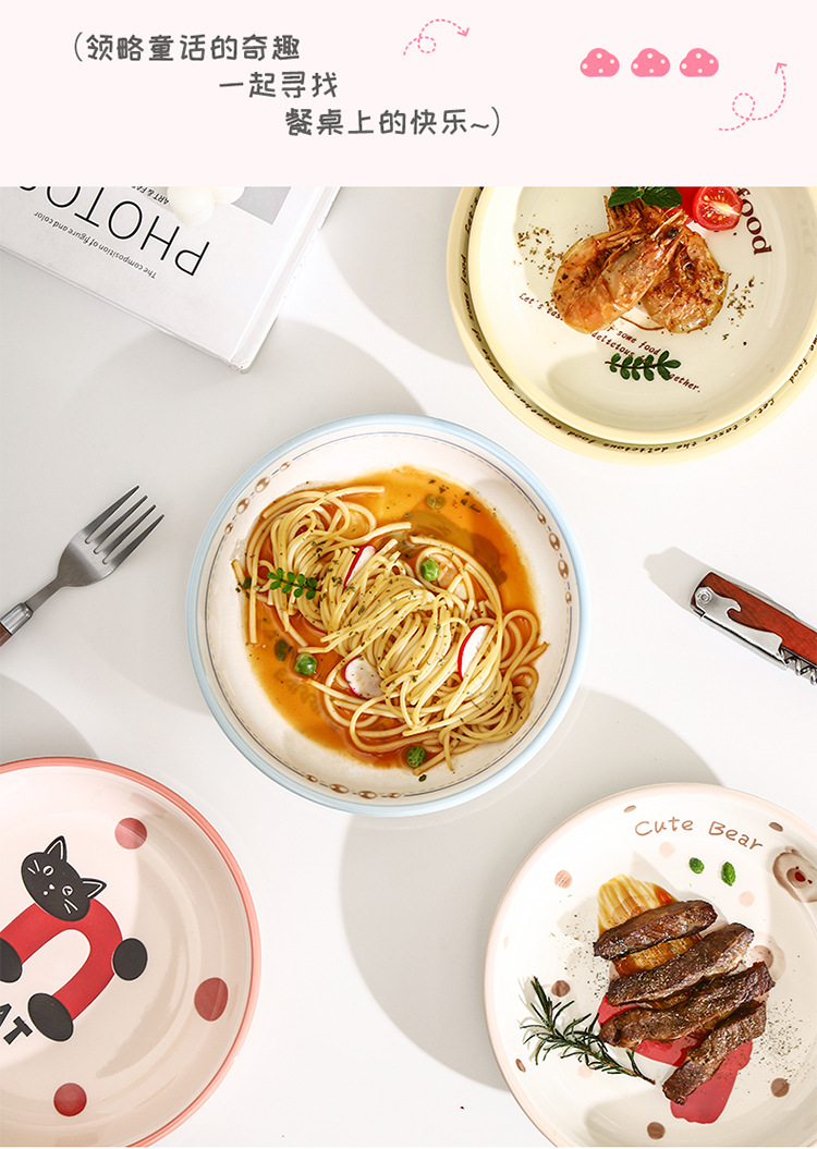 새로운 세라믹 식기 언더 유약 컬러 가정용 세라믹 플레이트 8 인치 디스크 접시 깊은 접시 창조적 인 만화 귀여운 재미스토어 가기